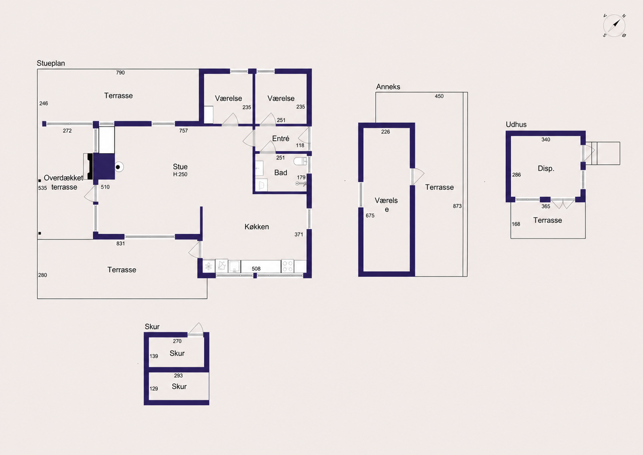 Desuden to soveværelser og badeværelse med brus og vaskefaciliteter samt udendørs bruser.