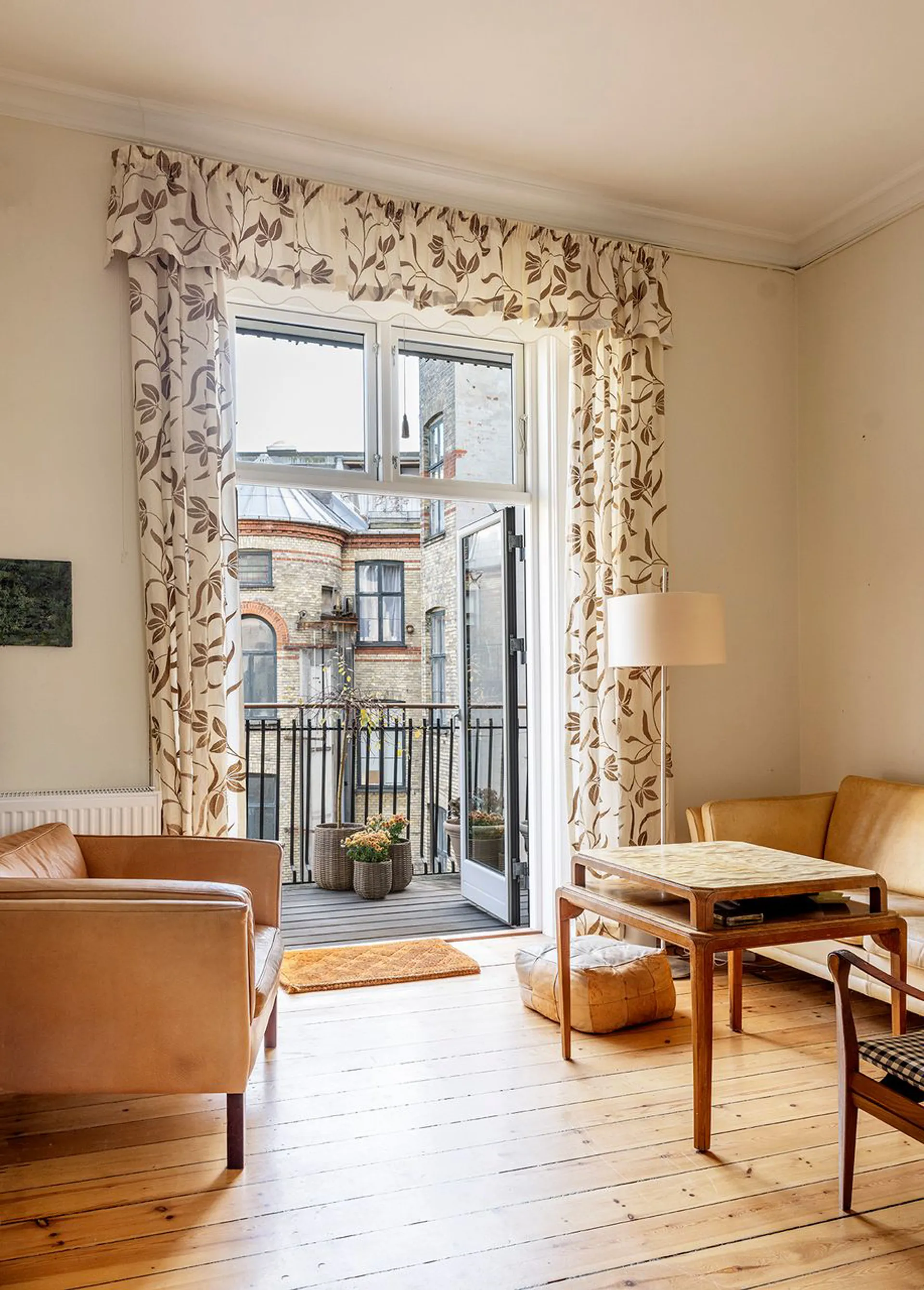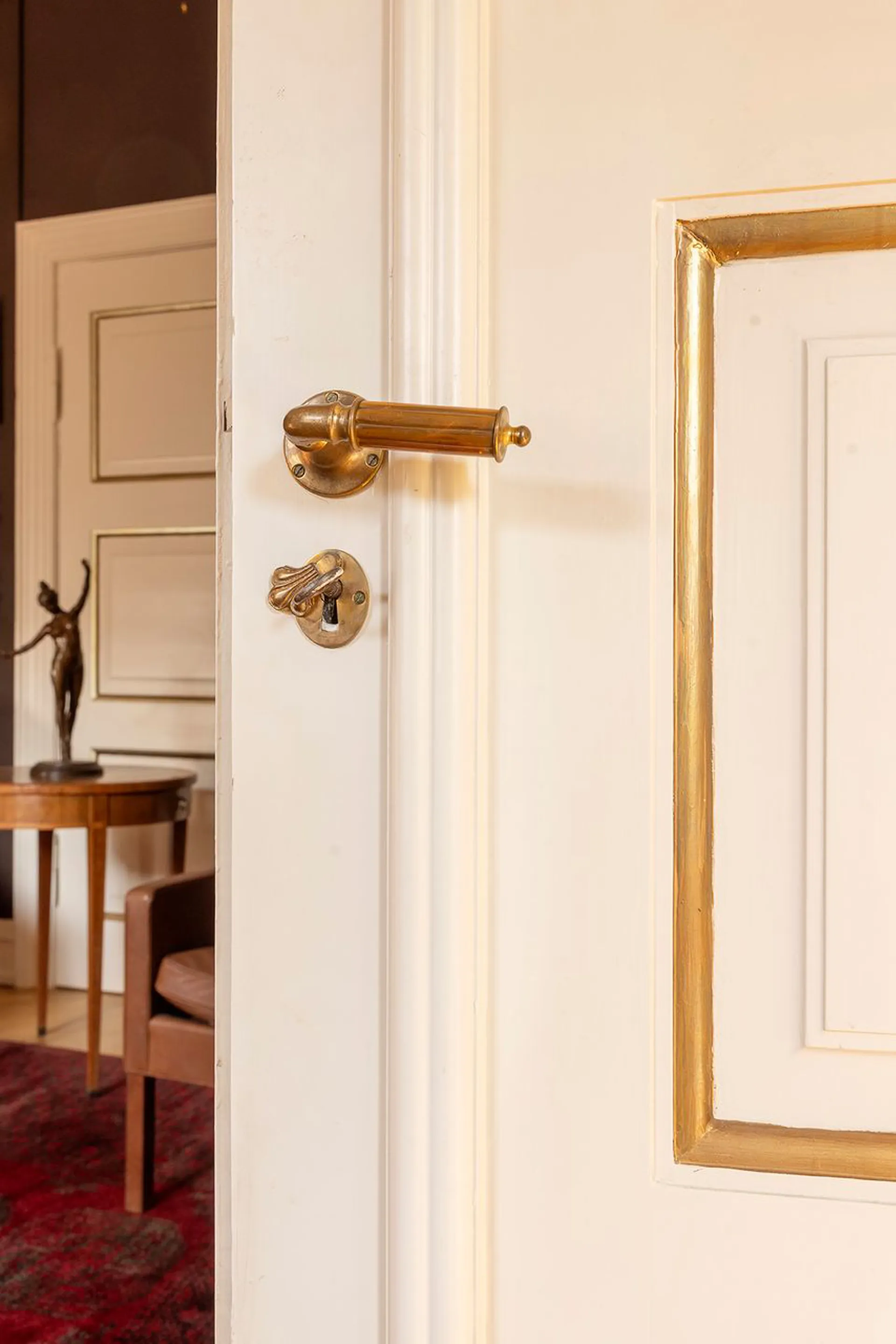 Lejligheden, der tidligere har været ejet af skuespillegenderne Poul Reumert og Anna Borg, bærer tydeligt præg af denne kunstneriske fortælling. Lejligheden er indrettet med adskillige tilpas højloftede stuer en suite, enorm spisestue og et væld af værelser – nogle til at sove i, nogle til at klæde sig på i og nogle til at arbejde i. Nogle kan også bruges som gæsteværelser, eller indrettes som selvstændig au pair afdeling. Hvis fem stuer er for meget, kan nogle af disse også bruges til, ja, hvad man måtte drømme om – for her er i sandhed plads nok.