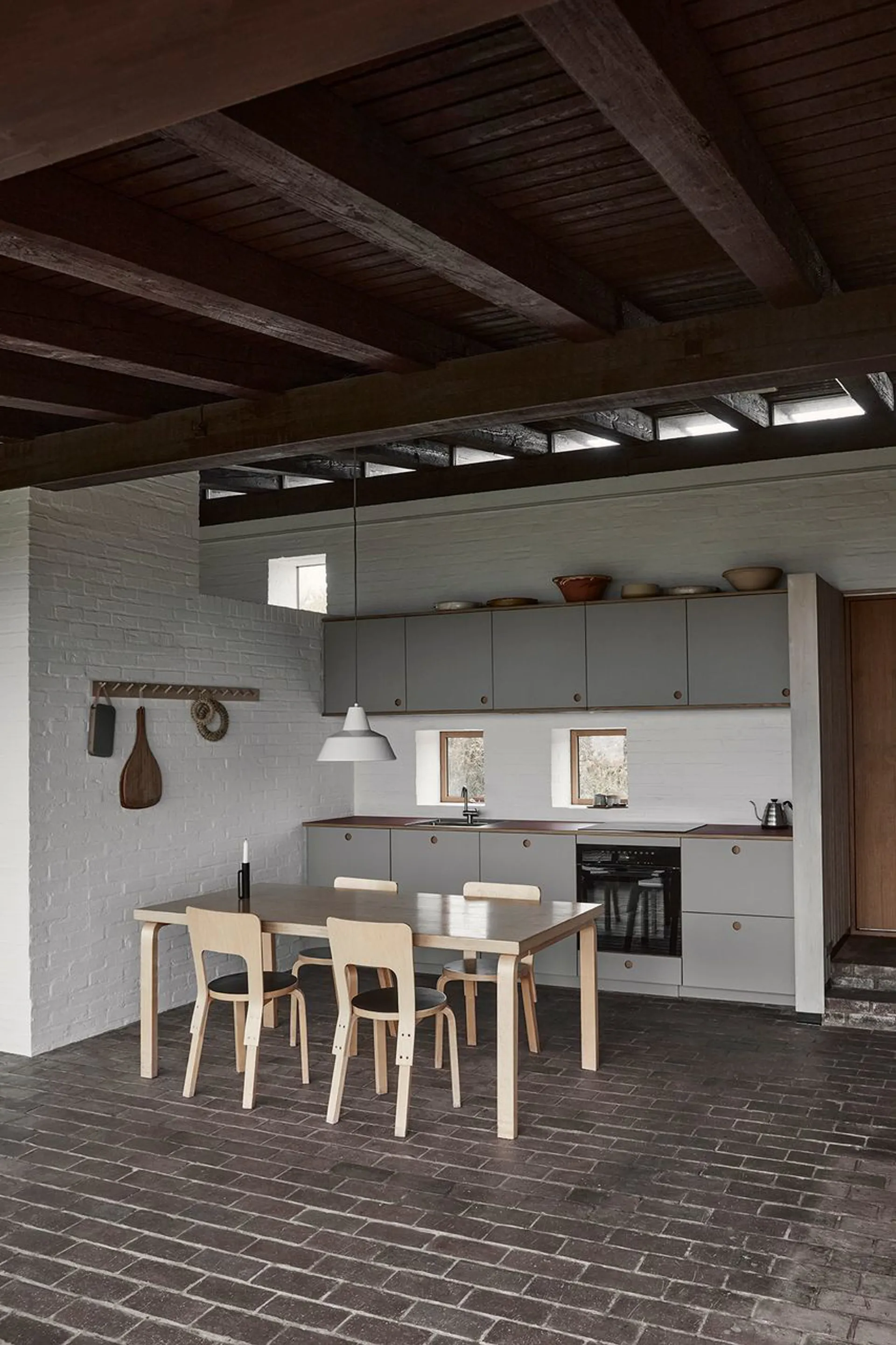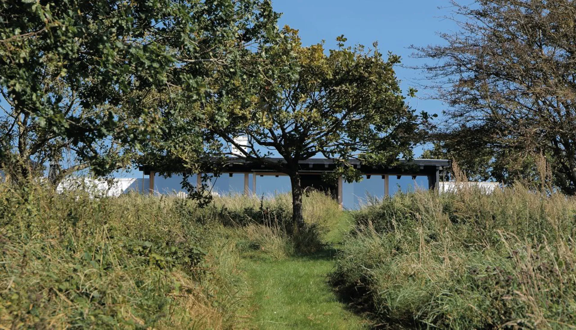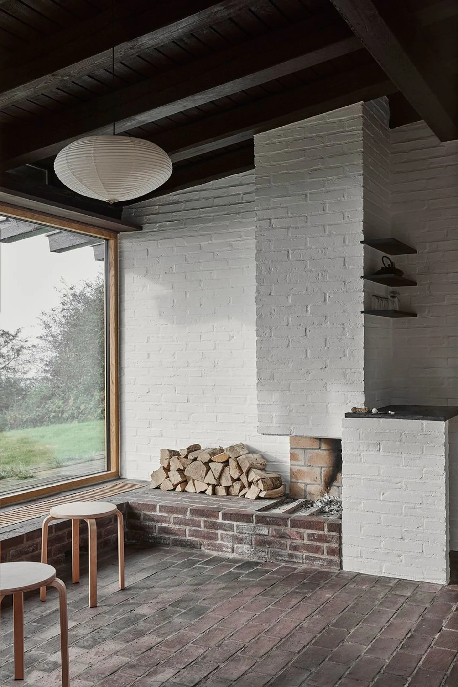 Ikke nok med at dette er et arkitekturhistorisk ikon i vores kulturarv, så er dette også et perfektioneret bygningsværk, der uden sin mage placerer sig på den absolut øverste hylde. Et fritidshus og et leverum – opført i 1975, med arkitektonisk inspiration fra 50’ernes minimale formsprog. En udsigtspost uden indsyn – og en 6.800 m² stor grund, der igennem tiden er blevet kultiveret til et naturrigt landskab med velplaceret terrasseområder, haverum og varieret beplantning. (Der er anlagt nyt terrasseområde siden fotografen var forbi). Et bygget kunstværk, der med sin elegante geometriske forståelse placerer hovedhus og en mindre sideliggende bygning i en nærmest vægtløs tilstand på toppen af det kuperet landskab, der fra afstand ligner opstigningen til Mols Bjerges National Park. Kompetent leges der med afstanden mellem de hvide vægges minimalistiske placering ved og omkring bygningsmassens sorte kubistiske former. Et elegant greb, der tvinger os som iagttagere til at forholde os til mødet mellem det abstrakte og konkrete og en visuel effekt, der håndfast griber om den omkringliggende natur. Uden at blive sær og uden at miste sig selv som bygningsværk. Respektfuldt og uhyre velplaceret.