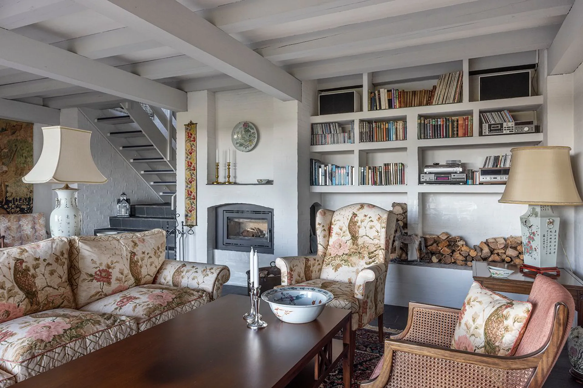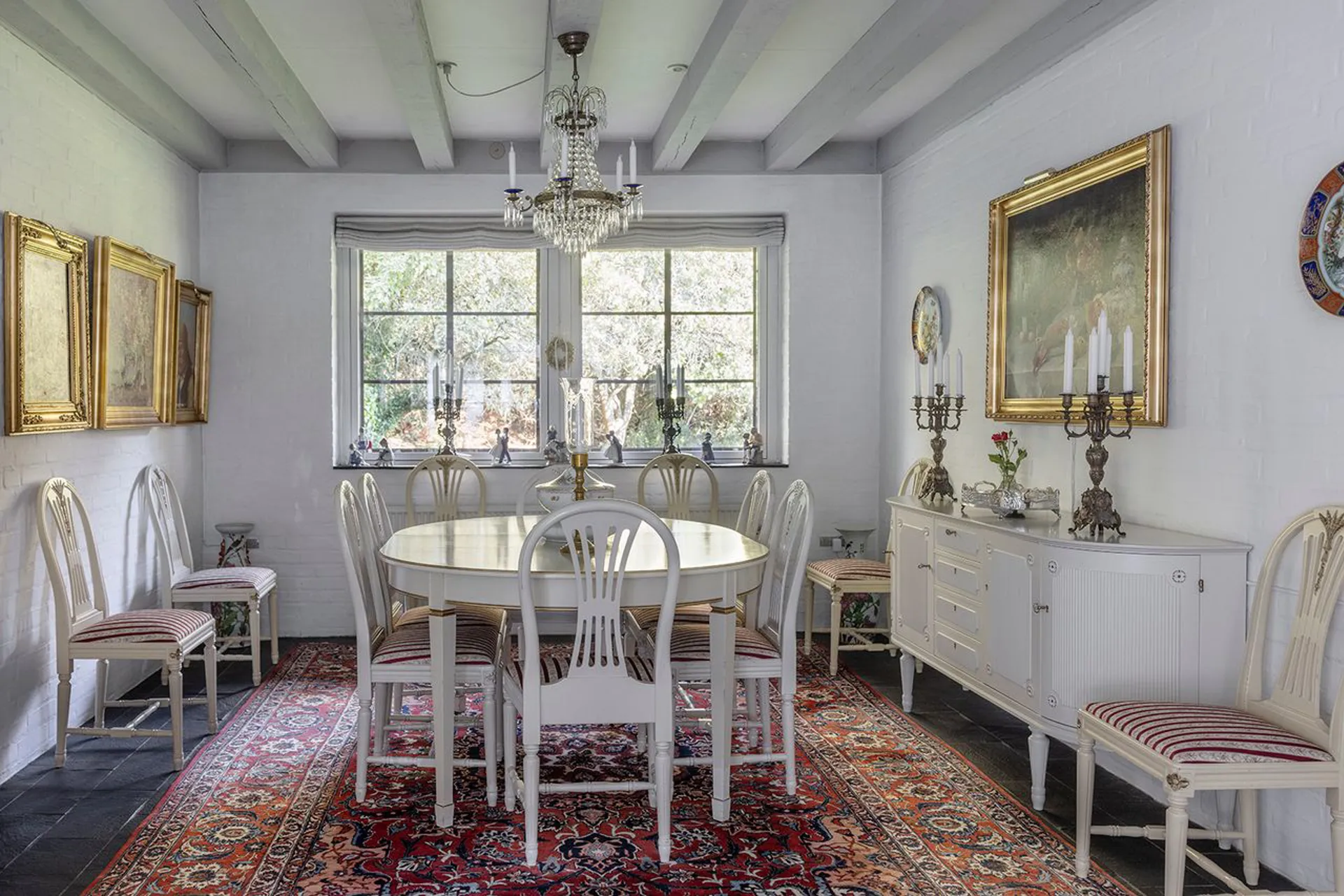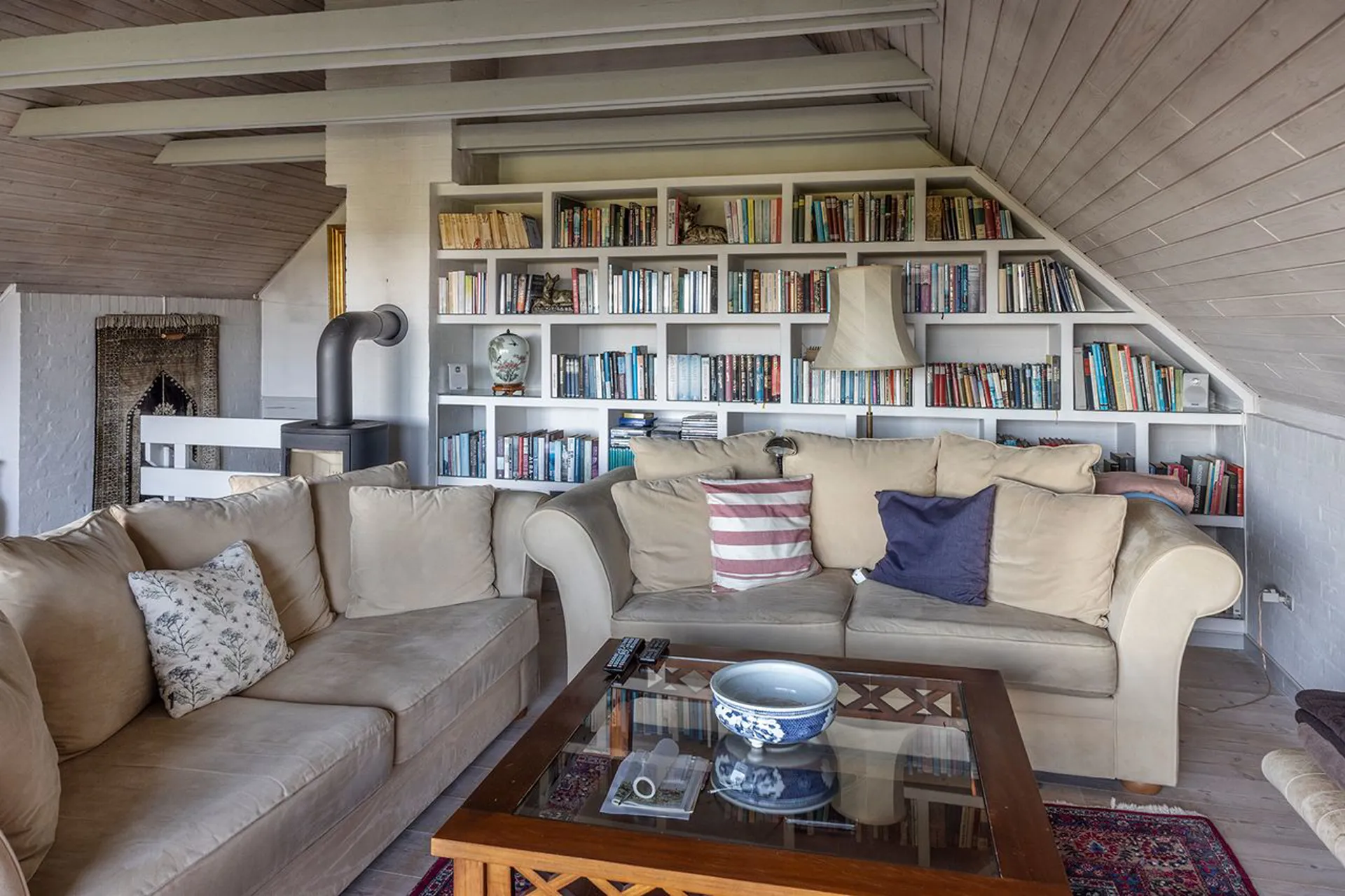 Indendørs venter flere stuer med panoramisk kig til naturens ro og rytme – her er det kun øjet, der sætter grænsen for udsigten. Køkken og spisestue ligger i dirkete forbindelse og indbyder til hverdagsliv og nærvær. Badeværelset står originalt, men med en æstetik, der igen er blevet tidens trend – som var det skabt i går.