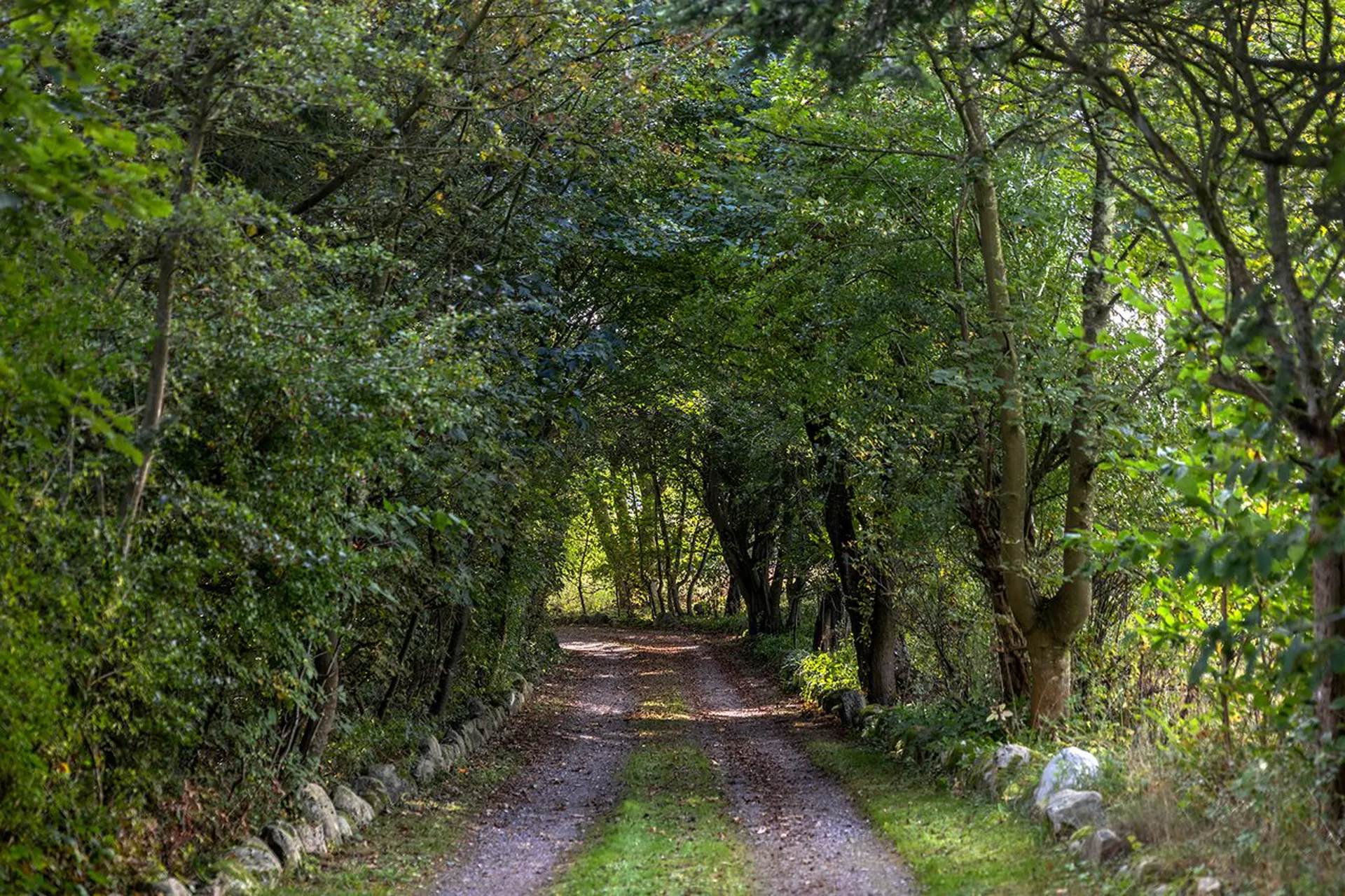 Haven omfavner huset med ynde og respekt for det omgivende landskab. Store, gamle træer leder dig ad den snoede indkørsel, som munder ud i en smuk gårdsplads. Bagtil gemmer haven på sin egen lille frugtlund i kuperet terræn – en naturlig oase med stille poesi. Terrasserne er placeret med omtanke, så solen kan følges fra morgen til aften.