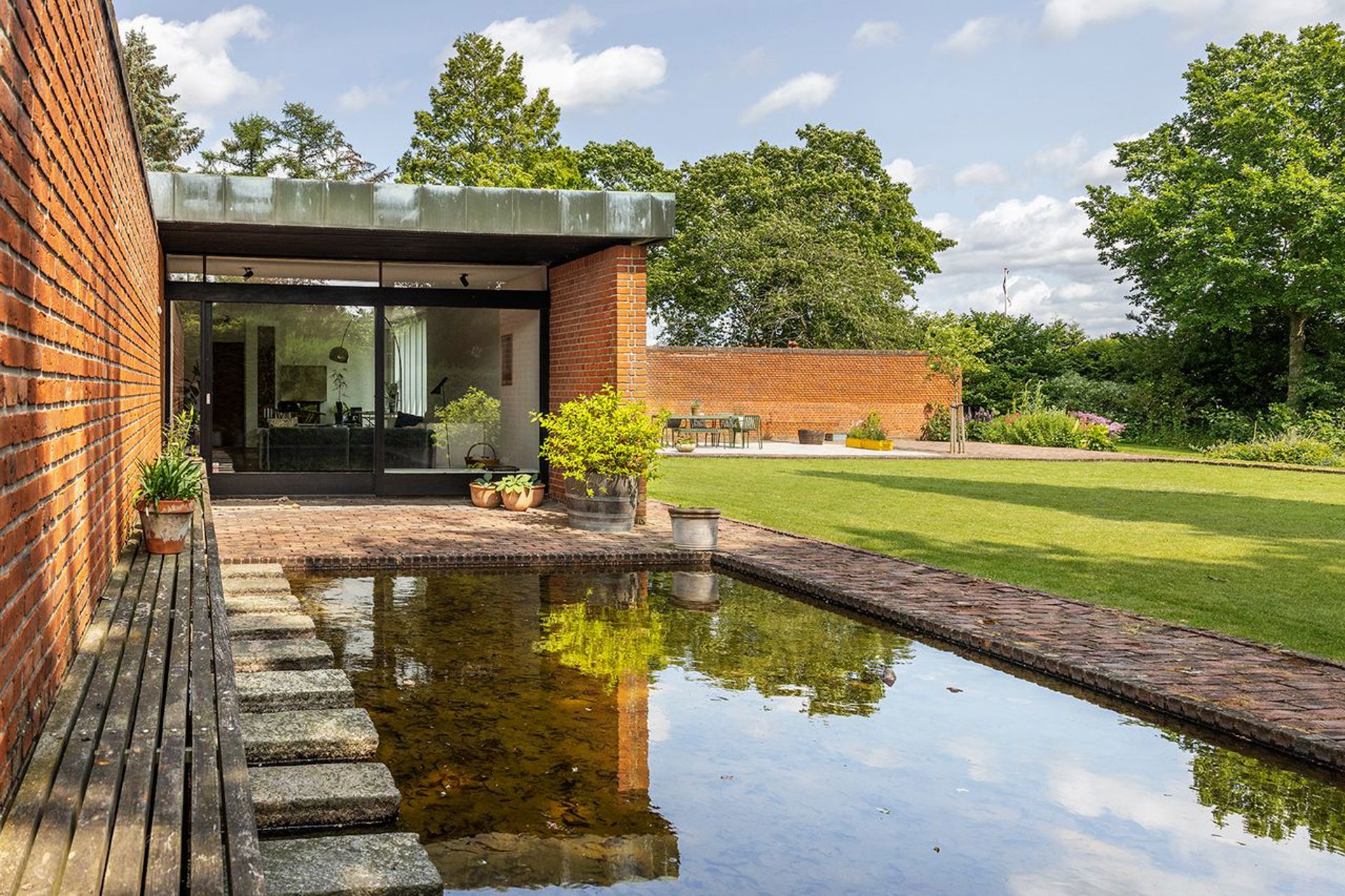 I den fjerneste ende er der anlagt en smuk, naturlig sø, der bidrager til en følelse af ro. Bag den store mur åbner muligheden sig for en mere fri have med plads til boldspil, leg og endda et charmerende hønsehus.