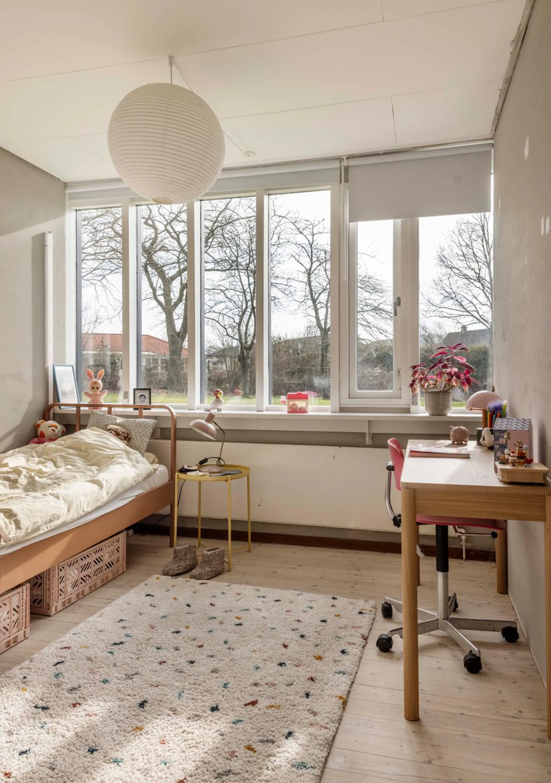 Fra den imponerende værelsesgang, hvor de originale indbyggede skabe fortsat står smukt integreret i arkitekturen, finder man fire rummelige værelser, hvor master bedroom ligger diskret placeret for enden og giver en følelse af privatliv og ro.