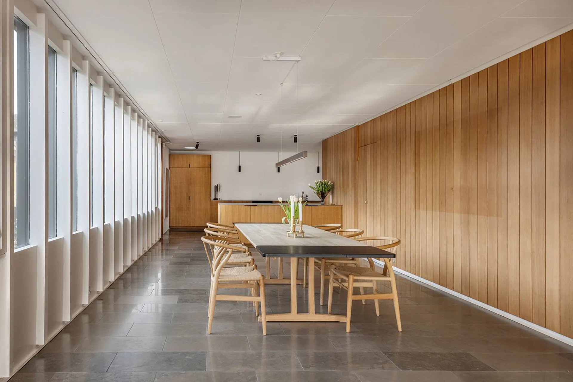 Når man træder indenfor, fornemmer man straks, at dette er et hjem med historie og karakter. Arkitekturen er præget af lange, rene linjer, store vinduespartier og materialer af høj kvalitet. Planløsningen er velovervejet og tilbyder både åbenhed og privatliv, hvor især det store køkken-alrum og samtalestuen danner rammen om hjemmets naturlige samlingspunkt. Her smelter den oprindelige stil sammen med moderne levestandarder, og der er blevet foretaget løbende opdateringer, der har bevaret husets arkitektoniske arv samtidig med, at det i dag fremstår tidssvarende og funktionelt.