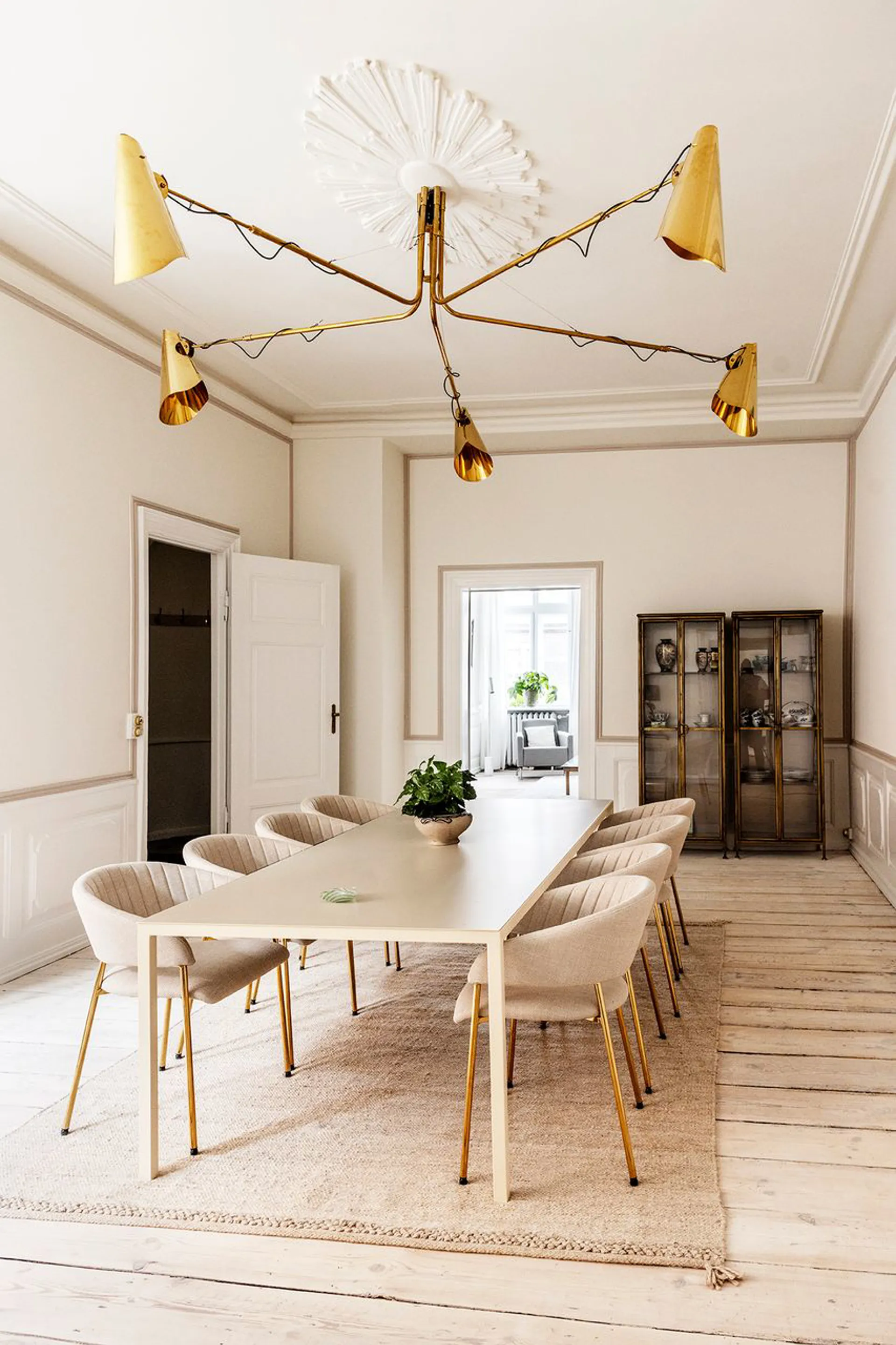 Velkommen til Strandgade 34, st. – en hævet stueetage på hele 224 m² (BBR) midt på Christianshavn. Her folder detaljerigdommen sig ud i et omfang, der sjældent ses smukkere: udsmykningerne, linjerne, proportionerne – alt sammen bevaret med en nænsomhed, der gør boligen til noget helt særligt.