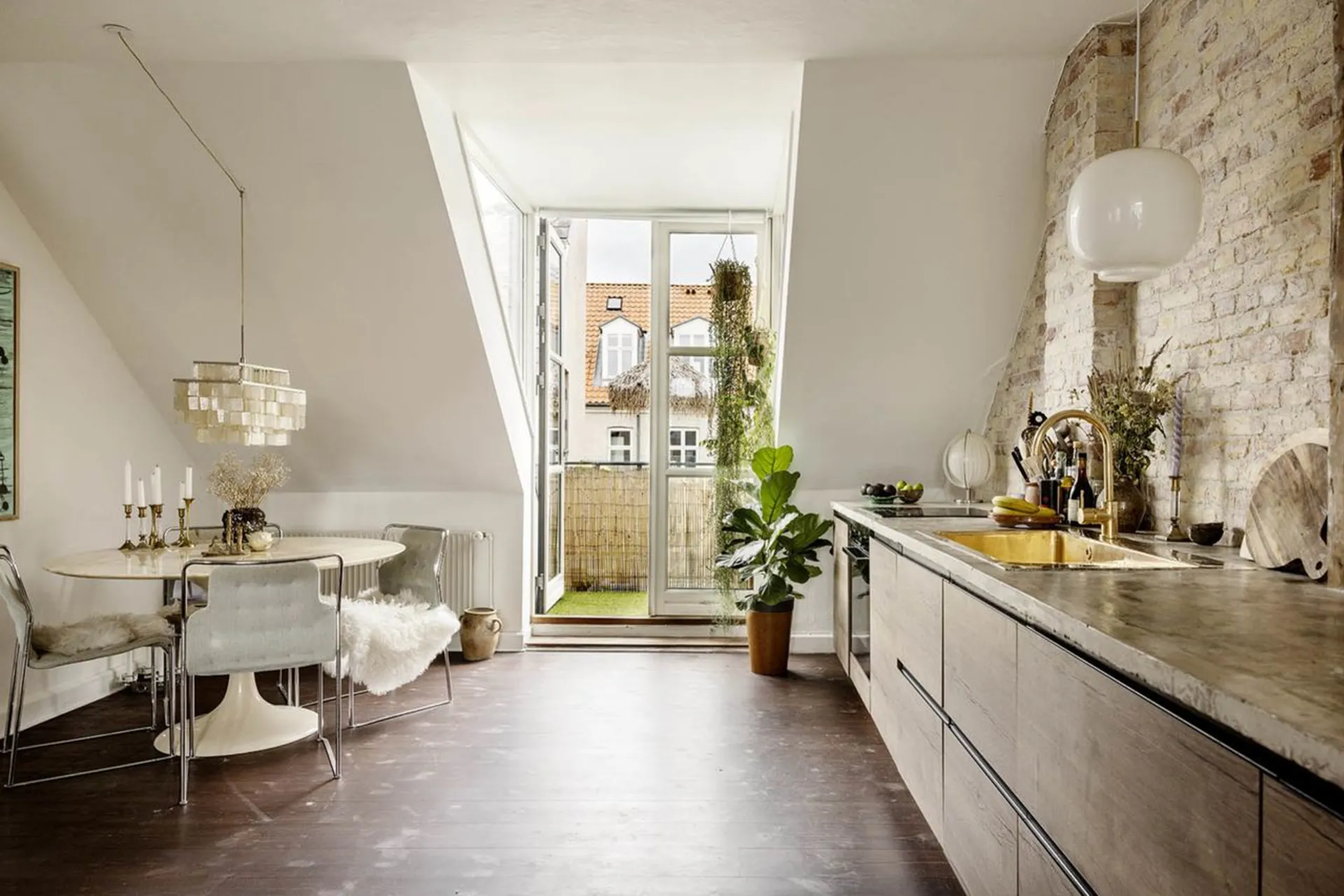På grænsefeltet mellem Frederiksberg C og Vesterbro, hævet over byen og med et fantastisk lysindfald, opleves hér en lejlighed ud over det sædvanlige. Der er blevet kræset om detaljerne og med fokus på åbenhed, er et unikt leverum skabt. Lejligheden giver plads til familien, gæster og fester og er placeret på en brostensbelagt sidegade til Vesterbrogade, i et helt særegent kvarter, med Enghave Plads og Kødbyen i den ene retning og Værnedamsvej og søerne i den anden retning. Alt er tæt på, men alligevel er lejligheden beriget med privathed og ro.