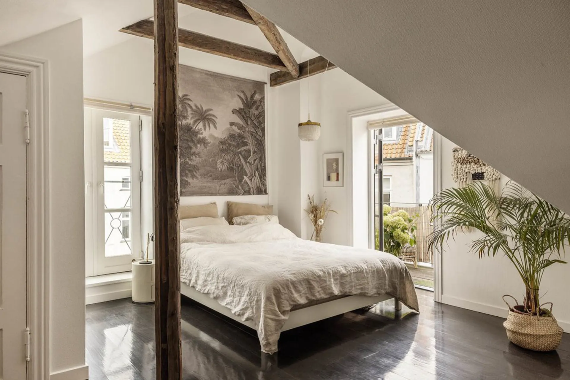 En stemningsfuld lejlighed som henvender sig til familien eller det pladskrævende par, som ønsker at bo stille, midt i byens puls.