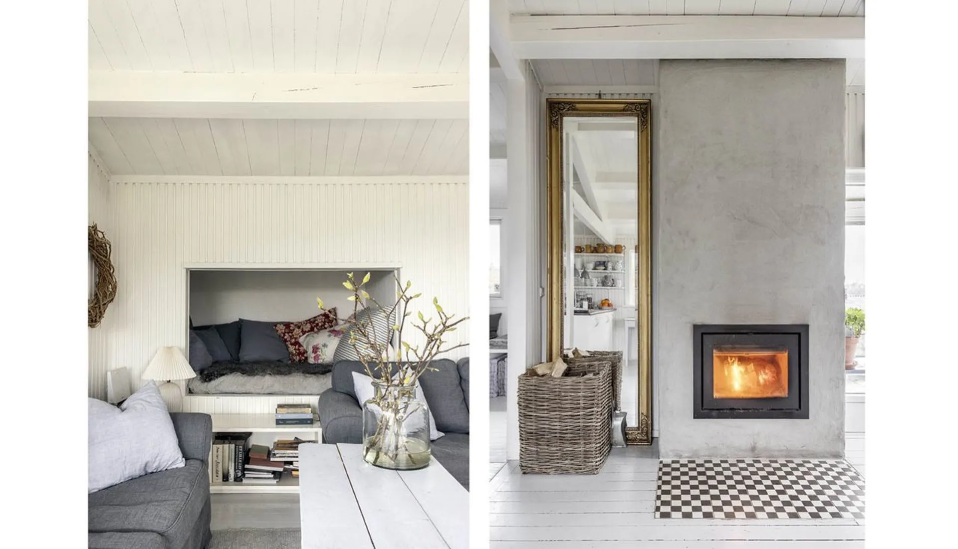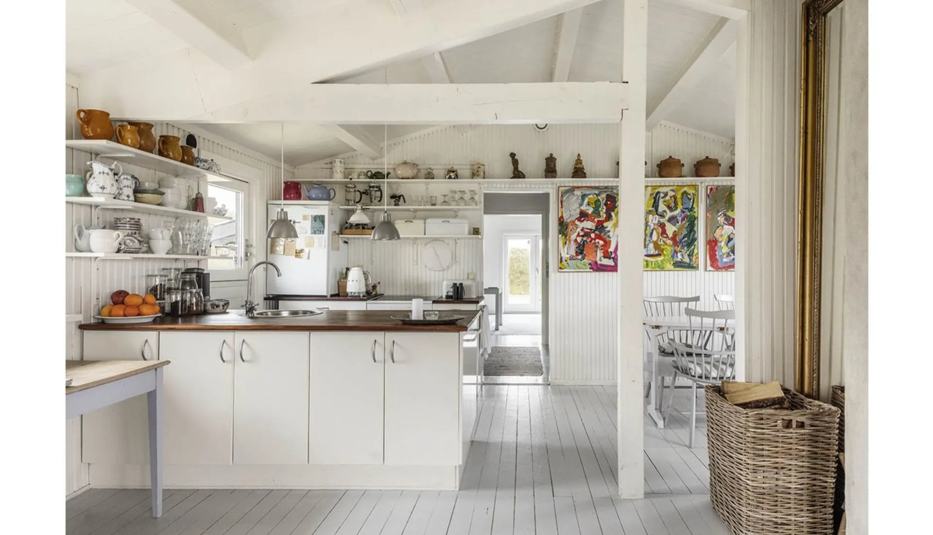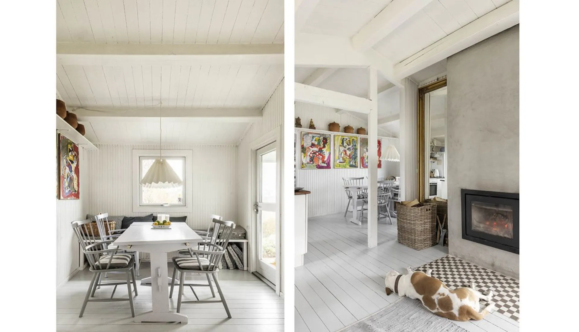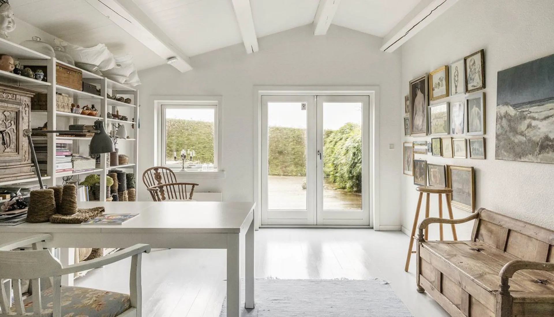 Indretning: entré til mindre mellemgang, hvorfra der er adgang til soveværelse og stueområde med udgang til stort sydvendt terrasseområde, der ligger som genbo til kupperede marker og himmelkig. Passage med adgang til badeværelse med brus og mindre soveværelse, videre til husets store alrum med funktionelt indrettet køkken, hvorfra der udgang til østvendt terrasseområde og stort stueområde med pejs, alkove og den skønneste udsigt ud over områdets bugtede landskab. På siden af alrummet er der orangeri/opholdsrum for mennesker og planter og i forlængelse af den østvendte terrasse er der isoleret skur, ideelt som viktualierum, og naturligvis fint til alverdens opbevaring.