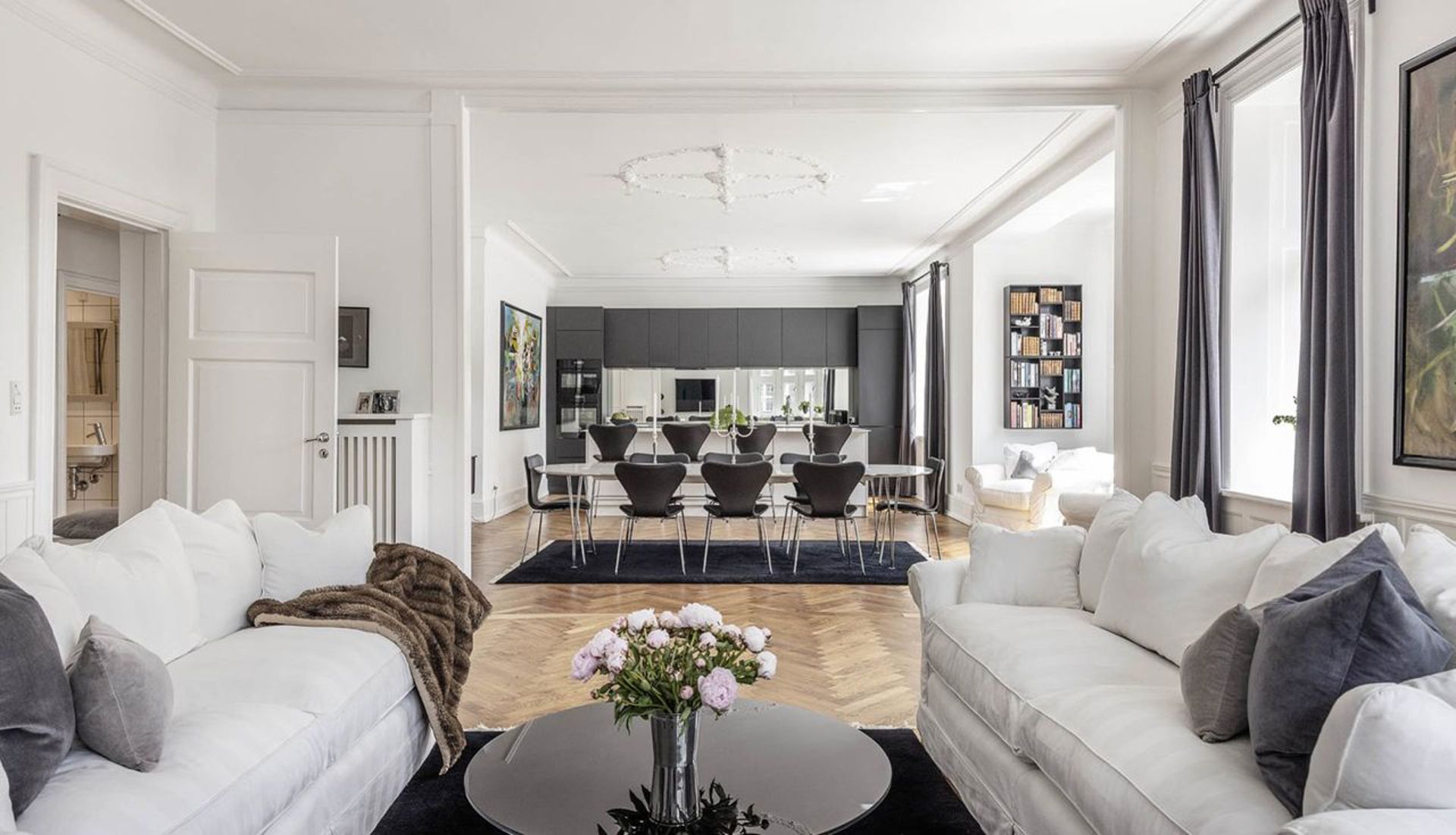 Herskabelig hjørnelejlighed på 224m2 (BBR) af højeste kvalitet tæt ved Christianshavns Volde. På Danmarks længste handelsvej, tæt hvor Torvegade møder Amagerbrogade, er lejligheden beliggende i en ejendom som er opført i 1918 og repræsenterer på fineste vis hvordan nyklassicismen i sit udtryk er så enkelt og harmonisk. Et arkitektonisk formsprog som tydeligt går igen i lejligheden. Den nuværende ejer har gennemgribende og smagfuldt renoveret lejligheden med øje for kvalitet og funktionalitet. Arbejdet er udført ud fra ønsket om at skabe åbenhed og samvær, hvilket især kommer til udtryk i det altoverskyggende køkken alrum som i sig selv måler 76m2. Til lejligheden er der mulighed for at etablere altan, som vil bidrage med endnu mere luft og plads. Indretning: Entré som via rummelig fordelingsgang har adgang til lejlighedens ekstra badeværelse, stor soveværelse/stue og sublimt køkken alrum. Herfra bryggers med opbevaringsplads og vaskemaskine. Walk-in som nemt kan omdannes til et stort soveværelse eller to mindre. Herudover masterbedroom og smagfuldt indrettet badeværelse med badekar. Lejligheden henvender sig til det pladskrævende par eller familien som ønsker at bo i grænsefeltet mellem Christianshavn og Amager.