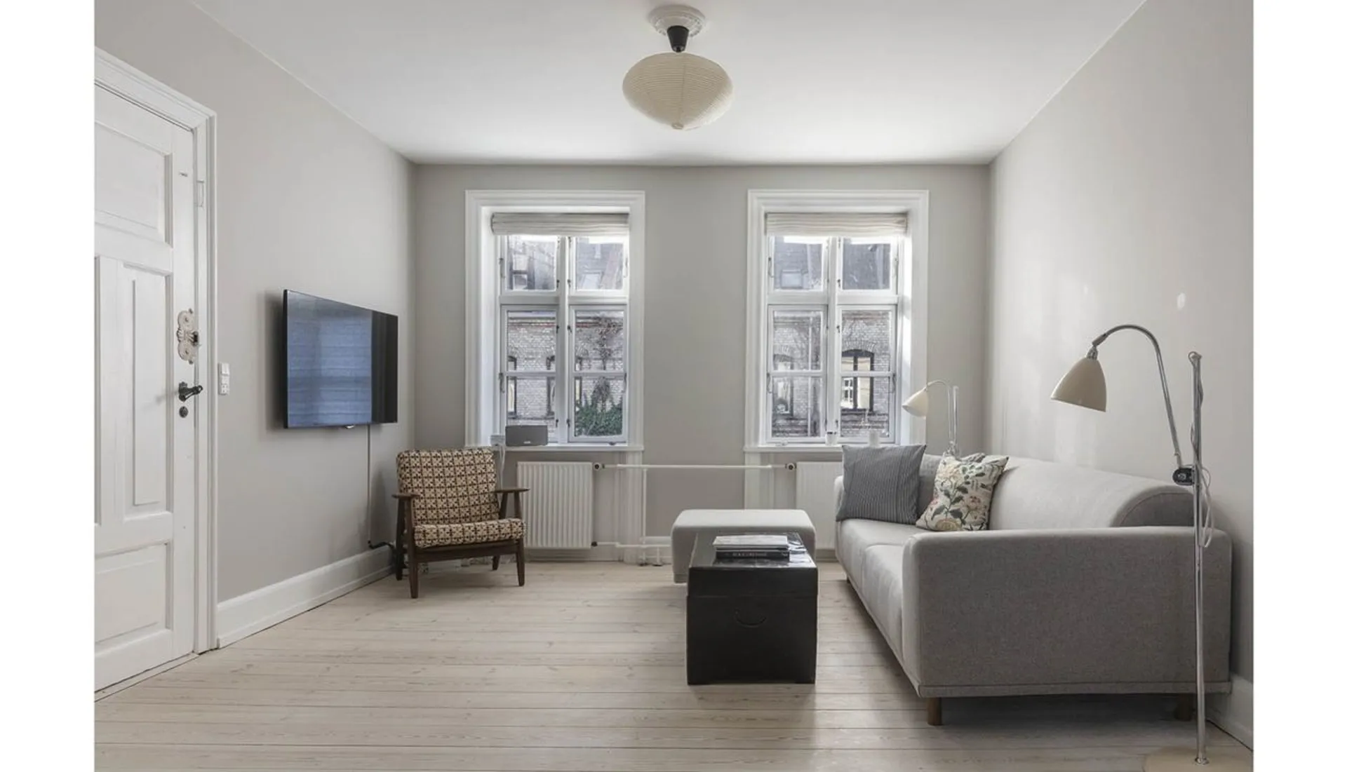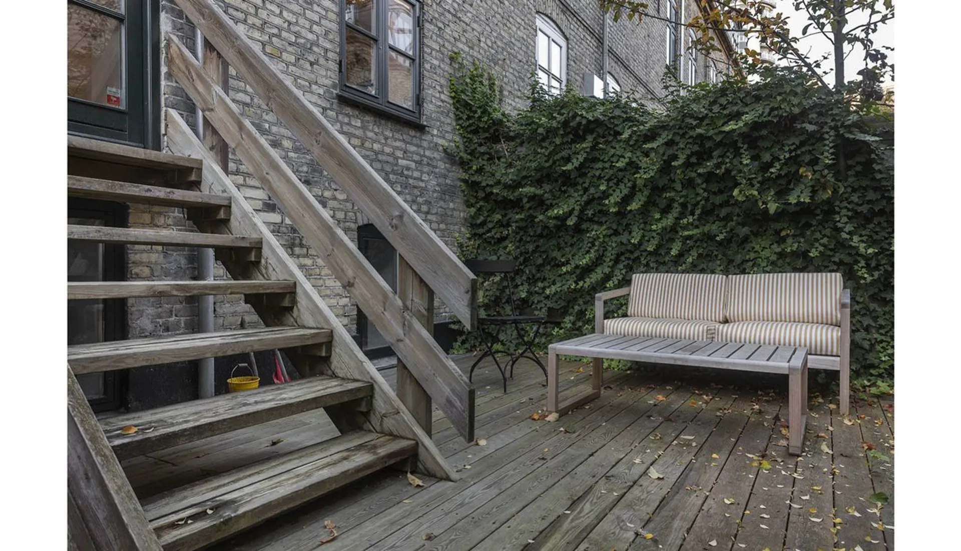 Indretning: Entré til stort åbent alrum med spiseafdeling og snedkerbygget køkken tegnet af Ditlev Rahbek fra Stilleben Architects. Fra køkkenet er der direkte udgang til hyggeligt anlagt terrasseområde/gårdhave mod gaden, som er orienteret mod eftermiddags- og aftensolen og yderligere adgang til bagterrasse, som har formiddagssol. 1. salen er indrettet med gennemgående stue, hvor der er et skønt lysindfald fra øst og sydvest med sideliggende hyggeligt soveværelse/kontor. 2. salen er med to skønne soveværelser og smagfuldt indrettet badeværelse med kar og brus, hvor det fine badeværelsesmøbel ligeledes er snedkerbygget og tegnet af Ditlev Rahbek fra Stilleben Architects. 3. salen er et åbent alrum, som bidrager med en skøn ekstraplads til huset. Underetagen på 48 m2 (BBR) fremstår indbydende og tilbyder to disponible rum og et ekstra badeværelse med brus. Denne ejendom henvender sig til det pladskrævende par eller mindre familie, som ønsker at bo suverænt i hyggelige, familievenlige omgivelser midt i det traditionsrige Carlsberg-kvarter – tæt på hverdagens praktiske gøremål og midt i en af Københavns absolutte kulturhistoriske perler.