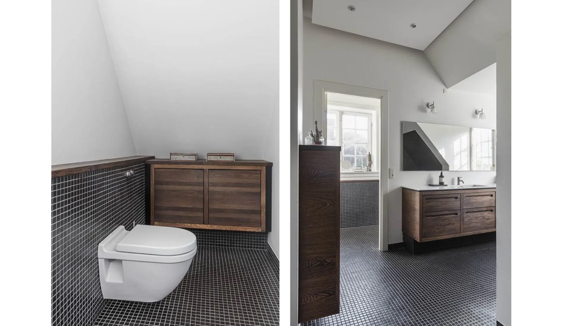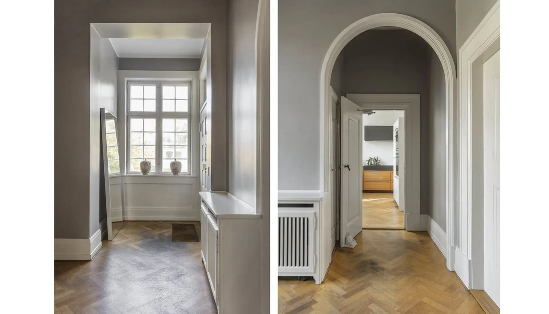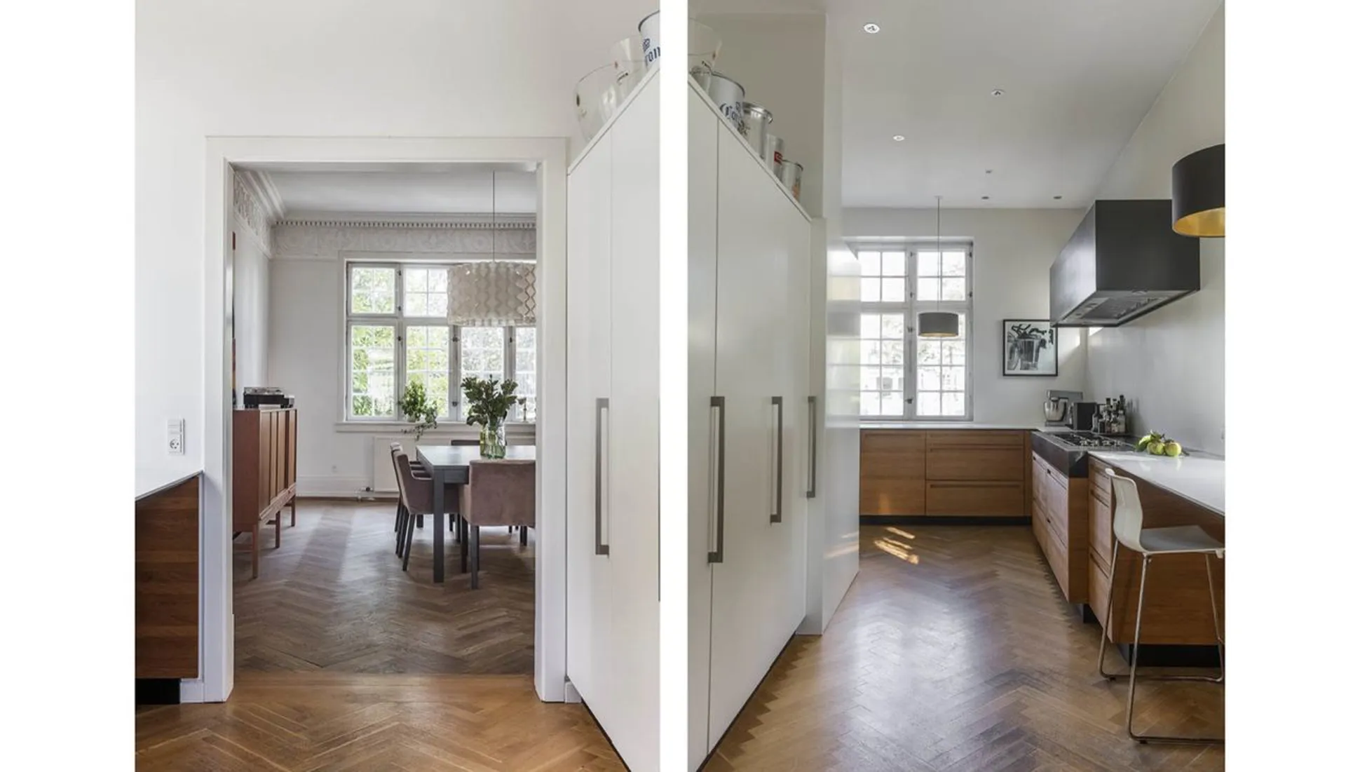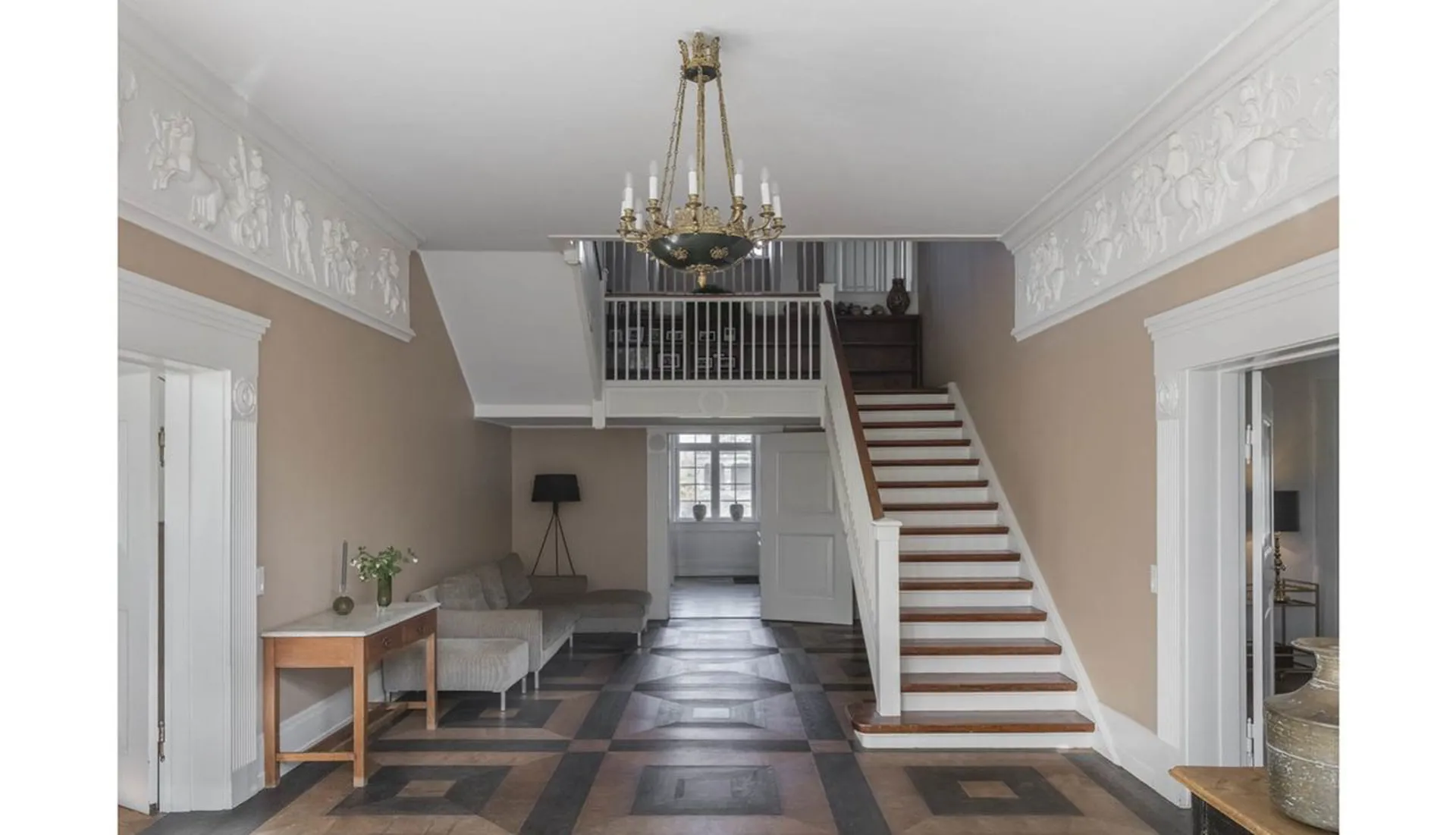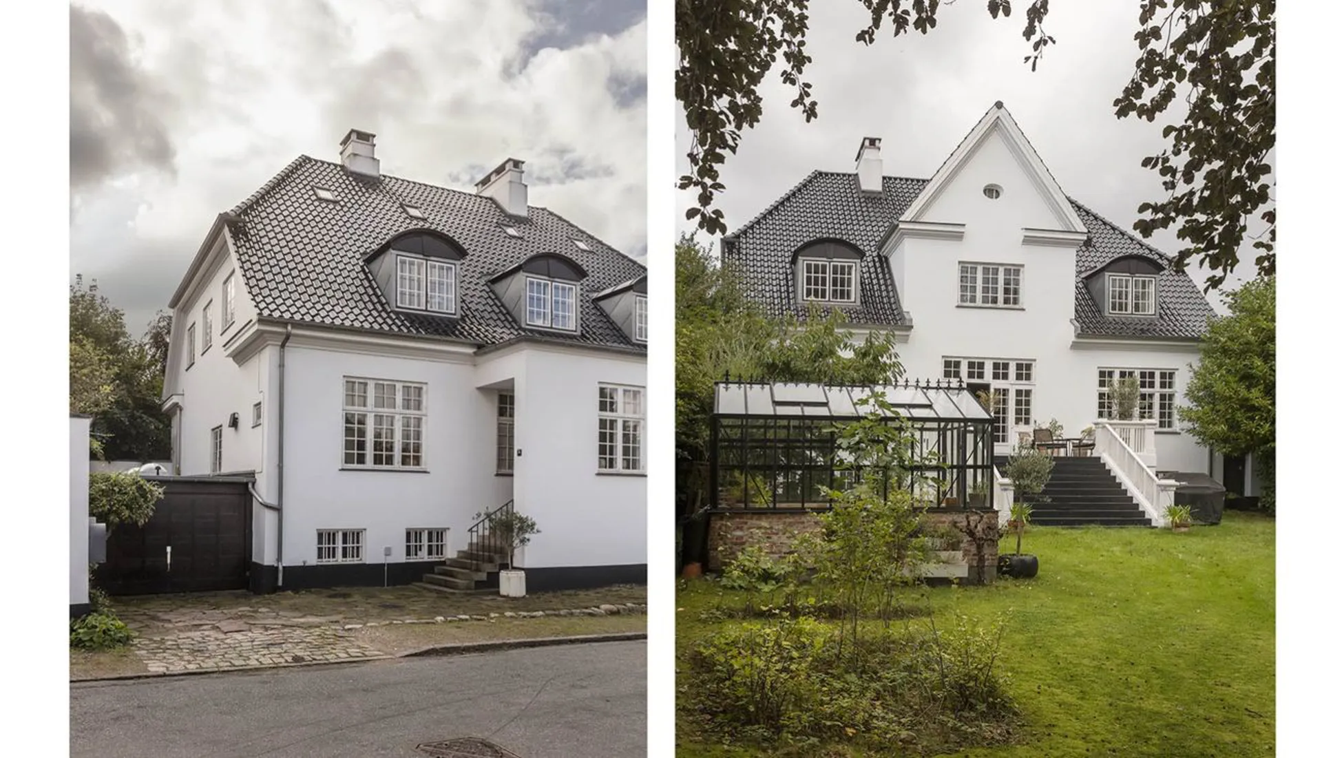 Indretning: Entré til en imponerende hall med Alexanderfrise, gæstetoilet og trappeløb med repos til 1. sal og det smukkeste trægulv, som forventeligt er originalt fra husets opførelse. Desuden udgang til stort solbeskinnet nyere opført terrasseområde, der i sin udførelse står som kopi af husets originale terrasse (der dog var noget mindre). To herskabelige stuer en suite til mellemgang, der fører til funktionelt og smagfuldt indrettet køkken, som ligger i åben forbindelse med stor spisestue. 1. salen er indrettet med fem gode værelser, hvor to er lagt sammen til forældreafdeling med eget luksuriøst badeværelse og walk-in. 2. salen er indrettet som ét stort åbent alrum med loft til kip og de skønneste lysindfald fra tagvinduerne. I sin helhed en suveræn fordeling af værelserne, som giver plads til både privathed og fællesskab for den store familie. Husets underetage er godt disponeret med værelser, vaskefaciliteter, vinkælder og alverdens muligheder for teenageafdeling, gæsteafdeling, motionsrum mv. Yderligere sideliggende garagebygning på 42 m2 med gode anvendelsesmuligheder. Dette er en villa i særklasse. En bolig, der ud over det sædvanlige giver rammerne for at indrette sig med massere af plads i historiske smukke omgivelser.