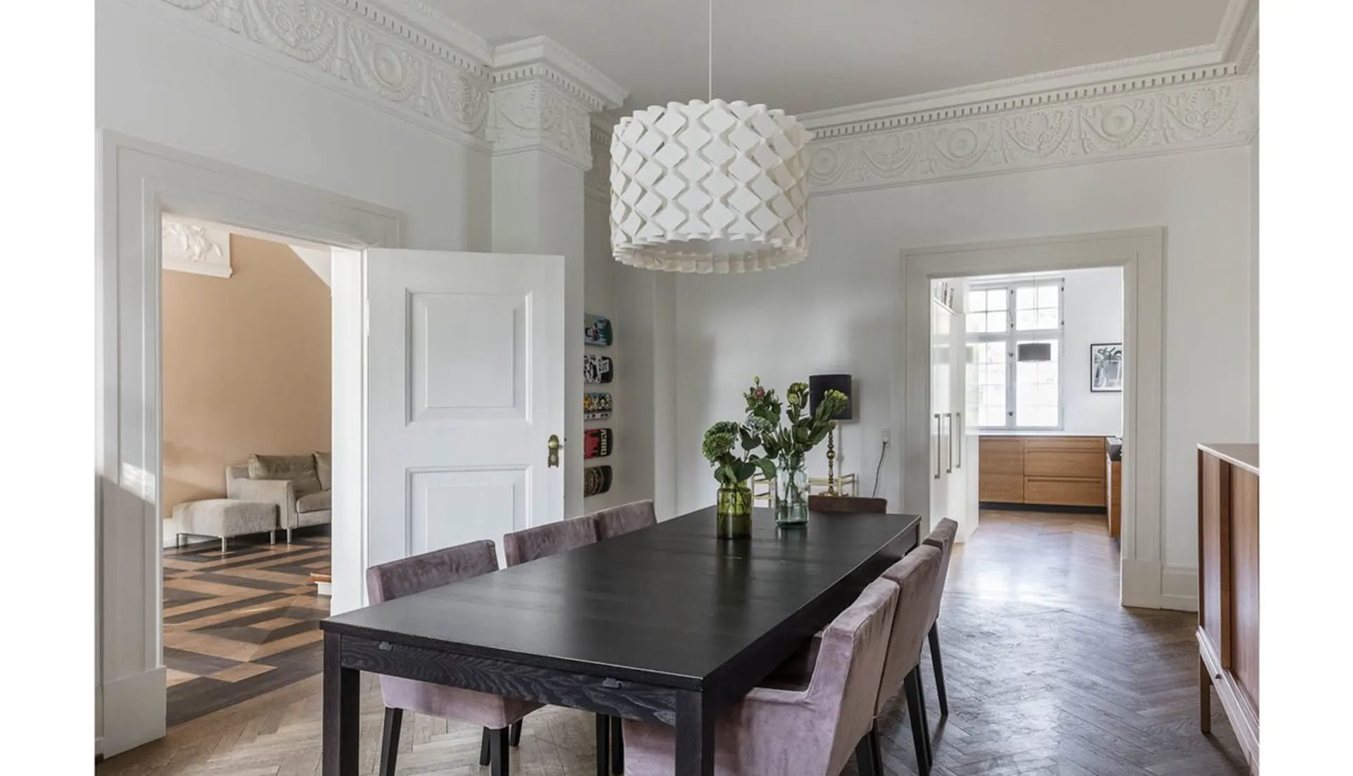 Ulrik Plesner-villaen. Enestående familievilla på mere end 600 etagemeter (BBR: 307 m2 beboelse, 26 m2 erhverv, 185 m2 underetage, ca. 70 m2 udnyttet tagetage og garagebygning på 42 m2) med bedste beliggenhed på 1.265 m2 grund i Carlsberg Kvarteret. Et arkitekturhistorisk mesterværk fra 1897 tegnet af arkitekt Ulrik Plesner og opført af Theodor Oppermann. Større bliver det vel næppe, og en mere imposant villa skal man lede længe efter. Ganske enkelt forrygende og i en klasse helt for sig selv. Oppermann boede selv i villaen i en årrække, og siden har ejendommens ejere listede en række kendte personligheder, der hver især har gjort sig på den danske erhvervs- og kunstscene. I 1900 lagde huset silhuet til en fulmaane-almanak, hvor det blev illustreret med navnet ”Solfang” – så det navn lader vi stå, som symbol på bygningens forening af romantik og mesterligt formsprog. Ethvert kig igennem huset og i den ene detalje efter den anden kaster ejendommen glans over de smukkeste detaljer. Mesterligt interiør, fyldningsdøre og paneler hele vejen rundt er i sig selv seværdigt – ja, selv pompøse udsnit af den berømte Alexanderfrise stråler i boligens imponerende hall. En kopi skabt på basis af Thorvaldsens frise om Alexander den Stores bedrifter (hele frisen findes i spisesalen på Carlsbergs Akademi).