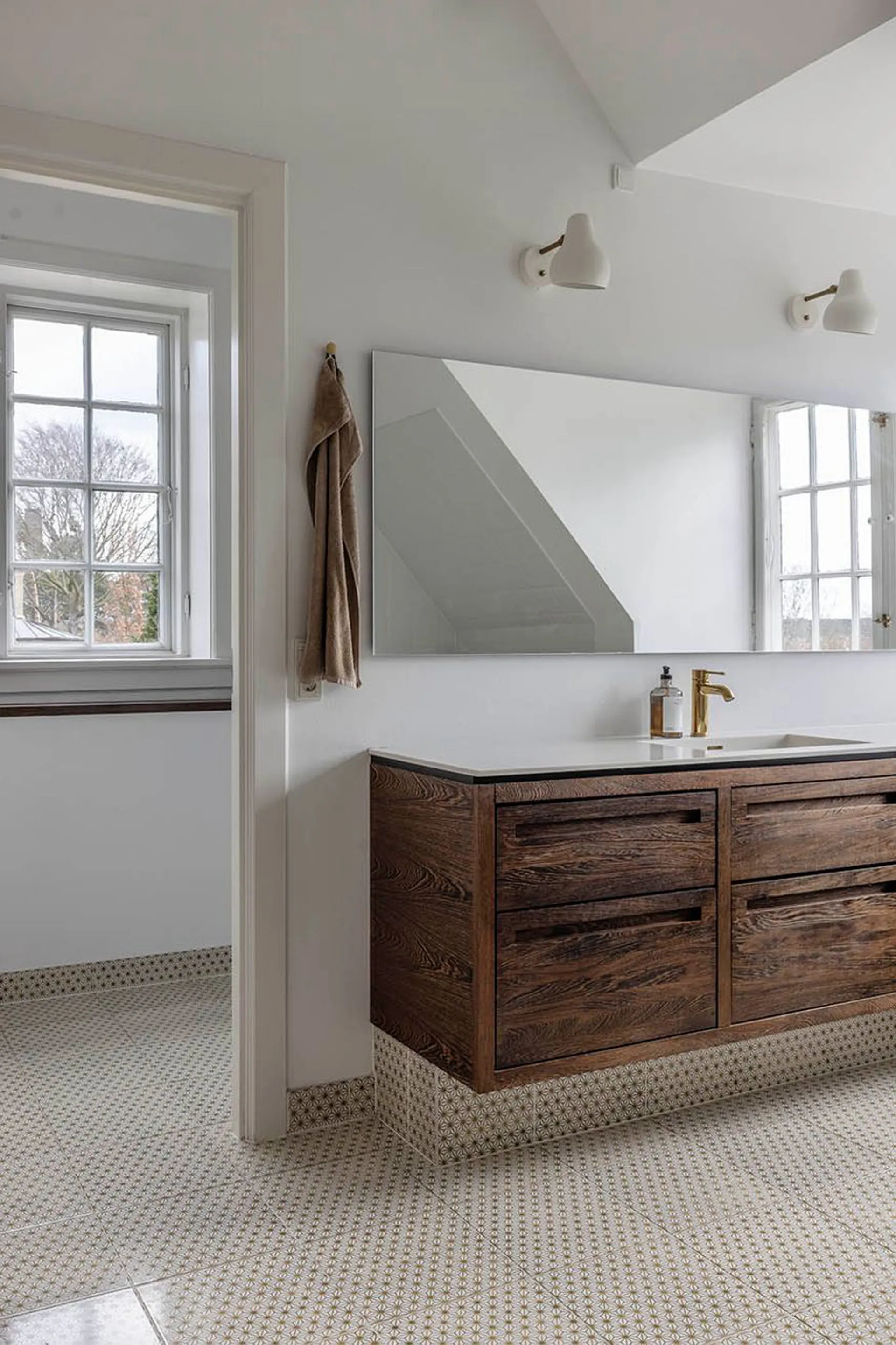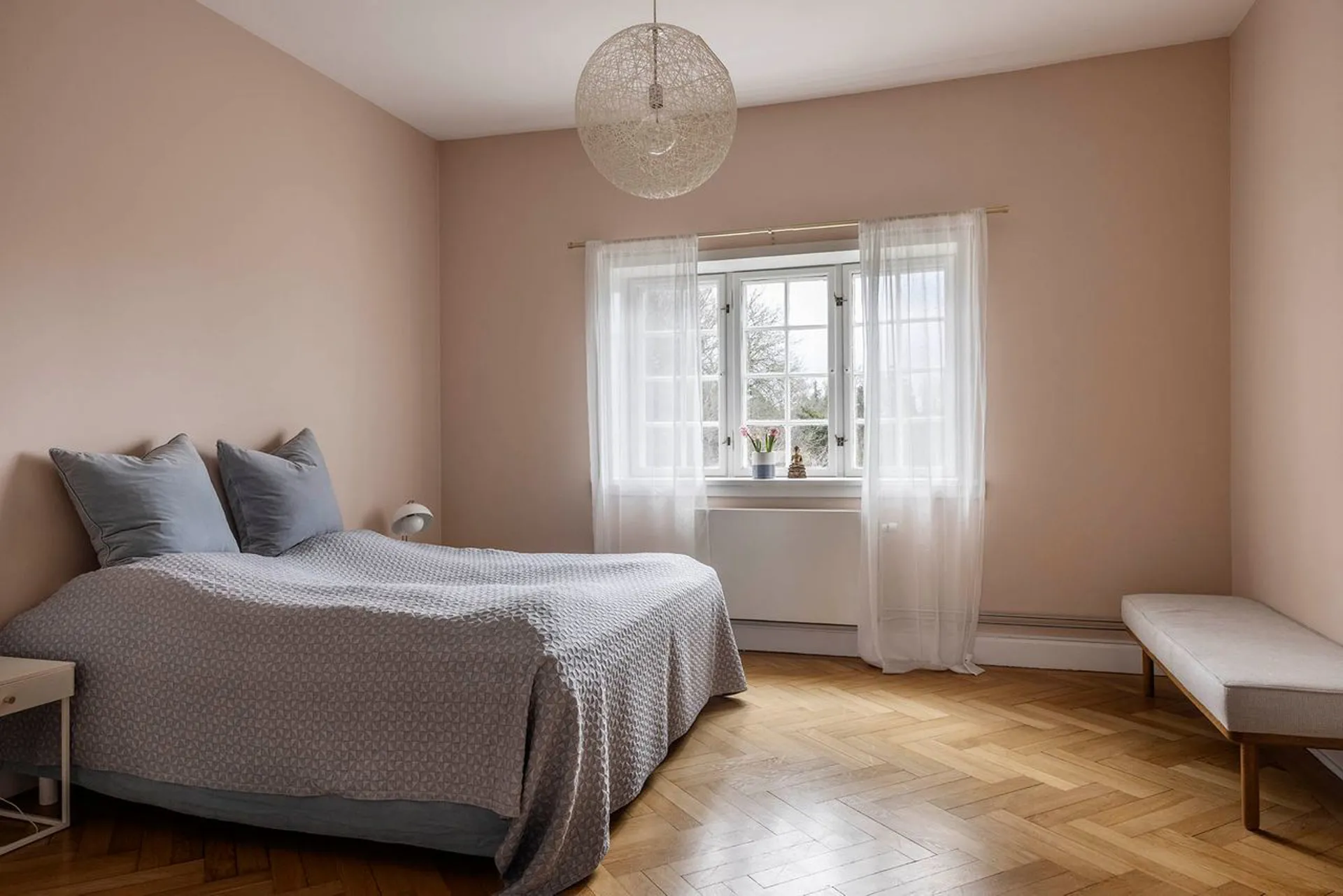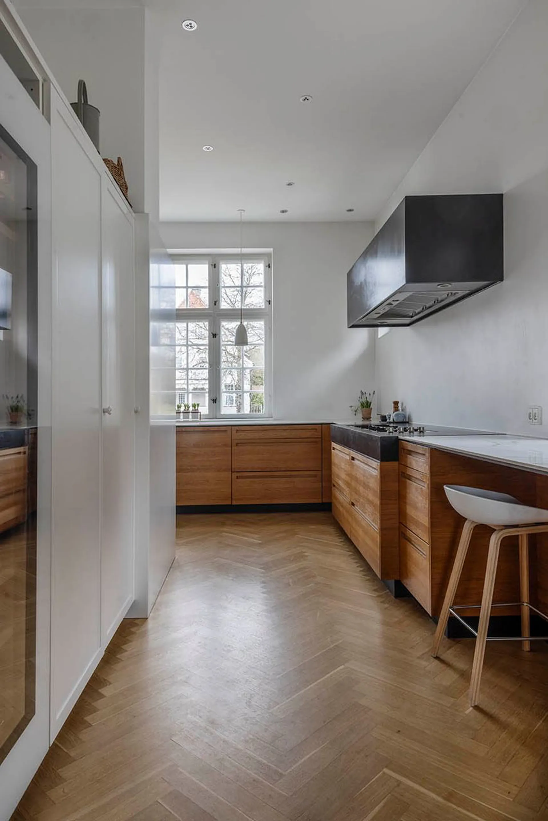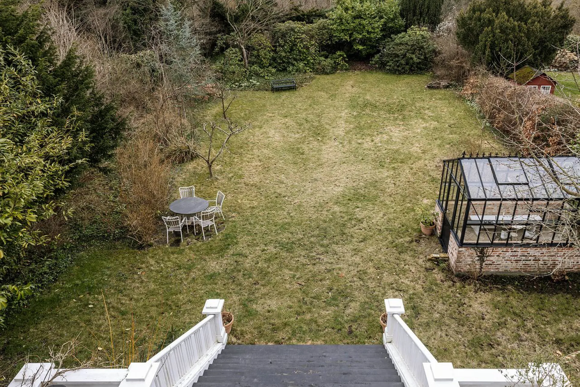Indretning: Entré til en imponerende hall med Alexanderfrise, gæstetoilet og trappeløb med repos til 1. sal og det smukkeste trægulv, som forventeligt er originalt fra husets opførelse. Desuden udgang til stort solbeskinnet nyere opført terrasseområde, der i sin udførelse står som kopi af husets originale terrasse (der dog var noget mindre). To herskabelige stuer en suite til mellemgang, der fører til funktionelt og smagfuldt indrettet køkken, som ligger i åben forbindelse med stor spisestue. 1. salen er indrettet med fem gode værelser, hvor to er lagt sammen til forældreafdeling med eget luksuriøst badeværelse og walk-in. 2. salen er indrettet som ét stort åbent alrum med loft til kip og de skønneste lysindfald fra tagvinduerne. I sin helhed en suveræn fordeling af værelserne, som giver plads til både privathed og fællesskab for den store familie. Husets underetage er godt disponeret med værelser, vaskefaciliteter, vinkælder og alverdens muligheder for teenageafdeling, gæsteafdeling, motionsrum mv. Yderligere sideliggende garagebygning på 42 m2 med gode anvendelsesmuligheder. Dette er en villa i særklasse. En bolig, der ud over det sædvanlige giver rammerne for at indrette sig med massere af plads i historiske smukke omgivelser.