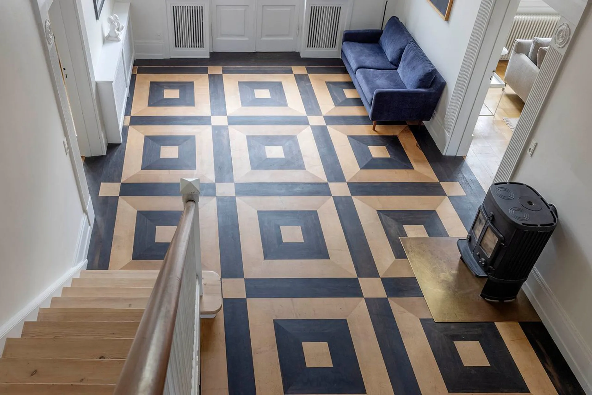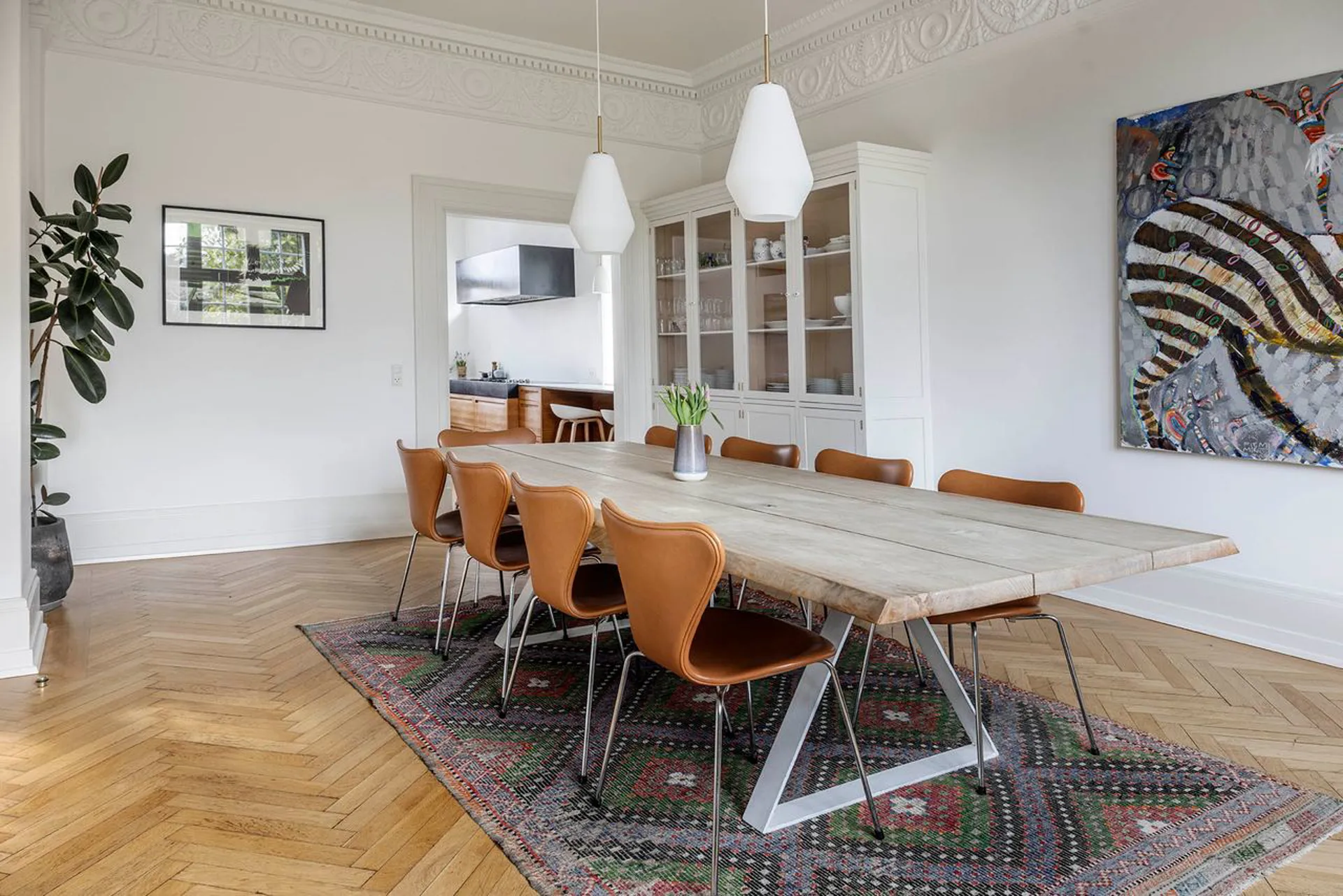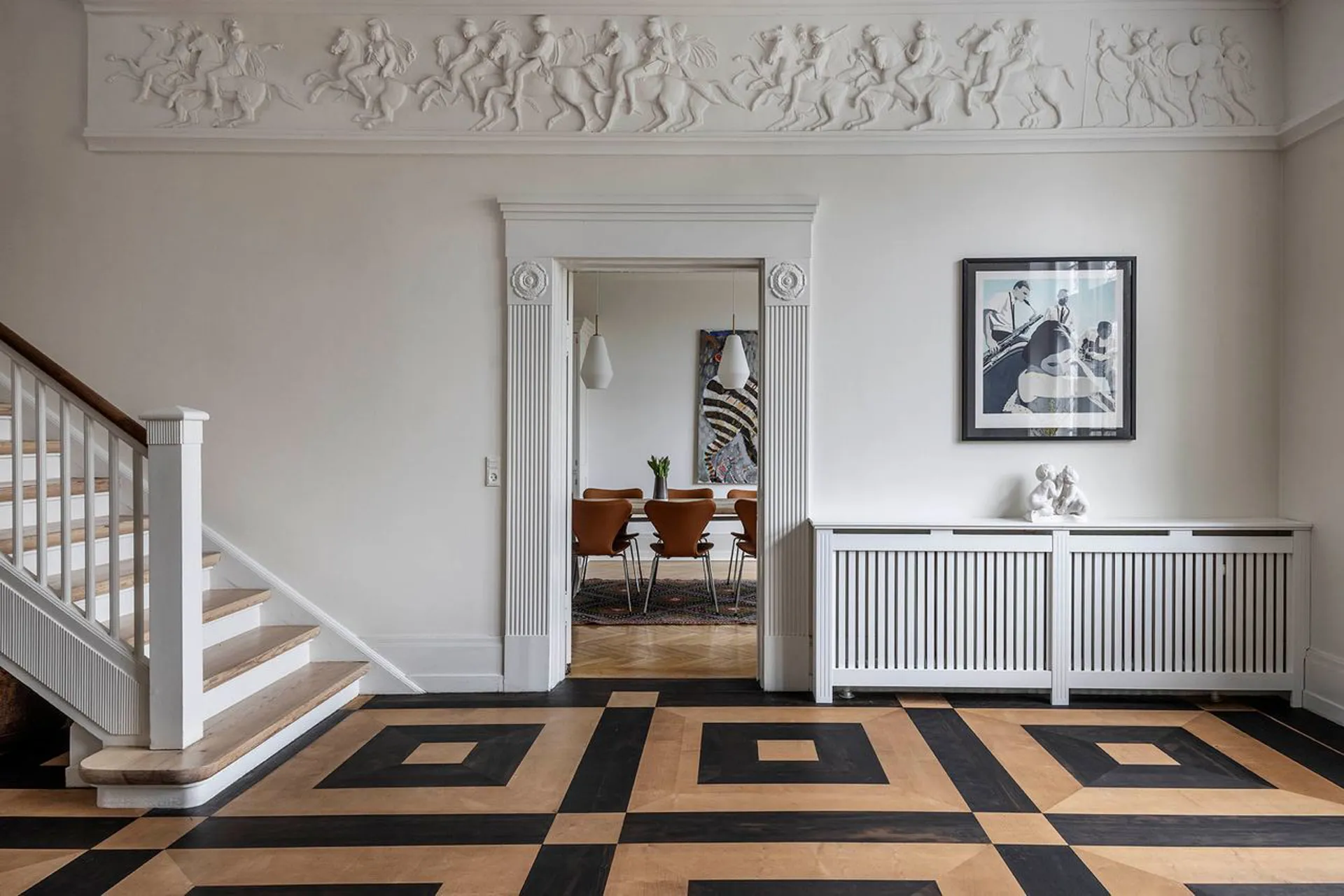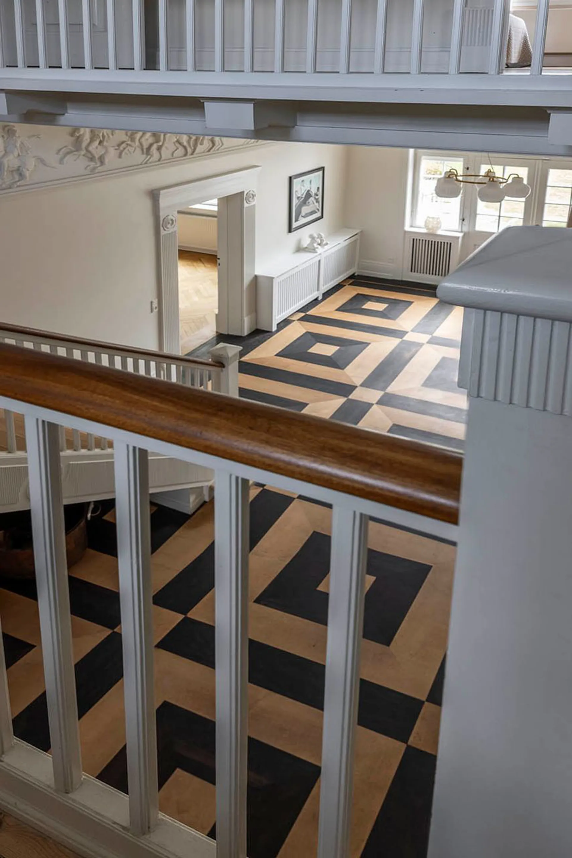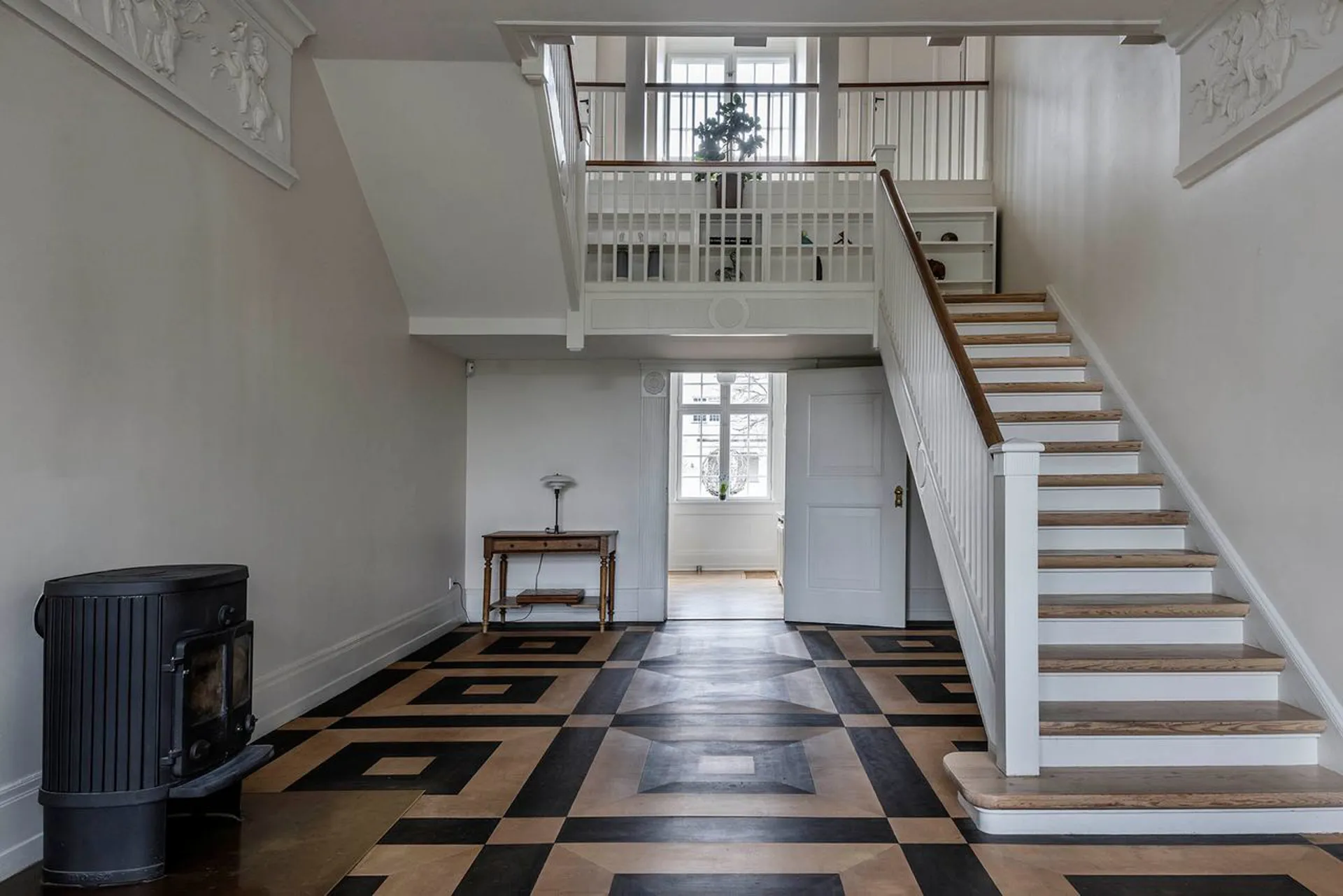 Ulrik Plesner-villaen. Enestående familievilla på mere end 600 etagemeter (BBR: 307 m2 beboelse, 26 m2 erhverv, 185 m2 underetage, ca. 70 m2 udnyttet tagetage og garagebygning på 42 m2) med bedste beliggenhed på 1.265 m2 grund i Carlsberg Kvarteret. Et arkitekturhistorisk mesterværk fra 1897 tegnet af arkitekt Ulrik Plesner og opført af Theodor Oppermann. Større bliver det vel næppe, og en mere imposant villa skal man lede længe efter. Ganske enkelt forrygende og i en klasse helt for sig selv. Oppermann boede selv i villaen i en årrække, og siden har ejendommens ejere listede en række kendte personligheder, der hver især har gjort sig på den danske erhvervs- og kunstscene. I 1900 lagde huset silhuet til en fulmaane-almanak, hvor det blev illustreret med navnet ”Solfang” – så det navn lader vi stå, som symbol på bygningens forening af romantik og mesterligt formsprog. Ethvert kig igennem huset og i den ene detalje efter den anden kaster ejendommen glans over de smukkeste detaljer. Mesterligt interiør, fyldningsdøre og paneler hele vejen rundt er i sig selv seværdigt – ja, selv pompøse udsnit af den berømte Alexanderfrise stråler i boligens imponerende hall. En kopi skabt på basis af Thorvaldsens frise om Alexander den Stores bedrifter (hele frisen findes i spisesalen på Carlsbergs Akademi).