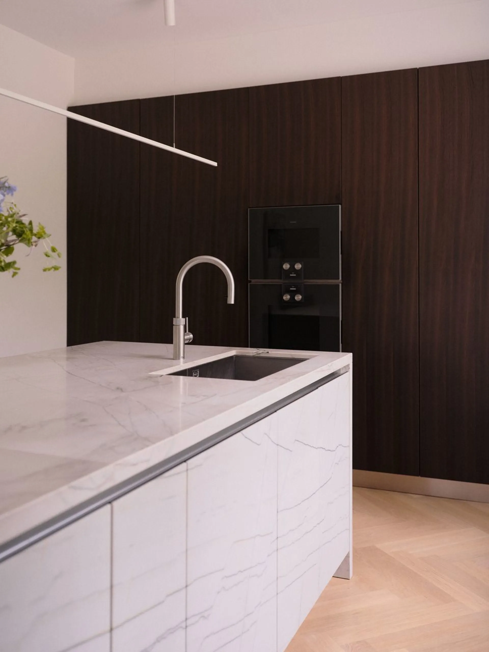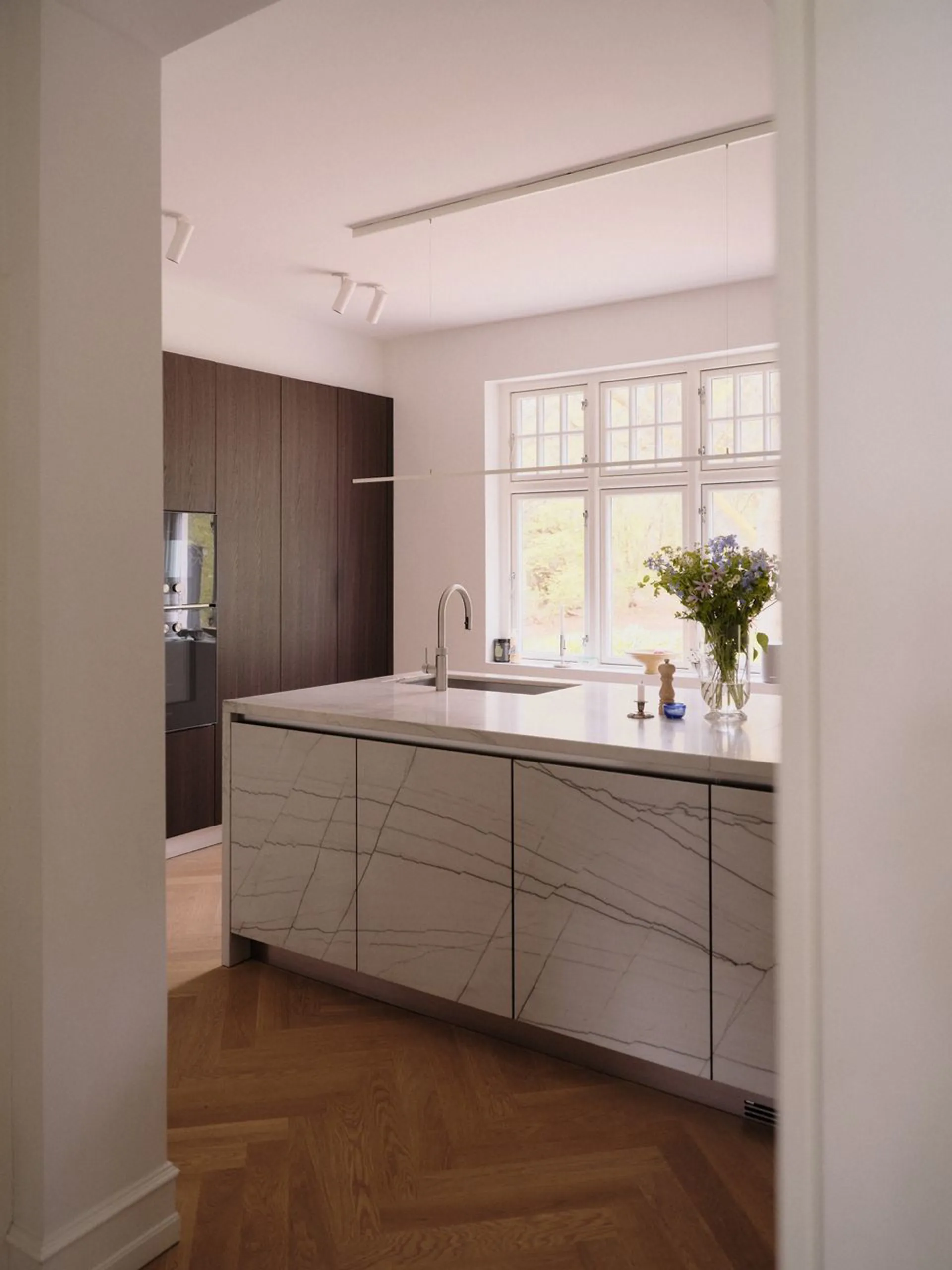 Stueetagens stuer en suite har udgang til de omkringliggende terrasseområder og taler vel med rimelighed sit eget sprog. 1. salen er indrettet med fire skønne soveværelser, hvor der fra tre af dem er udgang til privat altan eller balkon og sammen deler de et badeværelse med brus.