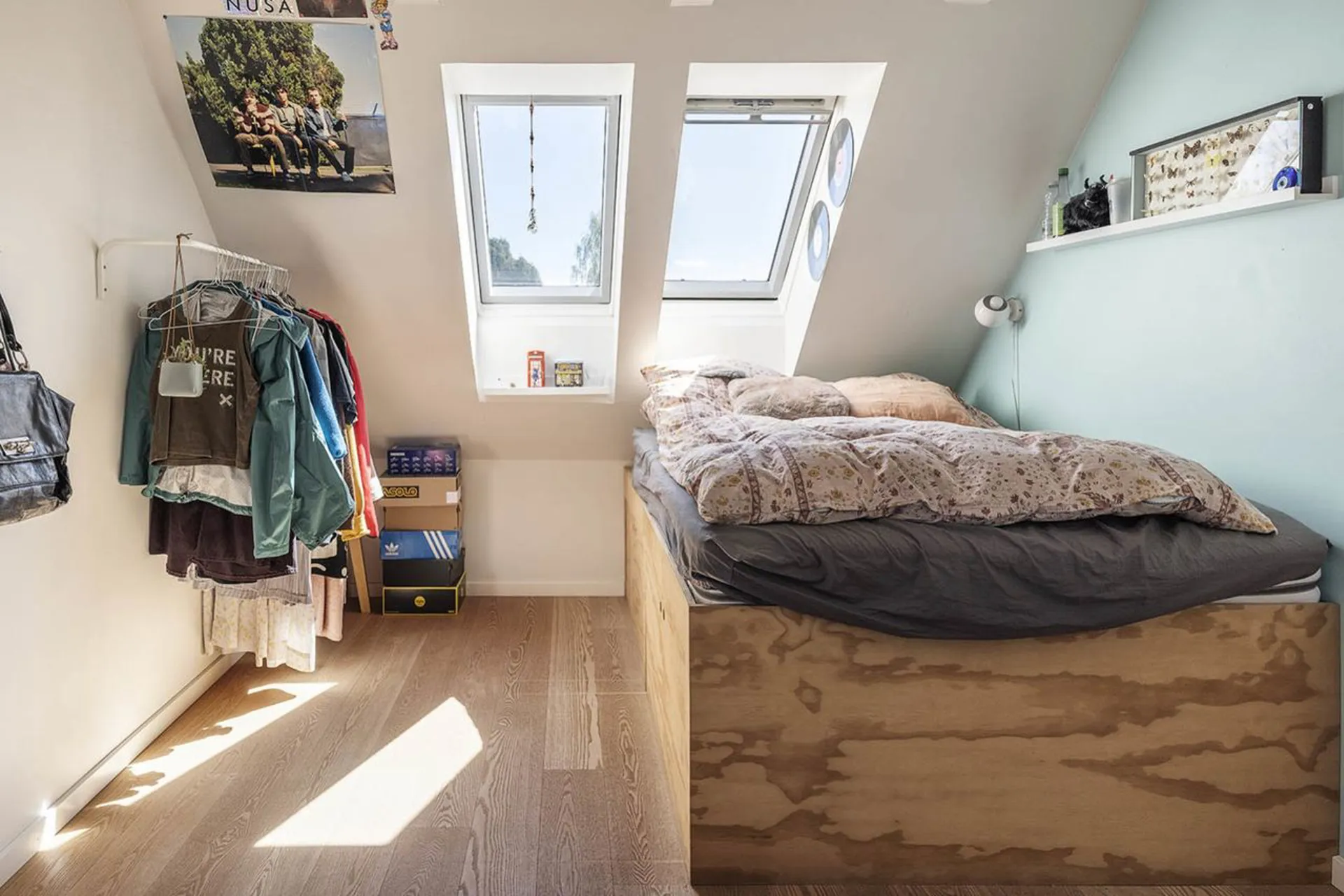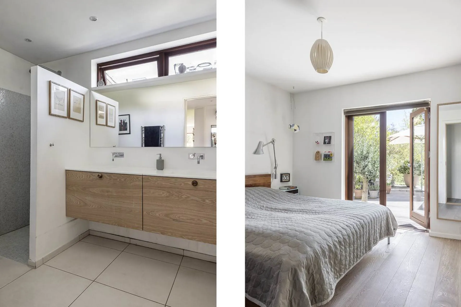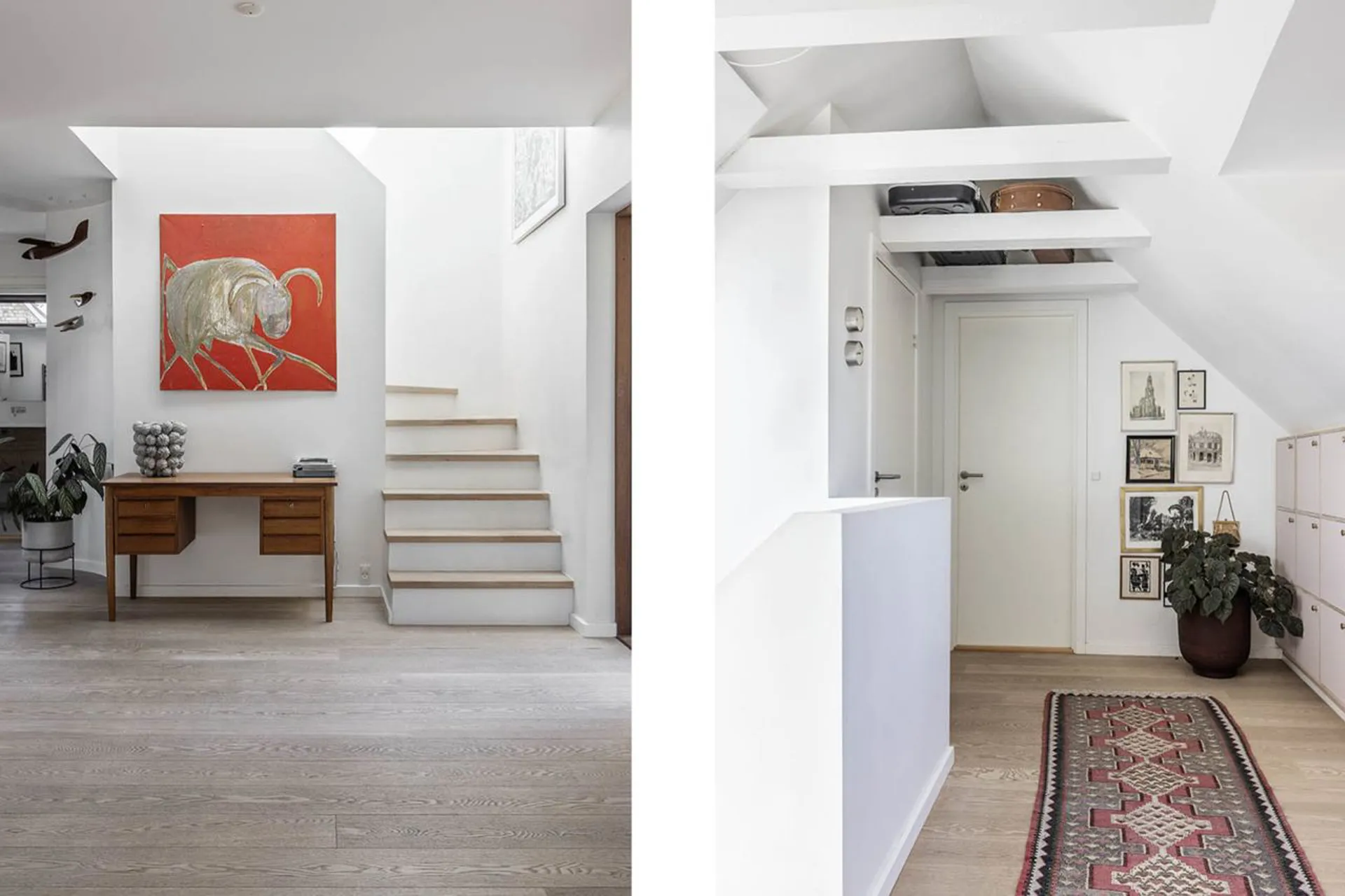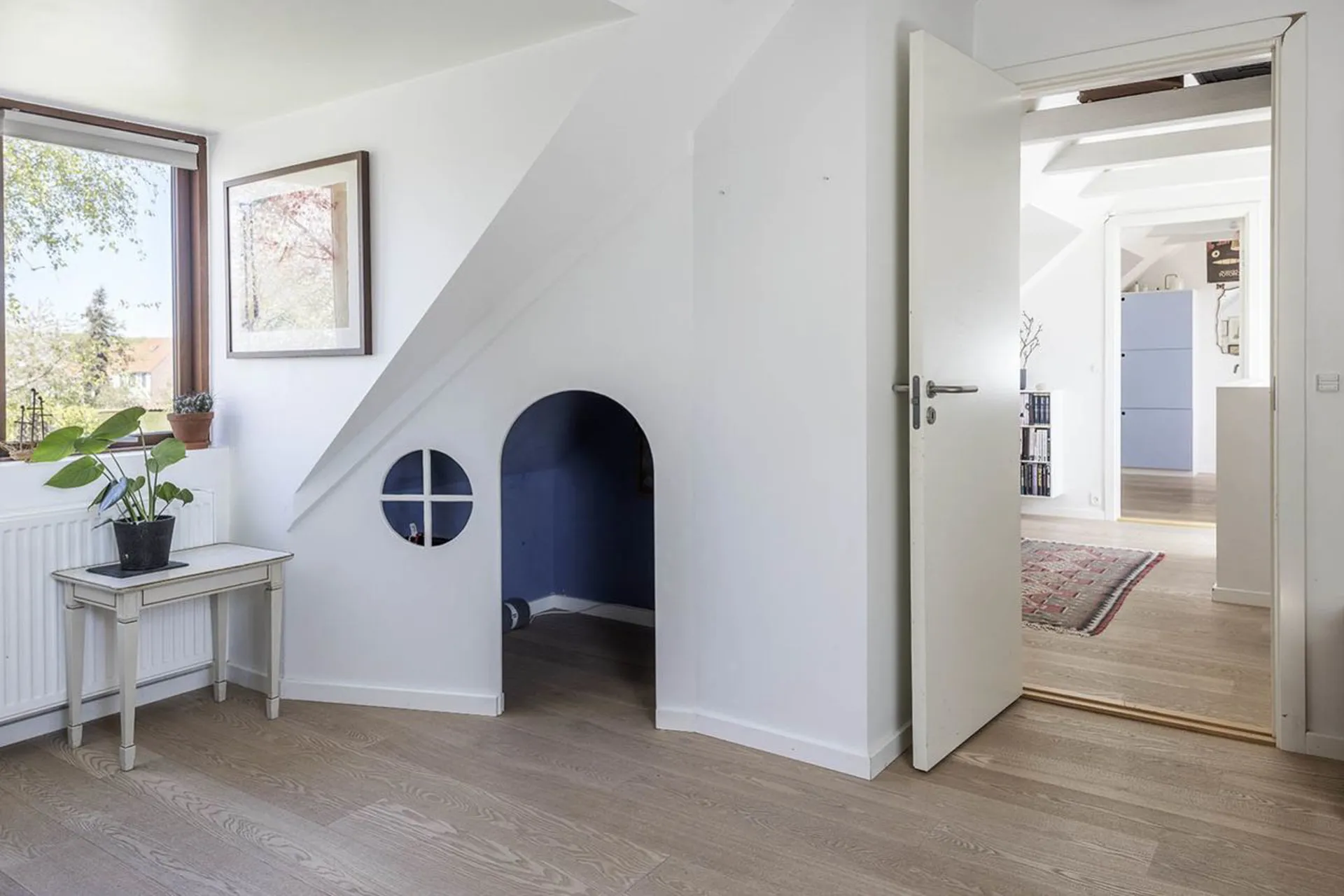 Indretning: Entré med garderobeplads, som via indbydende gang fører til husets store opholdsrum hvorfra terrassen og haven tilgås. Rummet ligger i åben forbindelse til køkkenet, hvor der er nedgang til brugbar opbevaringskælder. I stueetagen findes husets masterbedroom som også har udgang til terrassen. Herudover stilrent badeværelse. Via trappeløb tilgås husets 1.sal, som udover en smuk udsigt til Geels Skov, en velindrettet læsekrog og et toilet, byder på to gode soveværelser. Herudover brugbart anneks som kan benyttes som gæsterum/kontor.