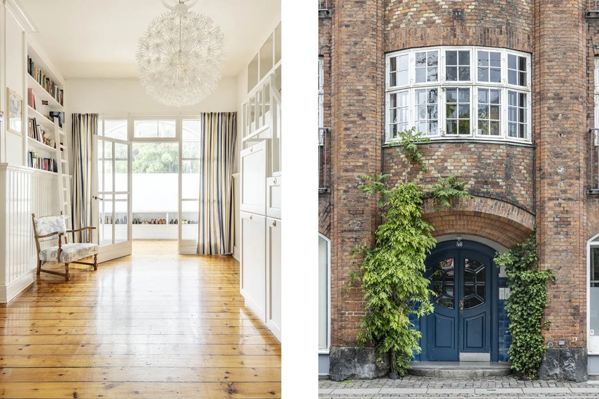 Unik og detaljerig lejlighed i to plan på 148 etagemeter, med lav ejerudgift og direkte udgang til hyggelig gårdhave.