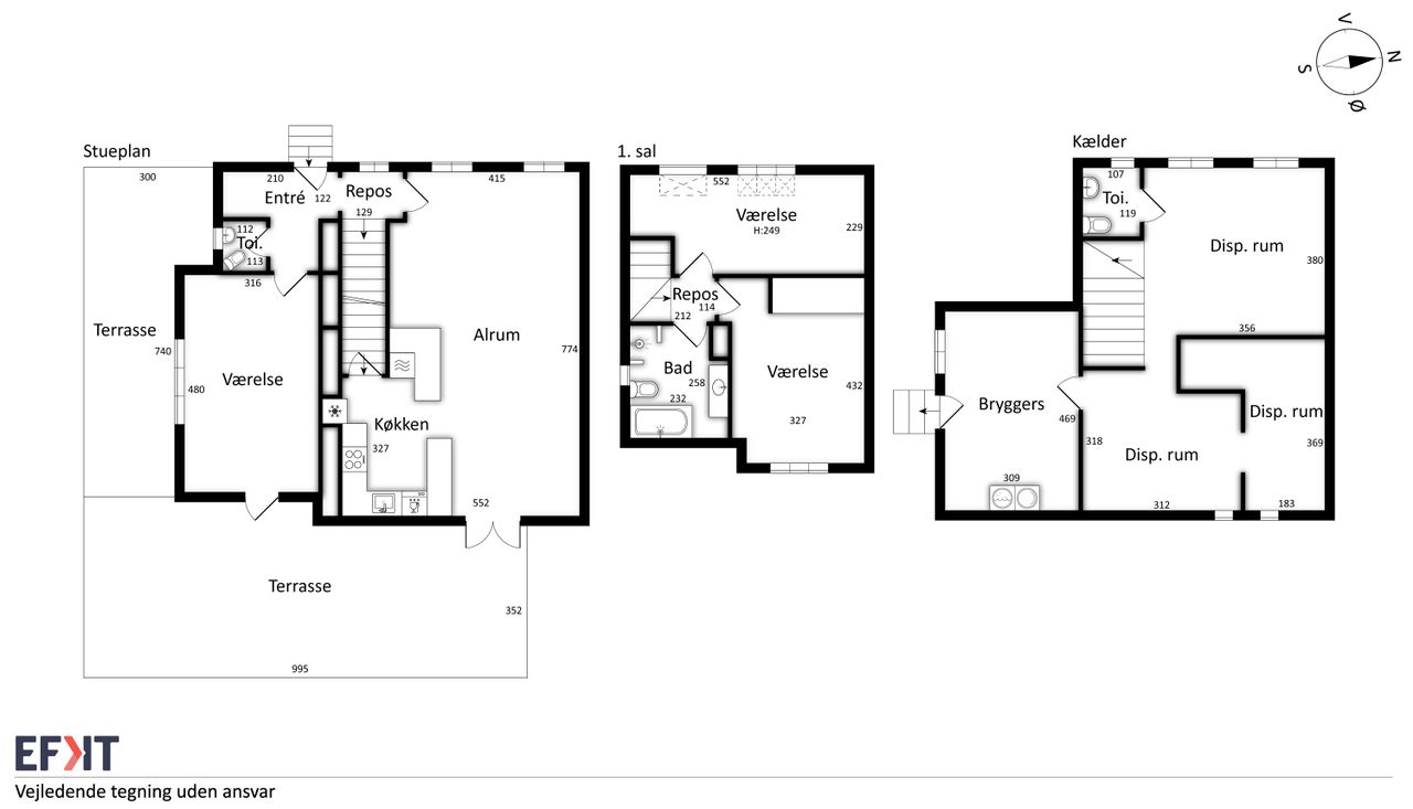 Huset er indrettet med entré til gæstetoilet, opholdsstue (alternativt et ekstra soveværelse) og stort alrum, der fordeler spisestue og køkkenalrum. Fra både køkkenalrum og opholdsstue er der udgang til stor sydvendt terrasseområde, der står som overgangsområde til den smukt anlagte have. 1. salen er indrettet med to skønne soveværelser og et smagfuldt indrettet badeværelse. Dertil særdeles velindrettet underetage med disponible rum og yderligere et badeværelse.