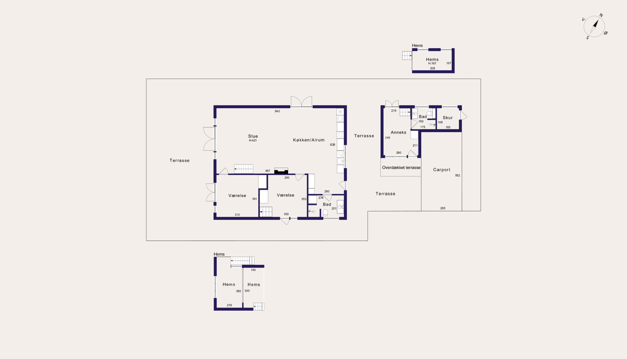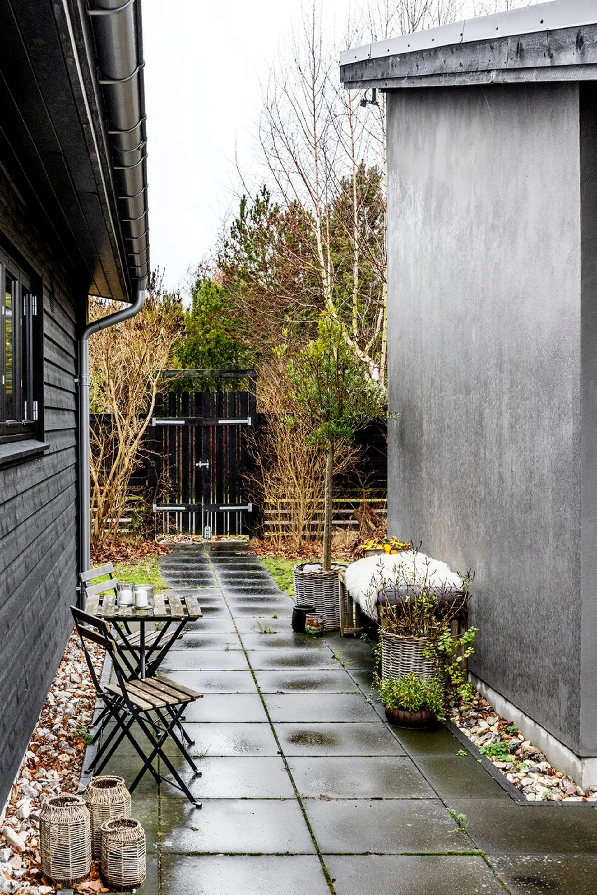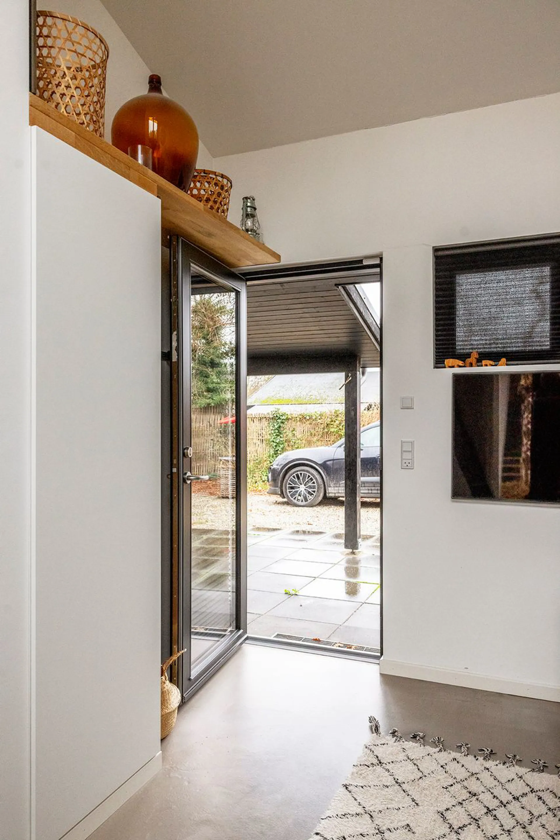 Annekset er opført i samme arkitektoniske streg og rummer værelse, hems og eget badeværelse - ideelt til gæster eller som et stille arbejdsrum. Selv carporten følger husets formsprog og fuldender helhedsindtrykket.