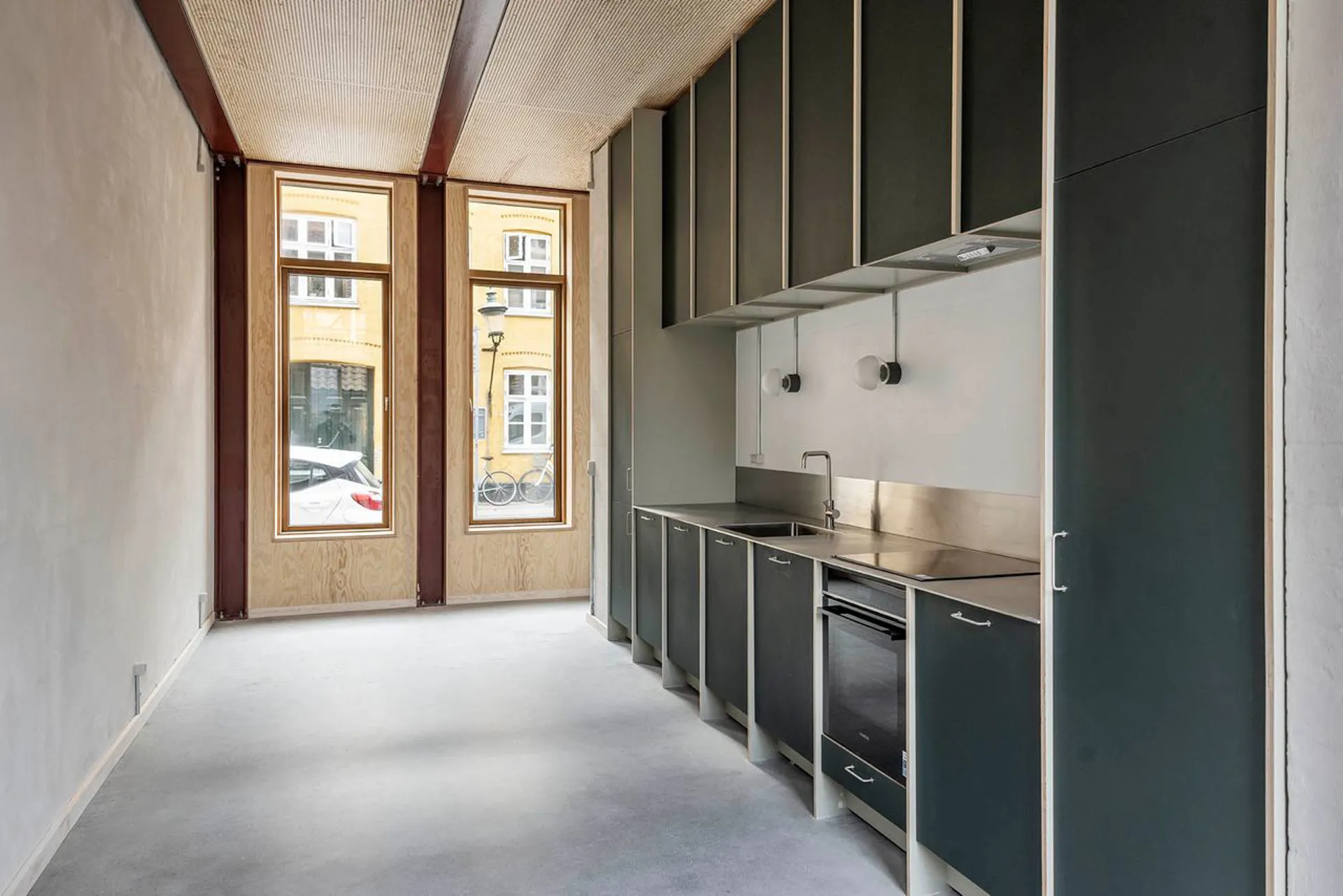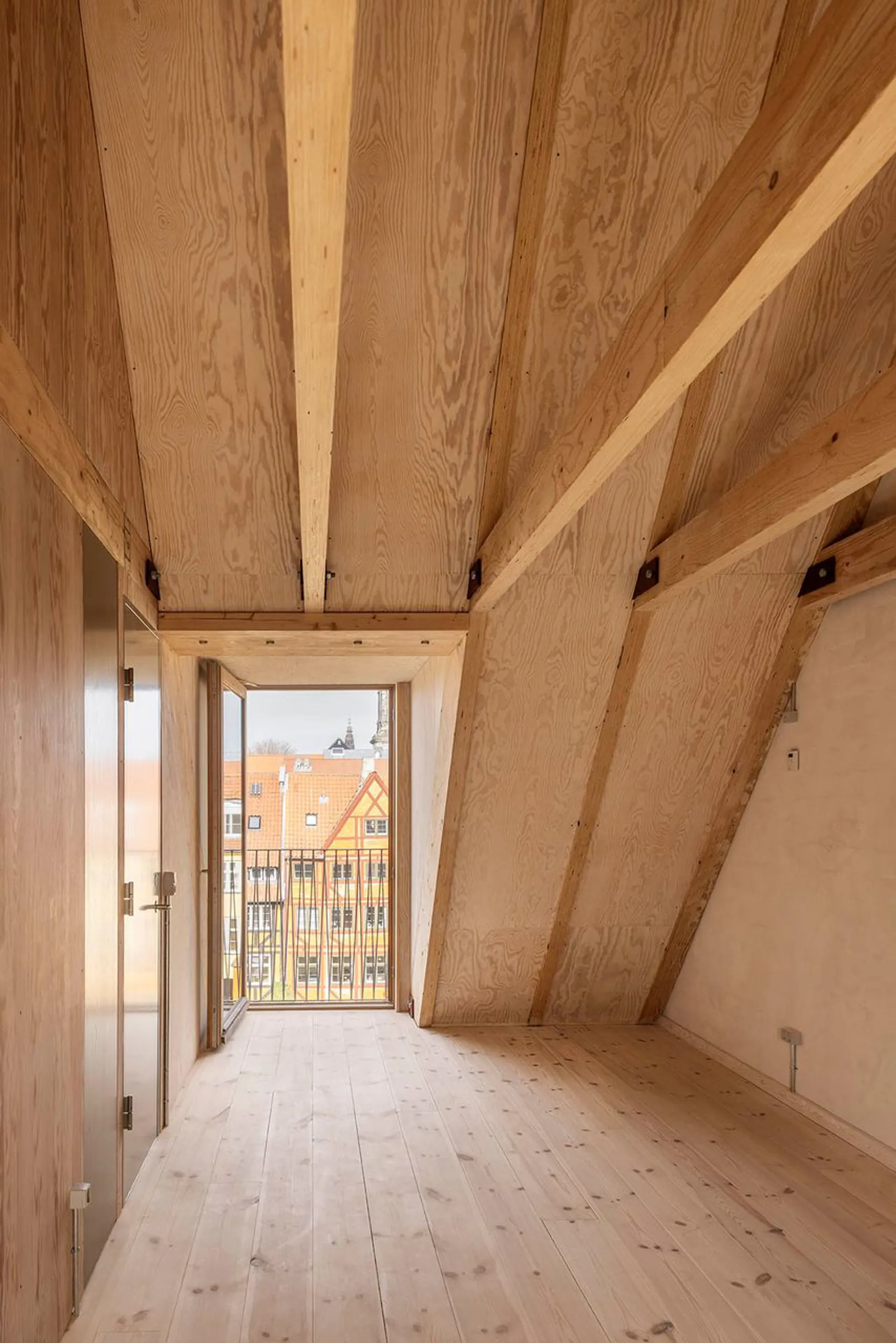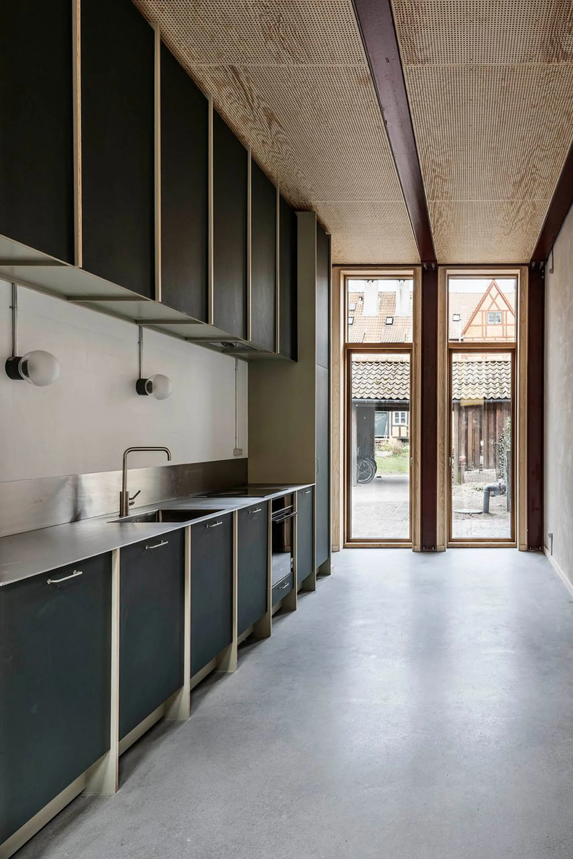 Huset er et koncept, et koncept imellem design, materialer, farver, lys, komfort og historie. Her er tænkt 1000 tanker om hver en detalje, hvilket bemærkes tydeligt i formsproget. Her er højt til loftet og masser af lys, og de store vinduespartier ud mod den historiske gård og Københavns tårne, skaber en perfekt kontrast til huset. Huset er moderne, men skabt ud fra en respekt for grundprincipperne for gammeldags håndværk og materiale. Her er synlige spær, snedkerløsninger og fyrretræs plankegulv.