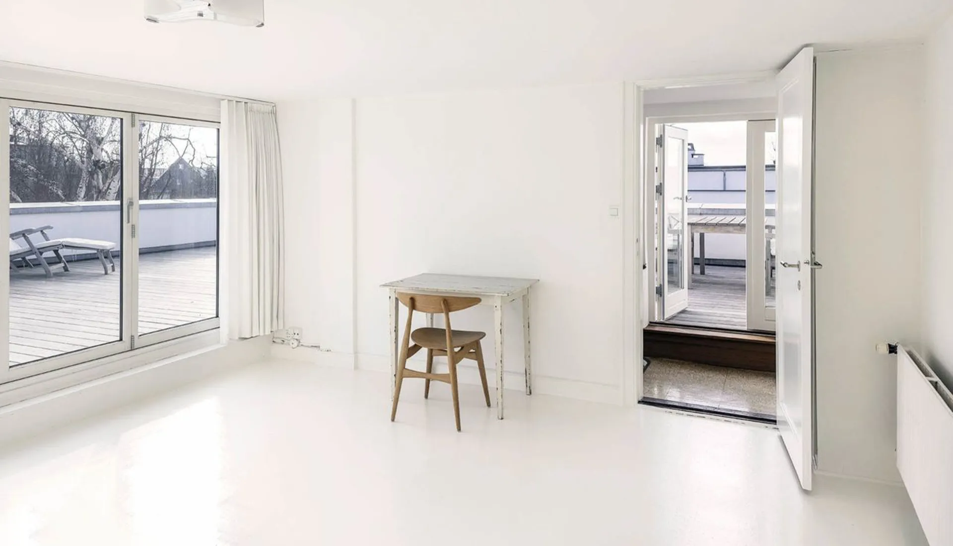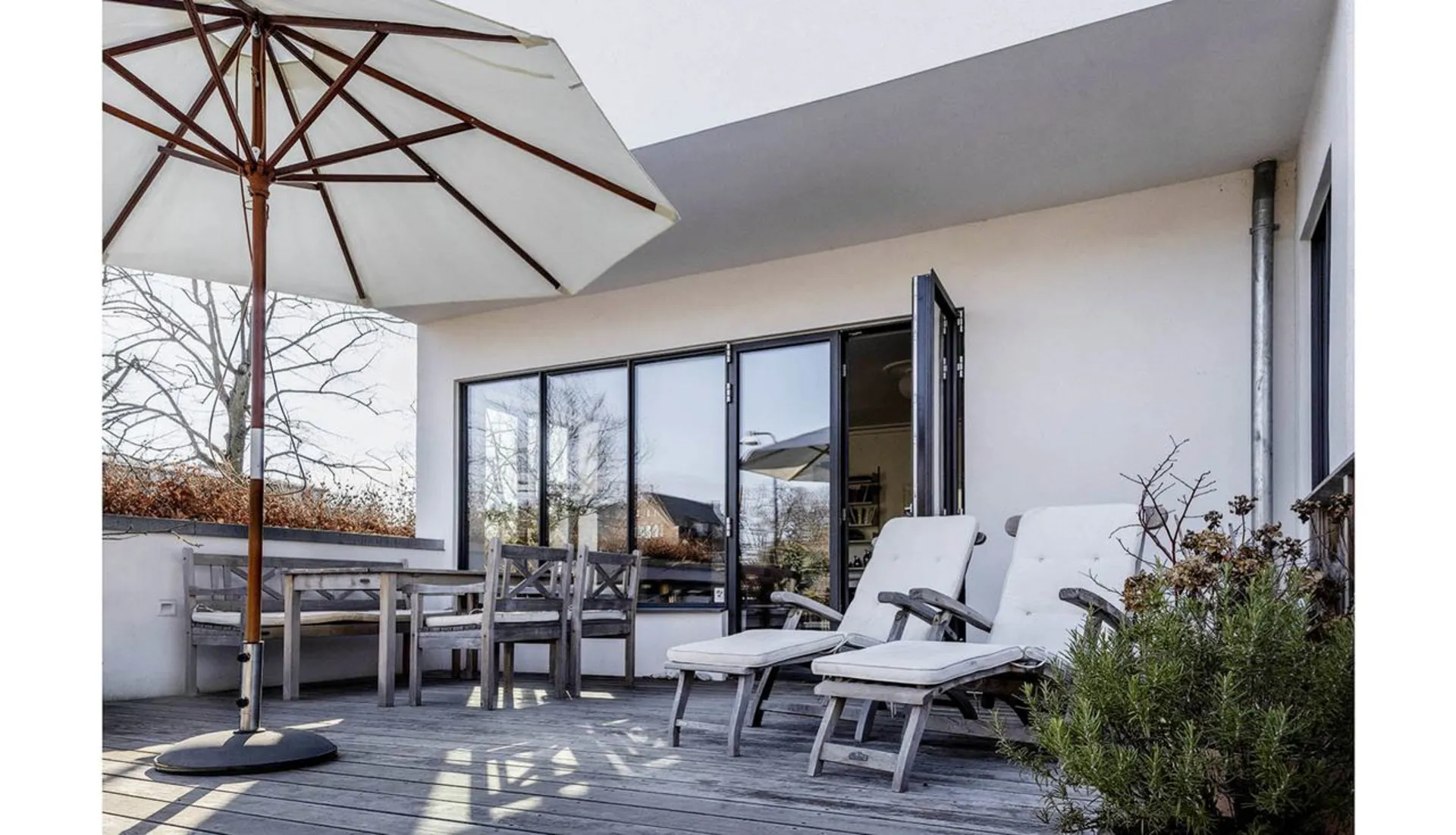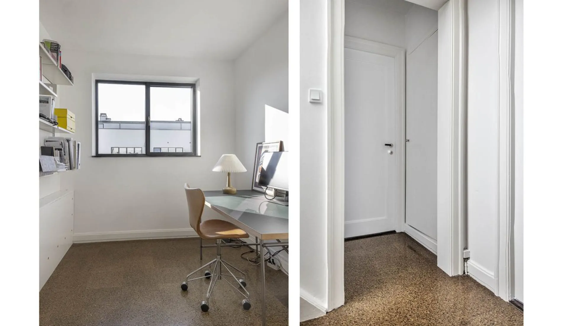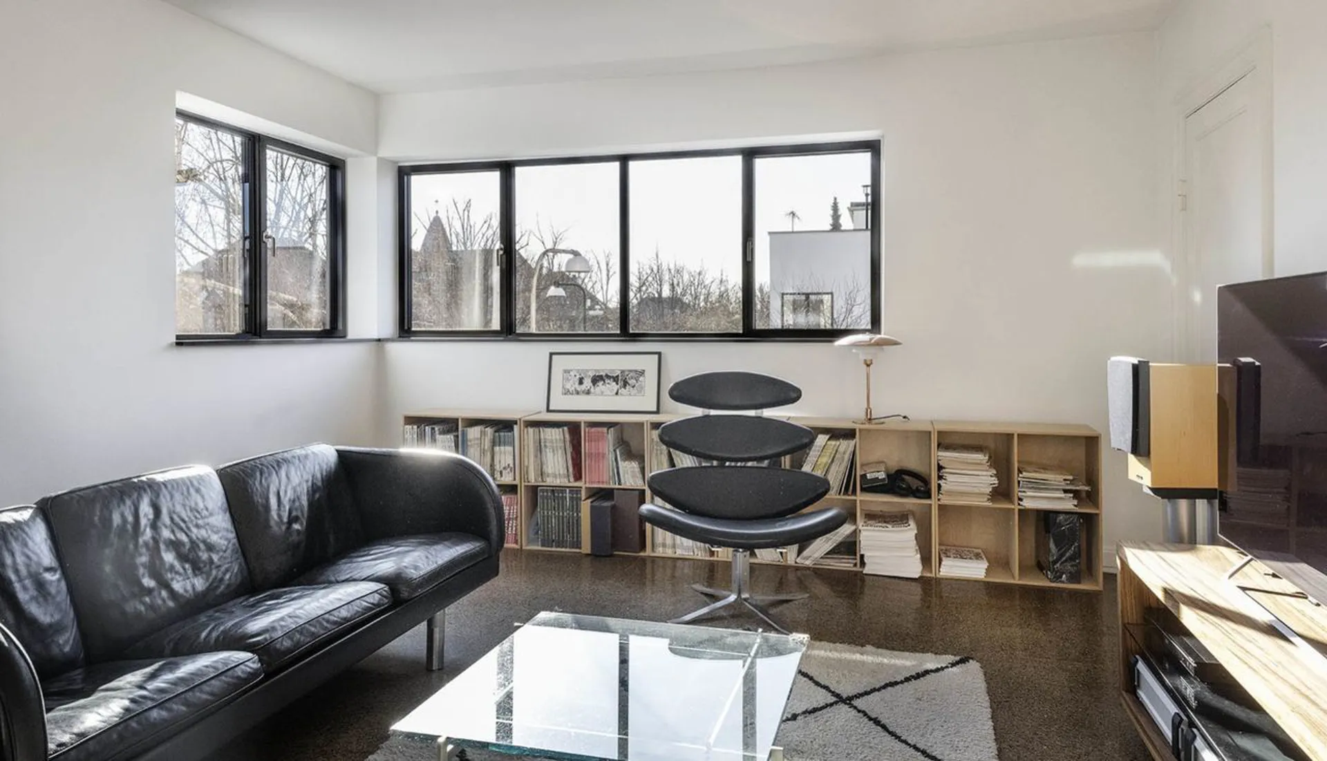 Ikonisk halvt dobbelthus på 388 etagemeter (BBR: 268 m2) med have og stor privat tagterrasse. Funktionalistisk arkitektur fra 1933 tegnet af mesterarkitekten Hans Dahlerup. Ejendommen er beliggende i et af Frederiksbergs mest attraktive kvarterer tæt på Femte Juni Plads, tæt på skoler og tæt på indkøb. Indretning: Entré med gæstetoilet. Funktionelt indrettet køkken, som ligger i åben forbindelse med stort stue-alrum, hvor man oplagt kan indrette spisestue med brændeovn og opholdsstue i ét med udgang til stort terrasseområde orienteret mod privat have. Yderligere en opholdsstue med et fantastisk vinduesparti orienteret mod sydvest. 1. salen er indrettet med fire gode værelser, hvor to af dem har udgang til nordøstvendt altan, det ene med walk-in og et andet med direkte adgang til sjældent smagfuldt restaureret badeværelse med kar. Badeværelse kan tillige tilgås fra fælles gangareal, hvor der også er indbygget skab og smukt trappeløb til 2. salen. 2. salen består af et værelse, hvorfra der er udgang til enorm solbeskinnet og tagterrasse på ca. 76 m2. Højloftet suveræn istandsat underetage på 120 m2 med egen indgang, indrettet med to store disponible rum, bryggers med vaskefaciliteter, ekstra ovn, fryseskab og indbygget skabe, smagfuldt indrettet badeværelse med brus, vinkælder og indbygget garage på ca. 14 m2. En forrygende bolig til den store familie eller det pladskrævende par og en arkitektonisk triumf og et arkitekturhistorisk stjerneskud, der uden tvivl fortjener sin status som et af moderne tids ikoniske bygningsværker.