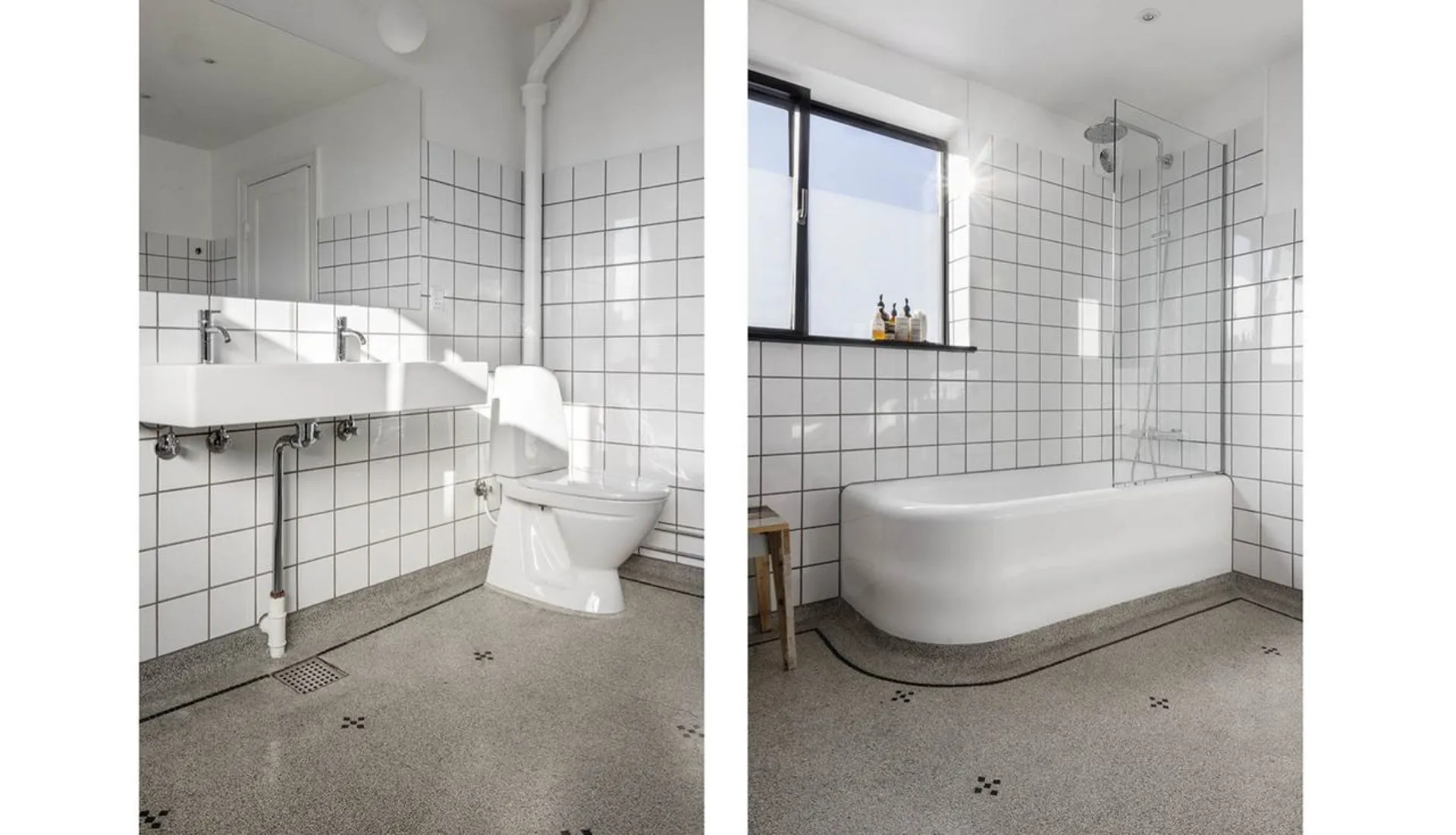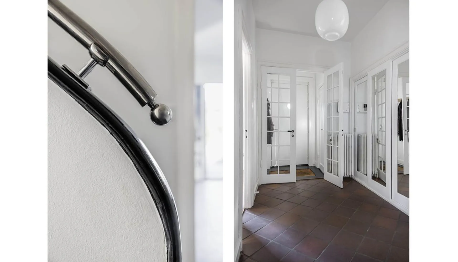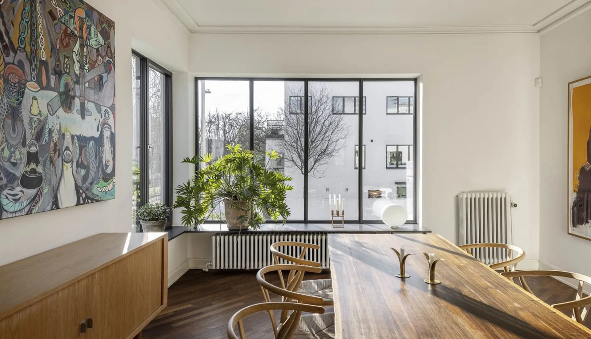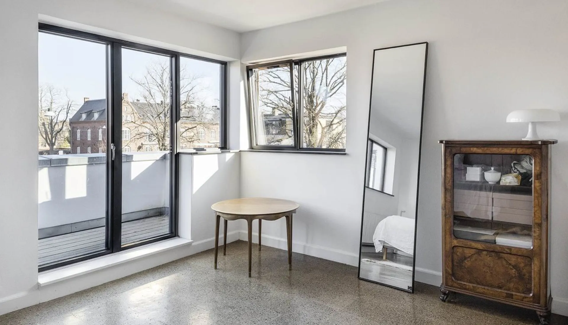 Ikonisk halvt dobbelthus på 388 etagemeter (BBR: 268 m2) med have og stor privat tagterrasse. Funktionalistisk arkitektur fra 1933 tegnet af mesterarkitekten Hans Dahlerup. Ejendommen er beliggende i et af Frederiksbergs mest attraktive kvarterer tæt på Femte Juni Plads, tæt på skoler og tæt på indkøb. Indretning: Entré med gæstetoilet. Funktionelt indrettet køkken, som ligger i åben forbindelse med stort stue-alrum, hvor man oplagt kan indrette spisestue med brændeovn og opholdsstue i ét med udgang til stort terrasseområde orienteret mod privat have. Yderligere en opholdsstue med et fantastisk vinduesparti orienteret mod sydvest. 1. salen er indrettet med fire gode værelser, hvor to af dem har udgang til nordøstvendt altan, det ene med walk-in og et andet med direkte adgang til sjældent smagfuldt restaureret badeværelse med kar. Badeværelse kan tillige tilgås fra fælles gangareal, hvor der også er indbygget skab og smukt trappeløb til 2. salen. 2. salen består af et værelse, hvorfra der er udgang til enorm solbeskinnet og tagterrasse på ca. 76 m2. Højloftet suveræn istandsat underetage på 120 m2 med egen indgang, indrettet med to store disponible rum, bryggers med vaskefaciliteter, ekstra ovn, fryseskab og indbygget skabe, smagfuldt indrettet badeværelse med brus, vinkælder og indbygget garage på ca. 14 m2. En forrygende bolig til den store familie eller det pladskrævende par og en arkitektonisk triumf og et arkitekturhistorisk stjerneskud, der uden tvivl fortjener sin status som et af moderne tids ikoniske bygningsværker.