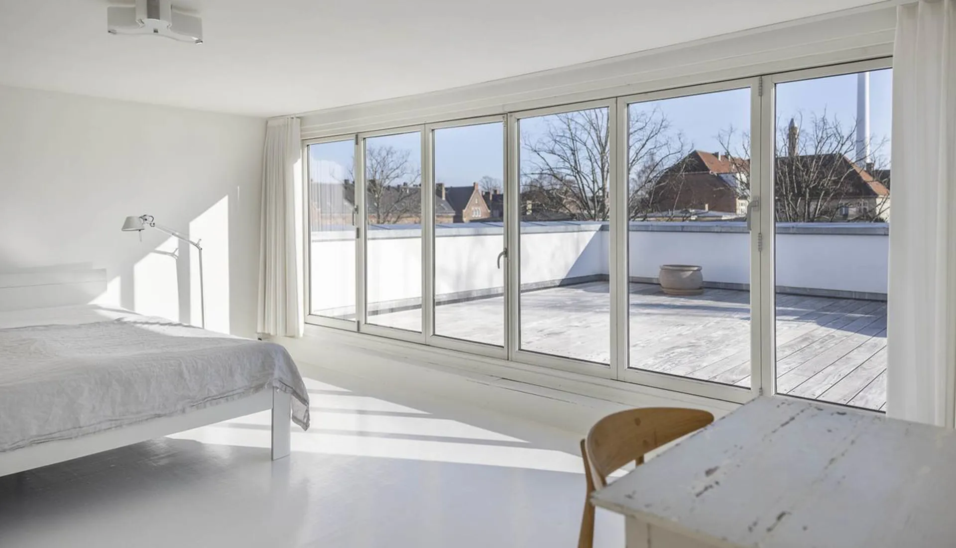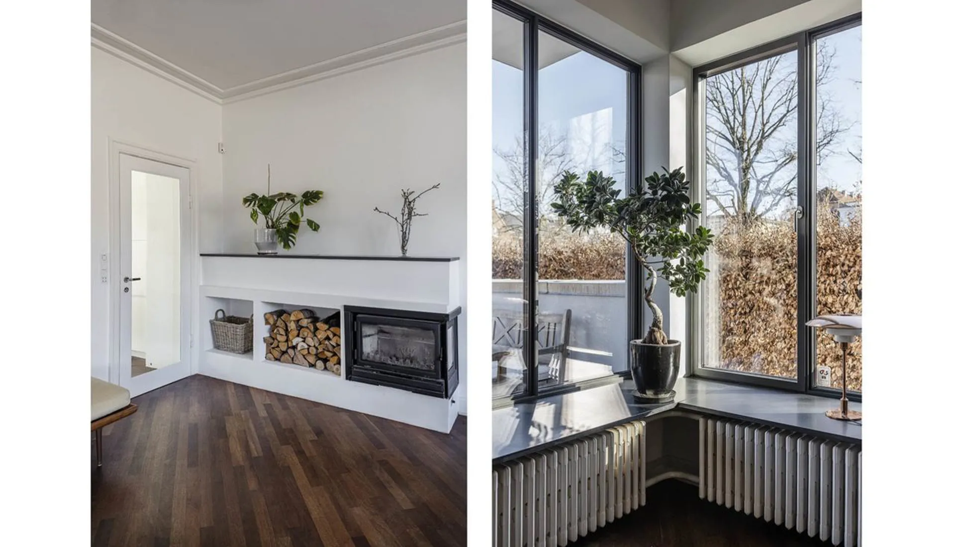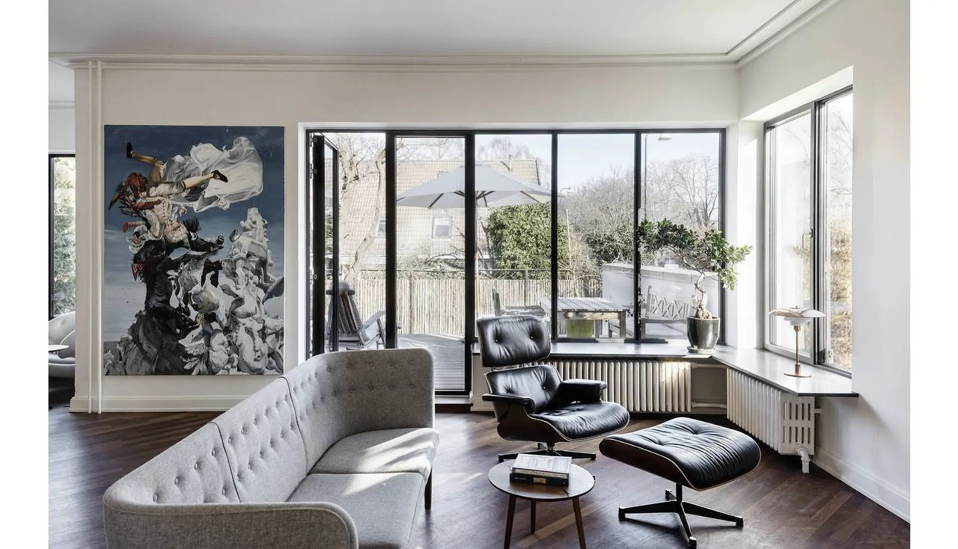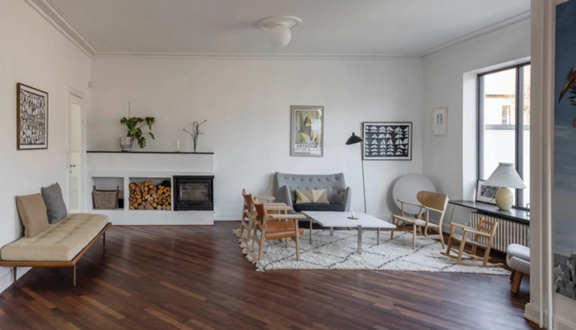 Ikonisk halvt dobbelthus på 388 etagemeter (BBR: 268 m2) med have og stor privat tagterrasse. Funktionalistisk arkitektur fra 1933 tegnet af mesterarkitekten Hans Dahlerup. Ejendommen er beliggende i et af Frederiksbergs mest attraktive kvarterer tæt på Femte Juni Plads, tæt på skoler og tæt på indkøb. Indretning: Entré med gæstetoilet. Funktionelt indrettet køkken, som ligger i åben forbindelse med stort stue-alrum, hvor man oplagt kan indrette spisestue med brændeovn og opholdsstue i ét med udgang til stort terrasseområde orienteret mod privat have. Yderligere en opholdsstue med et fantastisk vinduesparti orienteret mod sydvest. 1. salen er indrettet med fire gode værelser, hvor to af dem har udgang til nordøstvendt altan, det ene med walk-in og et andet med direkte adgang til sjældent smagfuldt restaureret badeværelse med kar. Badeværelse kan tillige tilgås fra fælles gangareal, hvor der også er indbygget skab og smukt trappeløb til 2. salen. 2. salen består af et værelse, hvorfra der er udgang til enorm solbeskinnet og tagterrasse på ca. 76 m2. Højloftet suveræn istandsat underetage på 120 m2 med egen indgang, indrettet med to store disponible rum, bryggers med vaskefaciliteter, ekstra ovn, fryseskab og indbygget skabe, smagfuldt indrettet badeværelse med brus, vinkælder og indbygget garage på ca. 14 m2. En forrygende bolig til den store familie eller det pladskrævende par og en arkitektonisk triumf og et arkitekturhistorisk stjerneskud, der uden tvivl fortjener sin status som et af moderne tids ikoniske bygningsværker.