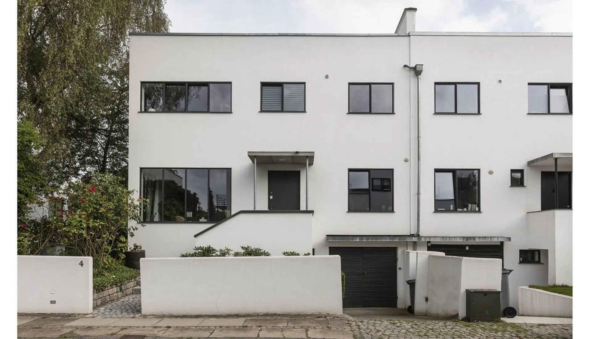 Ikonisk halv dobbelthus på 351 etagemeter (BBR: 209 m2) med have og stor privat tagterrasse. Funktionalistisk arkitektur fra 1933 tegnet af mesterarkitekten Hans Dahlerup. Ejendommen er beliggende i et af Frederiksbergs mest attraktive kvarterer tæt på Femte Juni Plads, tæt på skoler og tæt på indkøb. Indretning: Entré med gæstetoilet. Smagfuldt indrettet køkken, som ligger i åben forbindelse med spisestue. Fra spisestuen er der udgang til hyggeligt og stilsikkert terrasseområde orienteret mod privat have. Yderlige to opholdsstuer – den ene med smuk kakkelovn og orienteret mod terrasseområdet, den anden beliggende mod gaden. 1. salen er indrettet med fire gode værelser, hvor to af dem har udgang til altan. Desuden badeværelse med kar og brus. 2. salen består af et værelse, hvorfra der er udgang til enorm solbeskinnet og tagterrasse (ca. 76 m2). Højloftet underetage på 108 m2 med egen indgang, indrettet med to store disponible rum, bryggers, sauna, badeværelse med brus og indbygget garage. En forrygende bolig til den store familie eller det pladskrævende par og en arkitektonisk triumf og et arkitekturhistorisk stjerneskud, der uden tvivl fortjener sin status som et af moderne tids ikoniske bygningsværker.
