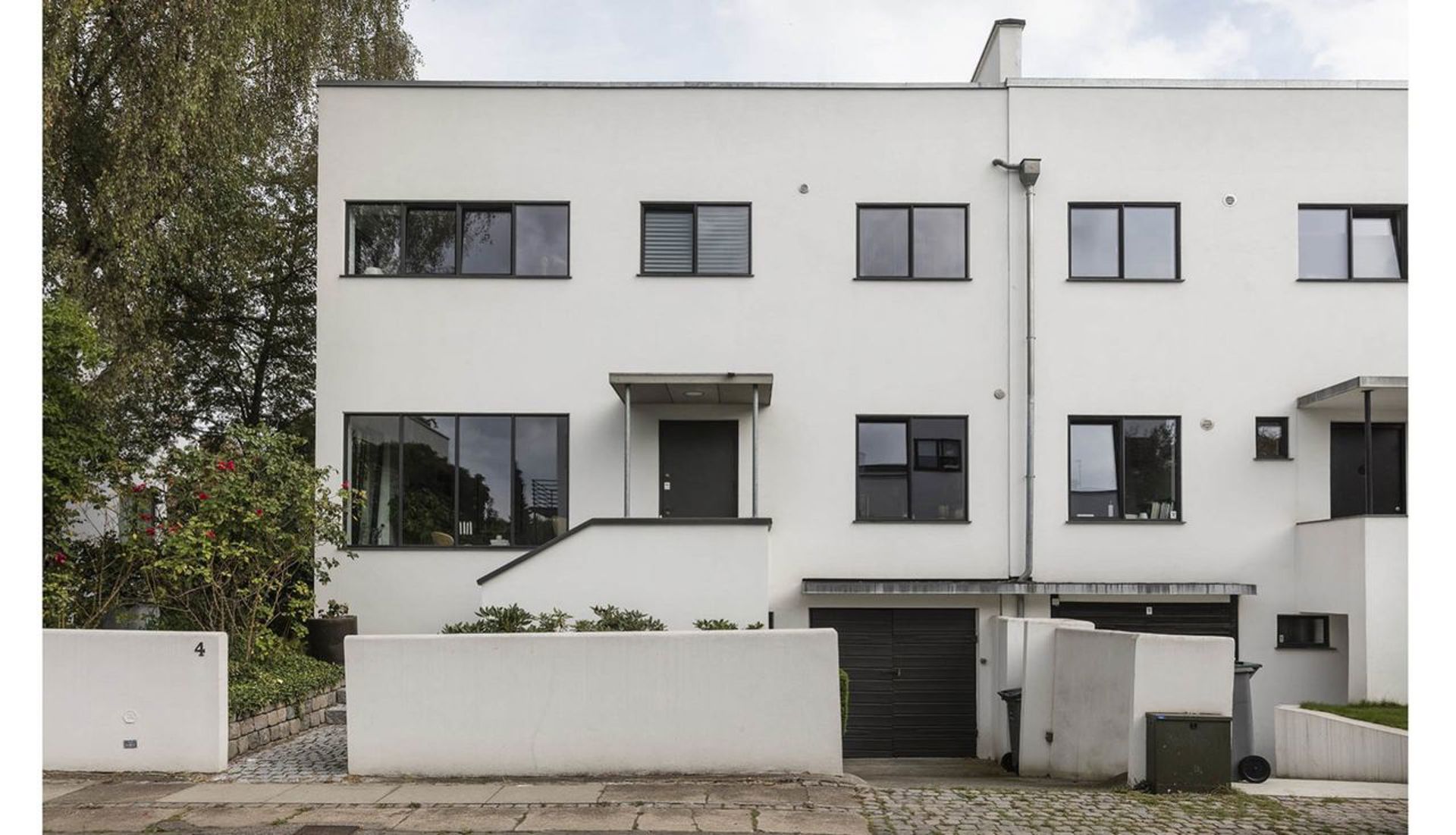Alle husene fremstår i dag hvide, malet i ét med de omkringliggende mure mod vejen. Det må ikke være anderledes, men oprindeligt blev de opført i en farveskala efter stilperiodens ikoniske le Corbusier. Kraftige farver, inspireret af Bauhaus-skolens tre grundfarver: gul, rød og blå. Husene var gulpudsede, vinduer og døre var rødmalede, mens undersiden på altaner og balkoner var marineblå. Det var et sandt eldorado for datidens forbipasserende. Et tilflugtssted for mange, der kunne komme her og pege fingre ad de revolutionæres uforstandighed. I dag står vi tilbage og må ubetinget konstatere, at det, der dengang blev grinet hånefuldt ad, er det samme, som siden har været pejlemærke for hele vores moderne selvforståelse, hvad angår design og arkitektur. Sådan ser vi det ofte med forandring, og sådan skal det nok også være, før det virker forvandlende.