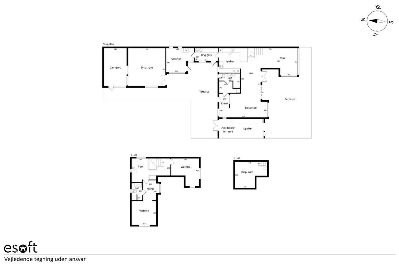 Stueetagen udgør 131 m2 bolig, og 1. salen 73 m2 bolig (BBR).