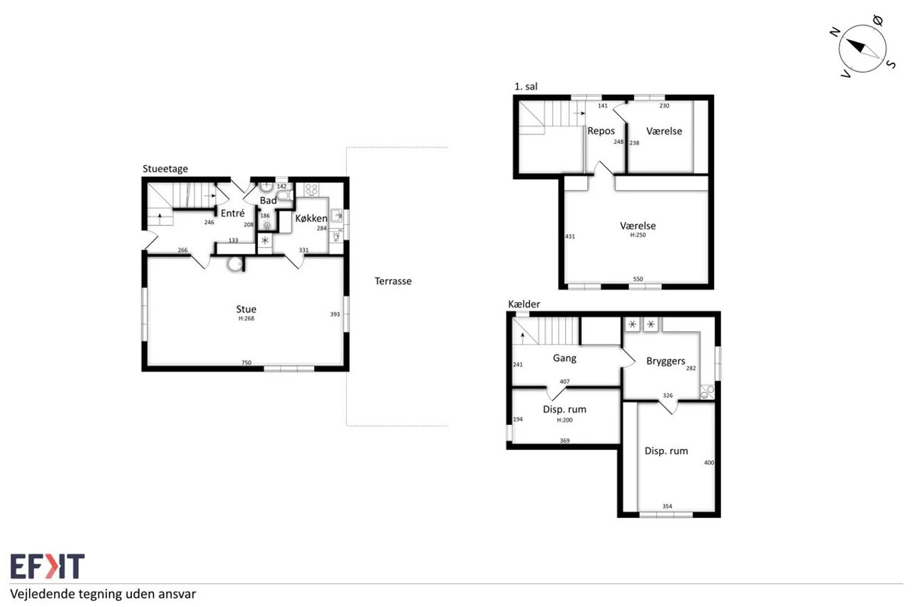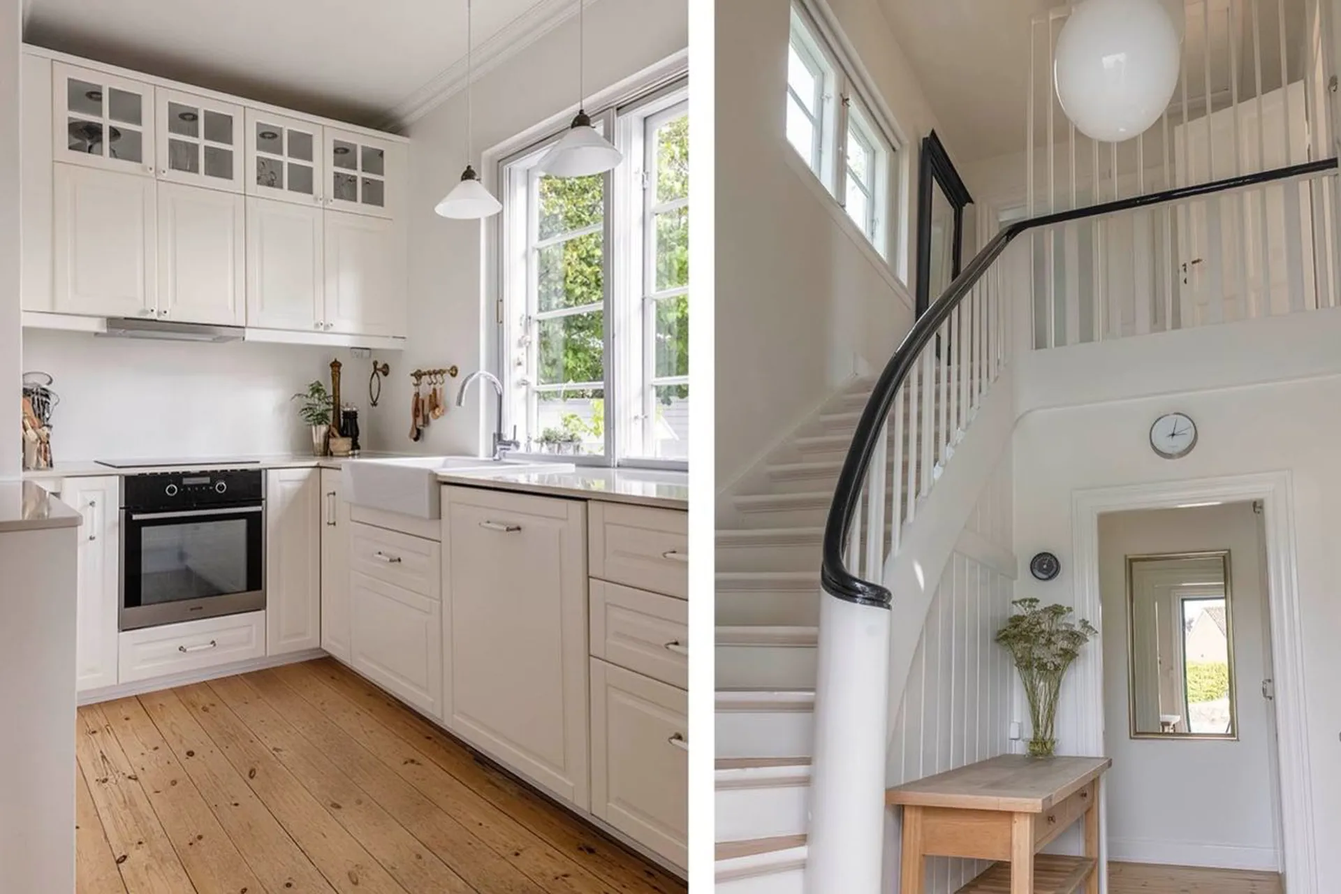Indretning: Fra hoveddøren træder man direkte ind i en smuk, klassisk entre, herfra er der adgang til det indtagende alrum og husets hyggelige køkken. På stueplan findes et fint badeværelse. På førstesalen er der to gode værelser. I underetagen er der to gode rum og et bryggers.