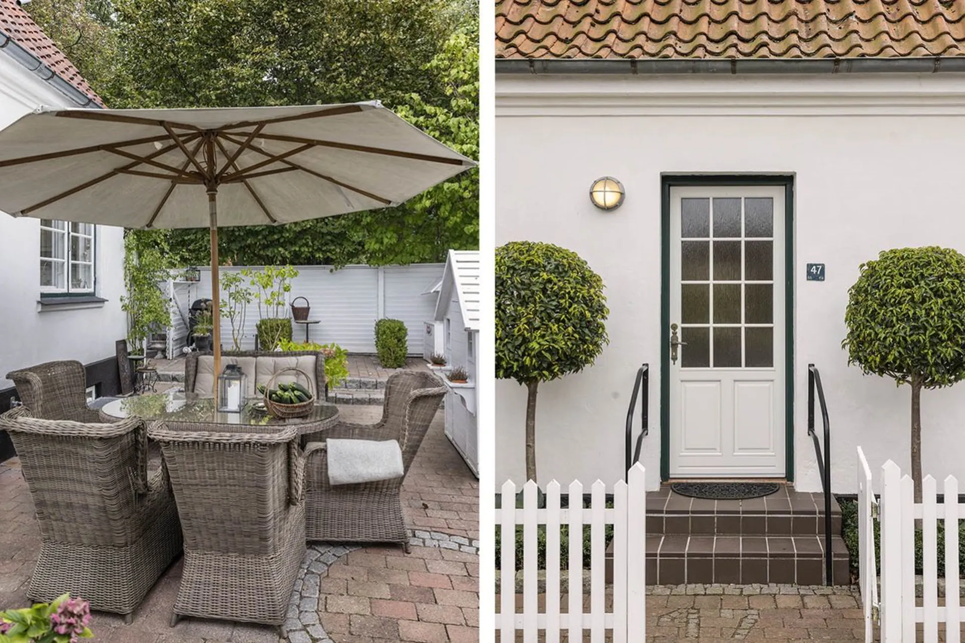 Den omkringliggende gårdhave er orienteret mod syd og har et meget europæisk romantisk udtryk, hvor smukke historiske roser og afgrænsede bede skaber en enorm dybde i haverummet.