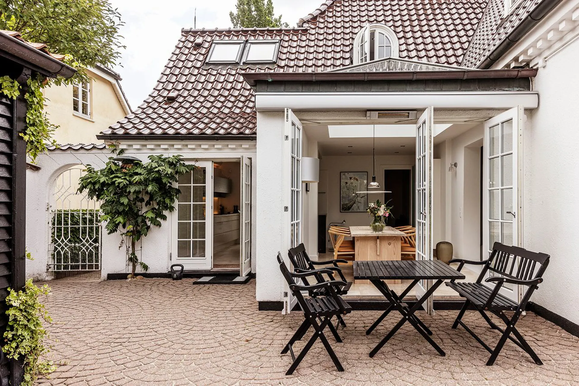 Haven er solbeskinnet og i læ – med åbne terrasseområder og lukkede kroge under den gamle beplantning. Et eventyr i sig selv, hvor man kan forsvinde lidt væk i sine egne tanker, og hvor der er plads til familiens store fester. Og så er der tilmed et skønt anneks, der giver ekstra værelser og disponible rum til huset. På den måde er denne have mere end et rum og mere end en traditionel have – den er lige så vidunderlig som huset.