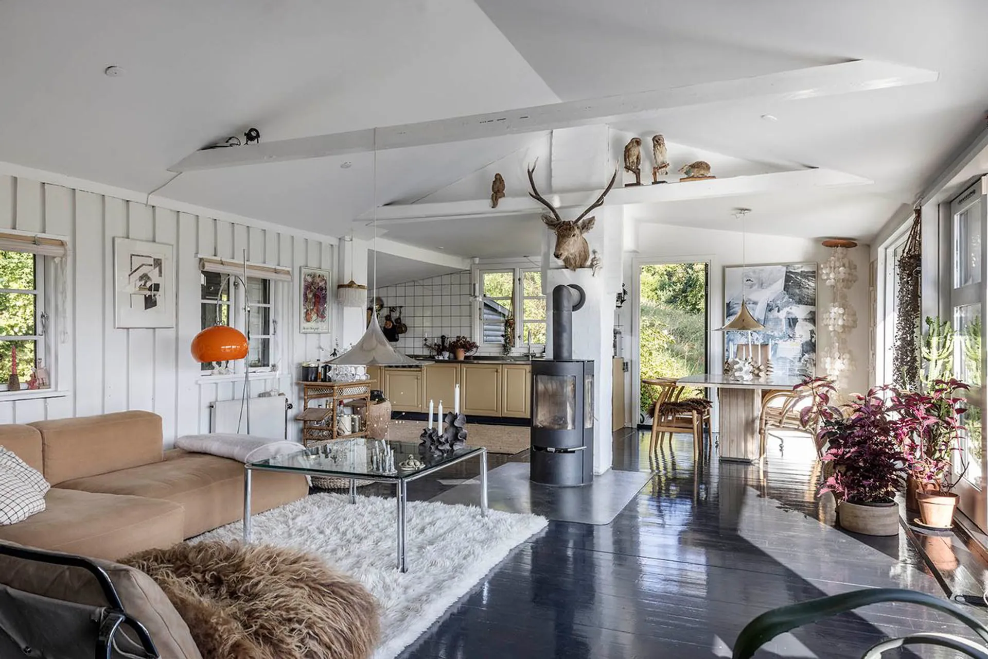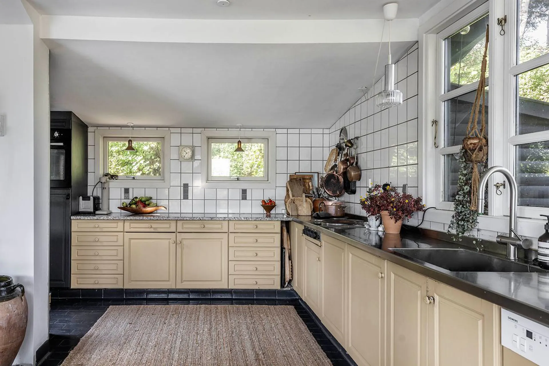 Store vinduespartier orienteret mod naturen, hyggelige stuer og opholdsrum med udgang til omkringliggende terrasseområder, hyggekroge og hjørner med læ i et fuldendt og velkomponeret virvar. Dette sted har den særlige kvalitet, at man har lyst til at sætte sig alle steder. Fra hver en krog er der de skønneste kig – både ind i huset og ud mod den omkringliggende natur. Og det er noget ganske særligt, for hvor mange steder har man det sådan?
