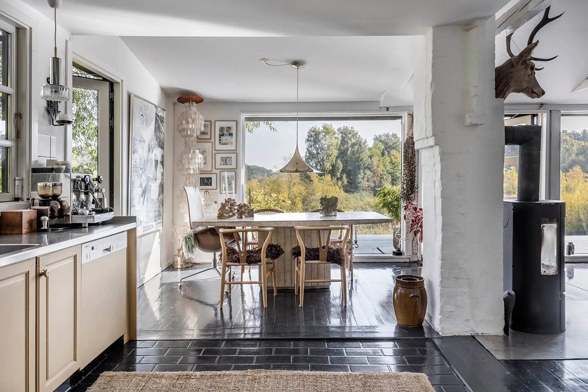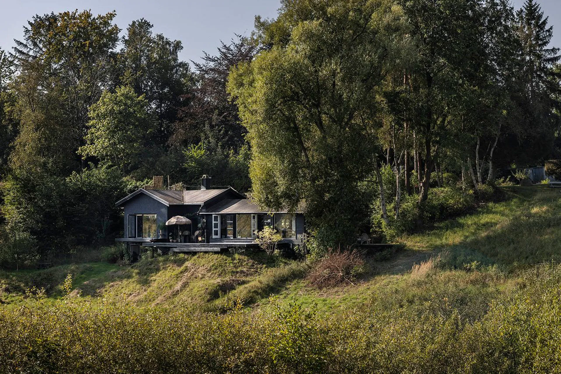 Store vinduespartier orienteret mod naturen, hyggelige stuer og opholdsrum med udgang til omkringliggende terrasseområder, hyggekroge og hjørner med læ i et fuldendt og velkomponeret virvar. Dette sted har den særlige kvalitet, at man har lyst til at sætte sig alle steder. Fra hver en krog er der de skønneste kig – både ind i huset og ud mod den omkringliggende natur. Og det er noget ganske særligt, for hvor mange steder har man det sådan?