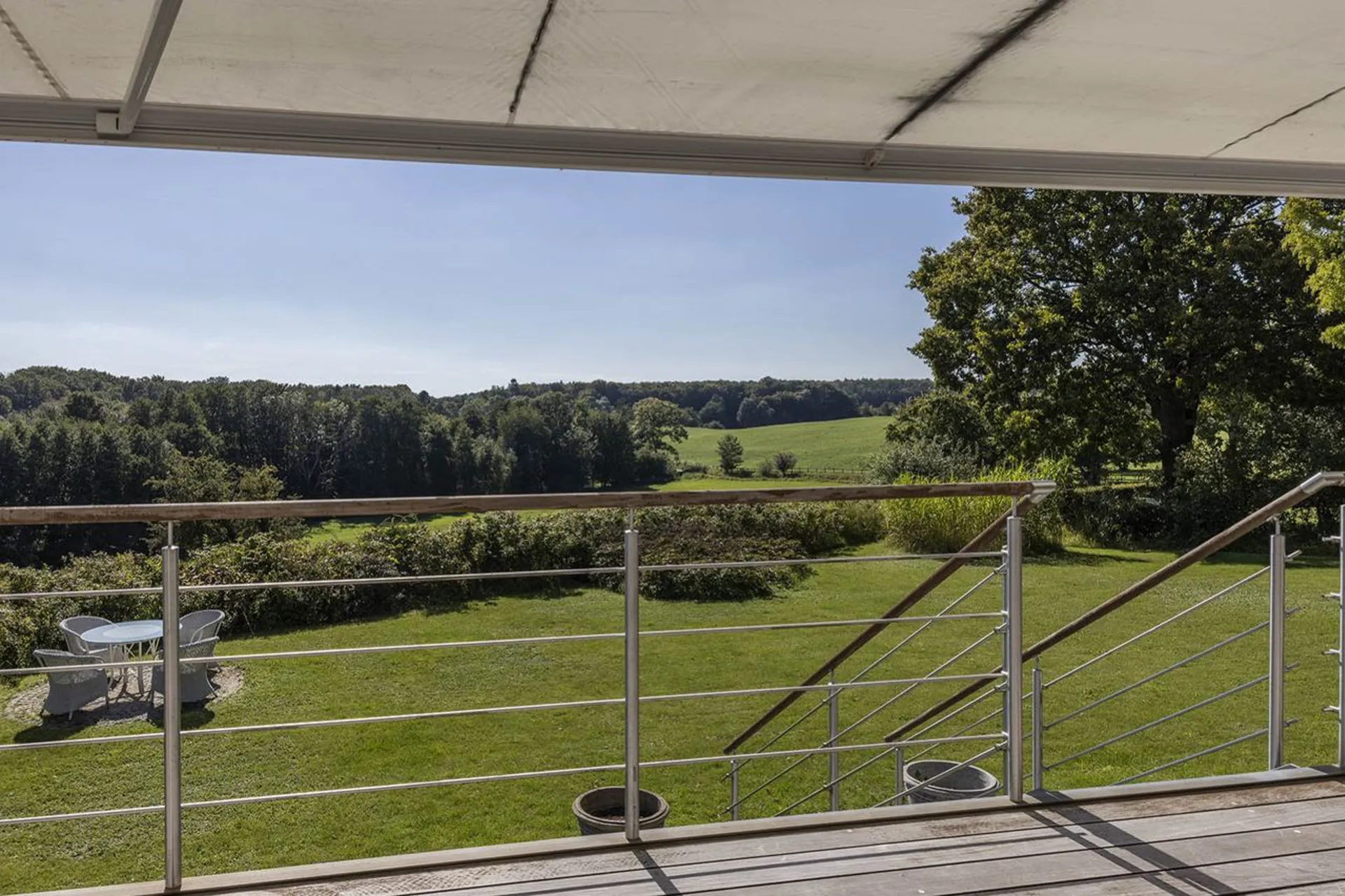 Indretning: Entré/hall til stort alrum; opholdsstue, spisestue og smagfuldt indrettet køkken i ét, hvorfra der er udgang til den skønneste udestue med udsigt over Gedevaserne og et smukt skovbælte som baggrundskulisse. Sideliggende afdeling med forstue, walk-in og stort soveværelse med adgang til luksuriøst indrettet badeværelse med både kar og brus. Fra både soveværelse og forstue/muligt soveværelse er der udgang til en stor sydvendt terrasse, der vender mod haven.