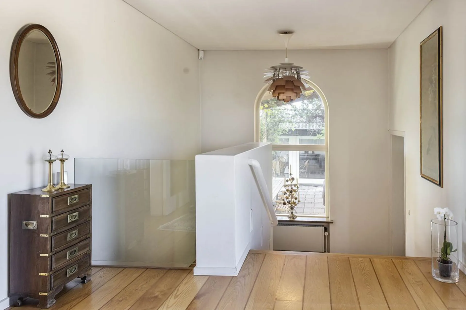 Huset blev opført i 1956, vel nok midt i en af de mest interessante arkitekturhistoriske epoker, og det er lykkedes at skabe en skøn, balanceret fornemmelse af flydende overgange mellem inde- og uderum. Boligens forskudte niveauer, mange terrasser og fabelagtige lysindfald fra alle verdenshjørner skaber en spektakulær bolig ud over det sædvanlige.