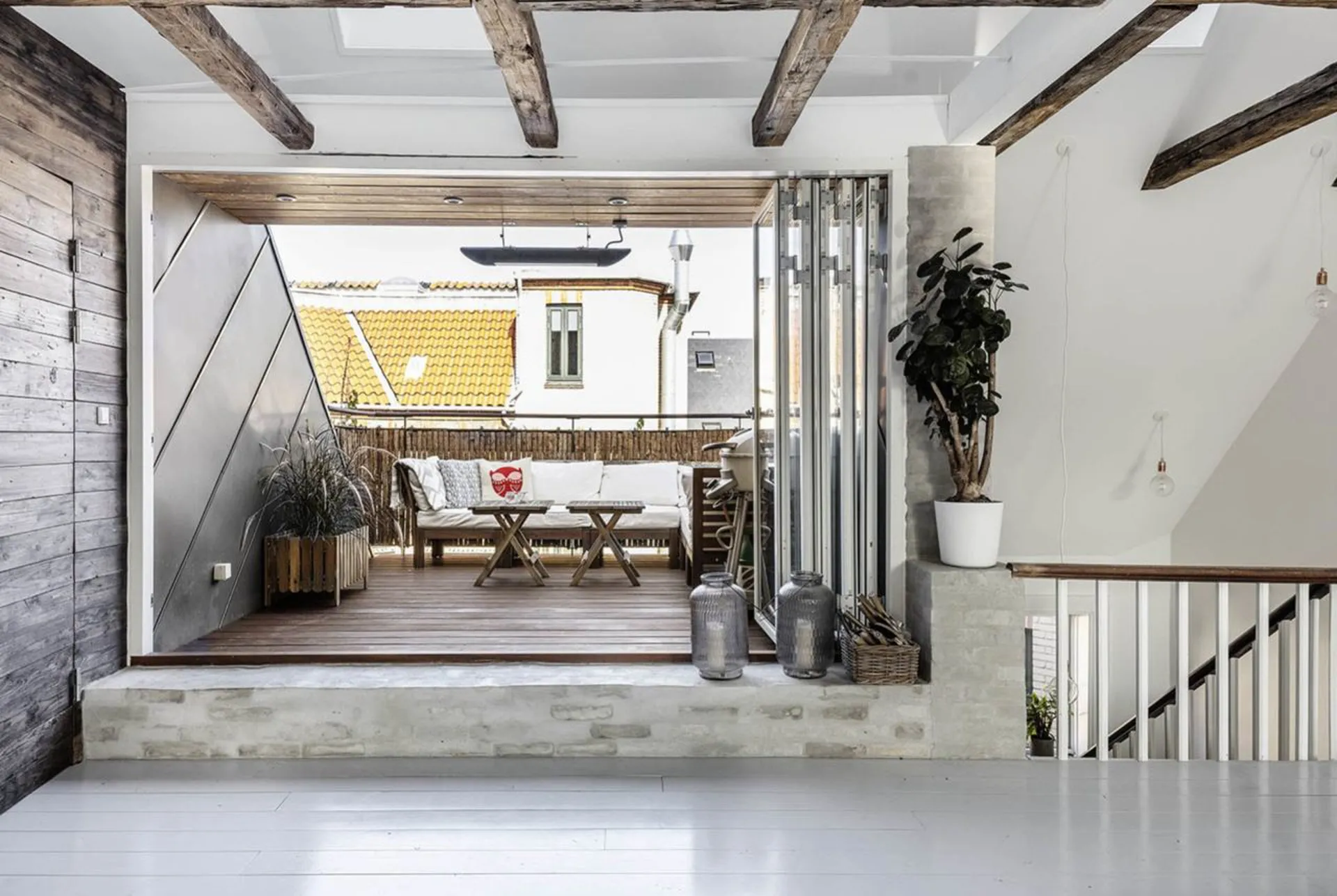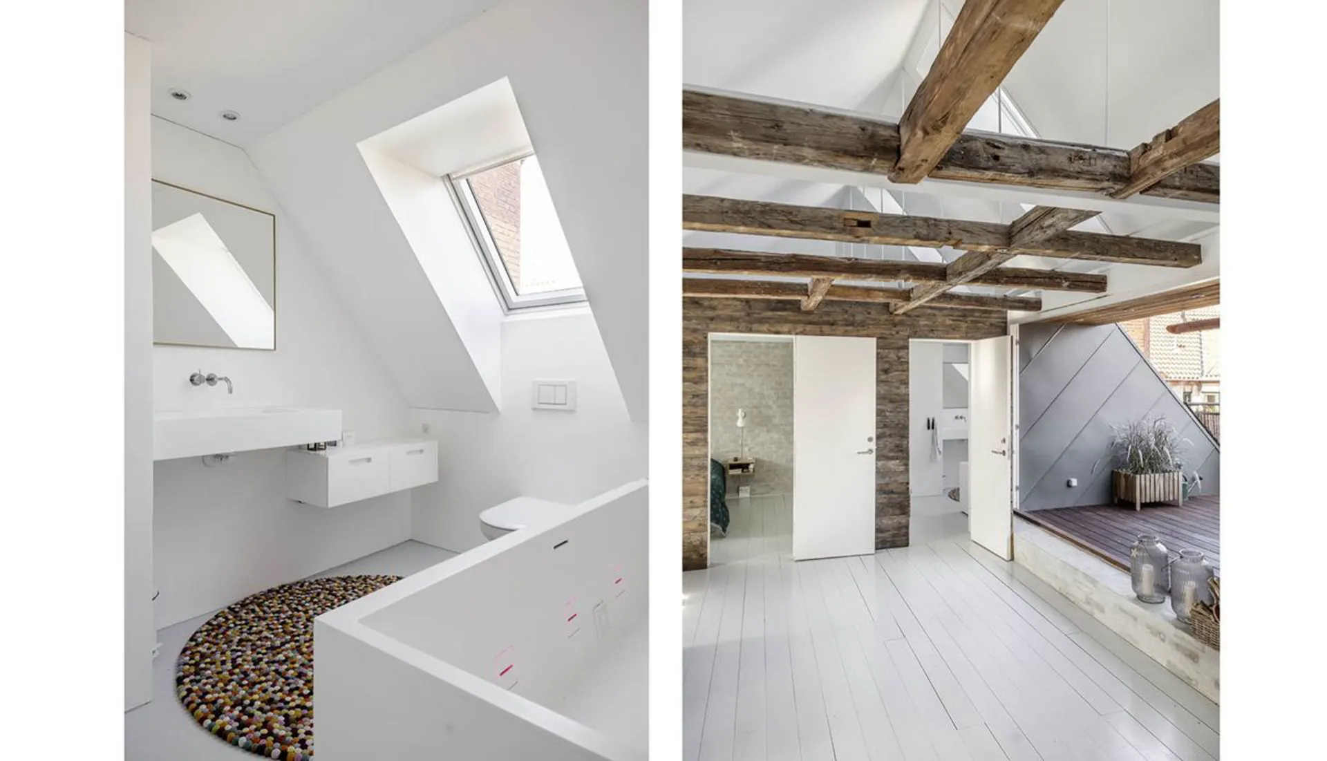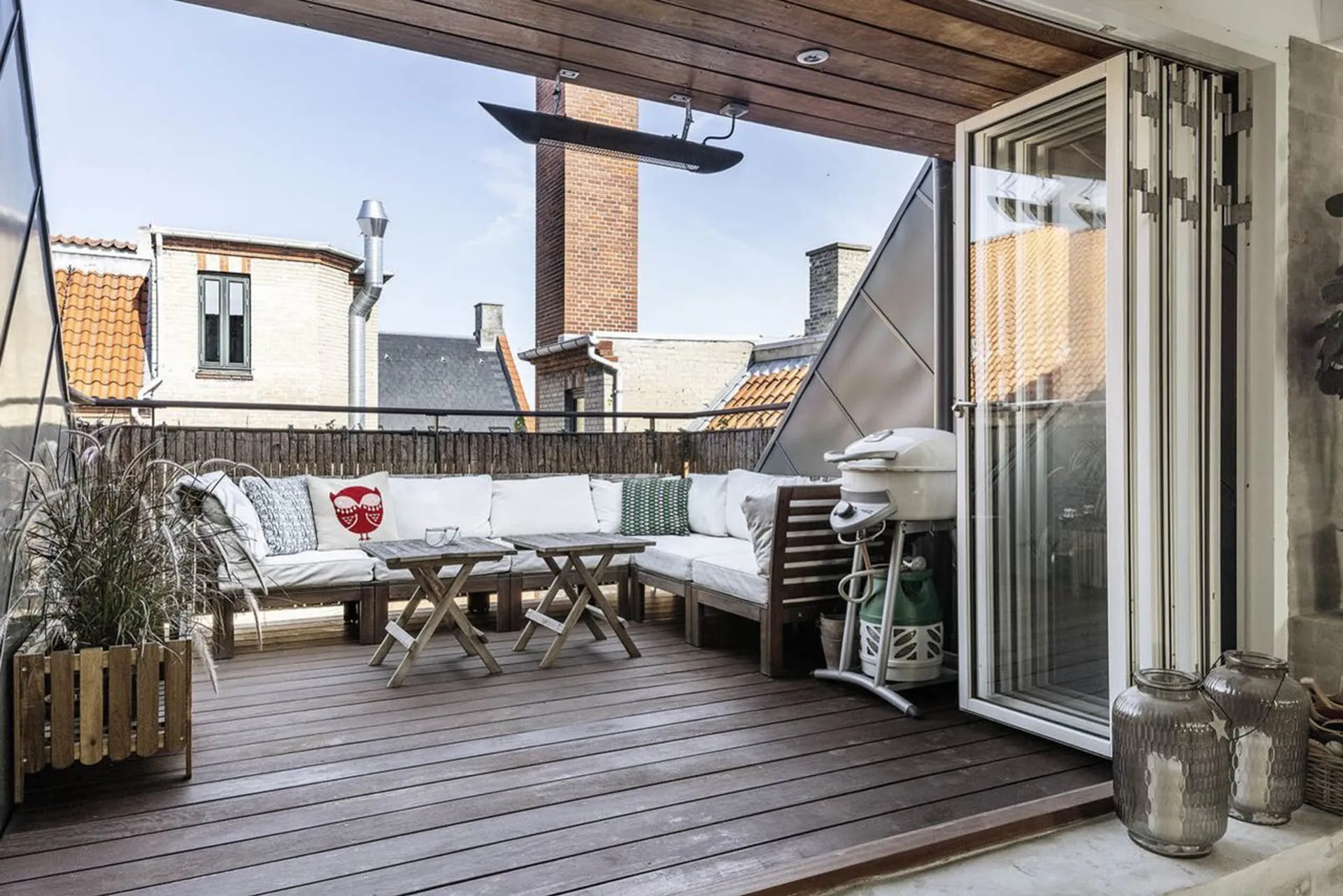 To etagers penthouselejlighed på 153 m2 (BBR) med altan, privat tagterrasse og adgang til enormt gårdanlæg. I læ af tagrygge, frit eksponeret for solen og med udsyn så lang øjet rækker mod luft og himmel lægger denne skønne bolig sig, som et skjul i et af Nørrebros bedste kvarterer. Ved udmundingen af Stefansgade, midt i hjertet af byens puls, og samtidig trukket væk fra al støj er det lykkedes at skabe et hjem helt ud over det sædvanlige. En sammensmeltning af den klassiske Nørrebrolejlighed og storslåethed med fritliggende bjælker, udearealer og loft til kip. Indretning: Entré til lejlighedens minihall, hvorfra ejendommens oprindelige trappeløb åbner op til den øverste etage. Køkkenalrum med udgang til vestvendt altan og to stuer en suite – oplagt at fordele som stue og soveværelse, hvis dette behov er der. Desuden smagfuldt indrettet badeværelse med brus. Lejlighedens øverste etage er indrettet med stort alrum med fritliggende bjælker, tagvinduer og direkte udgang til solbeskinnet tagterrasse. Derudover soveværelse med walk-in og badeværelse med kar med indbygget spa og lysterapi. En suveræn lejlighed til det pladskrævende par eller familie med et barn. En suveræn mulighed for at bo midt i byens livlige liv, og samtidig være hersker over sit eget liv – og måske det nærmeste man kommer følelsen af at bo i eget hus i egen lejlighed.