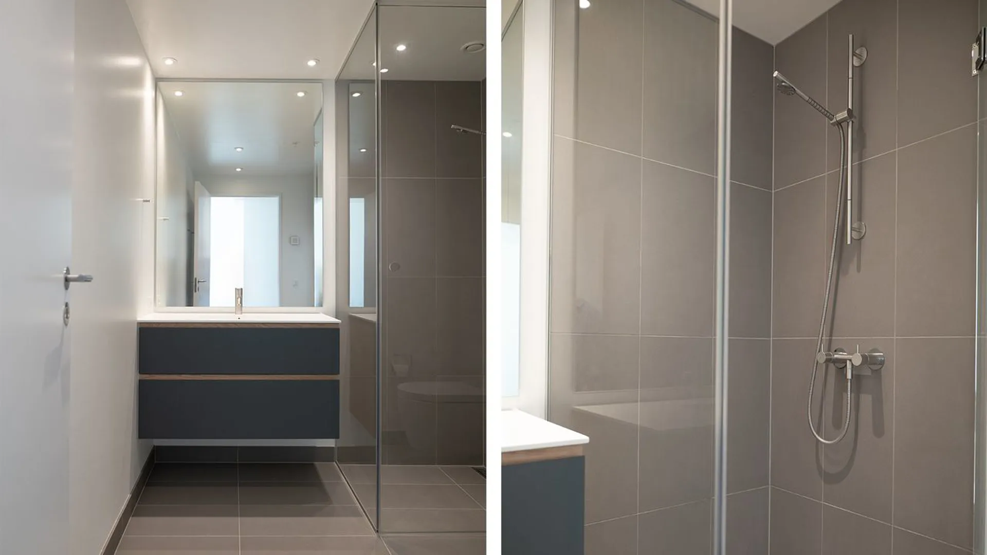 Bygningen danner rammen om næsten 400 lejligheder fordelt på tre bygninger rundt om et atrium, som skaber et skønt gårdanlæg. I stueetagen er der fællesrum, saunafaciliteter, badehus med udgang til badeplatform, badebro og depotfaciliteter. I ejendommens underetage er der privat parkeringskælder.