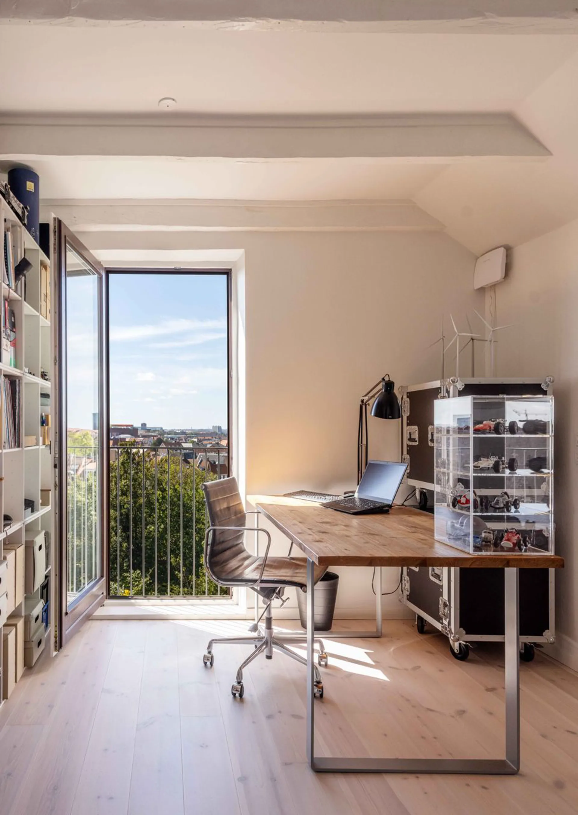 De to altaner er noget helt unikt. Fra køkkenet træder man ud på den vestvendte altan, og fra alrummet den sydvestvendte. Her får man noget nær et panoramaview fra fjerde sal og følelsen af at bo i et lille hus på toppen af storbyen. Udsigten er magisk til det meste af byen og både nye og gamle tårne. På altanerne er der plads til både gæster til middag, blomster og plantekasser.
