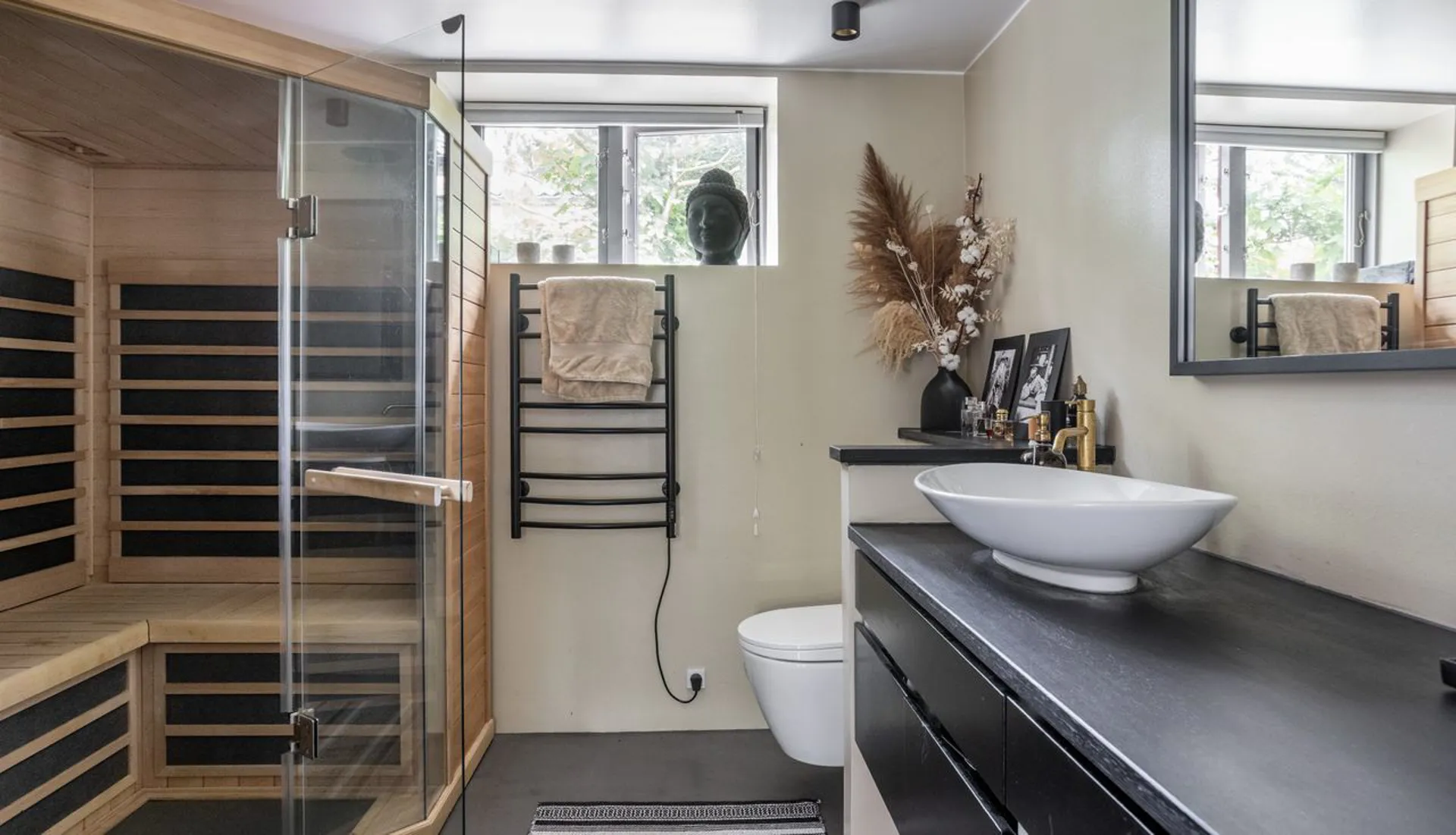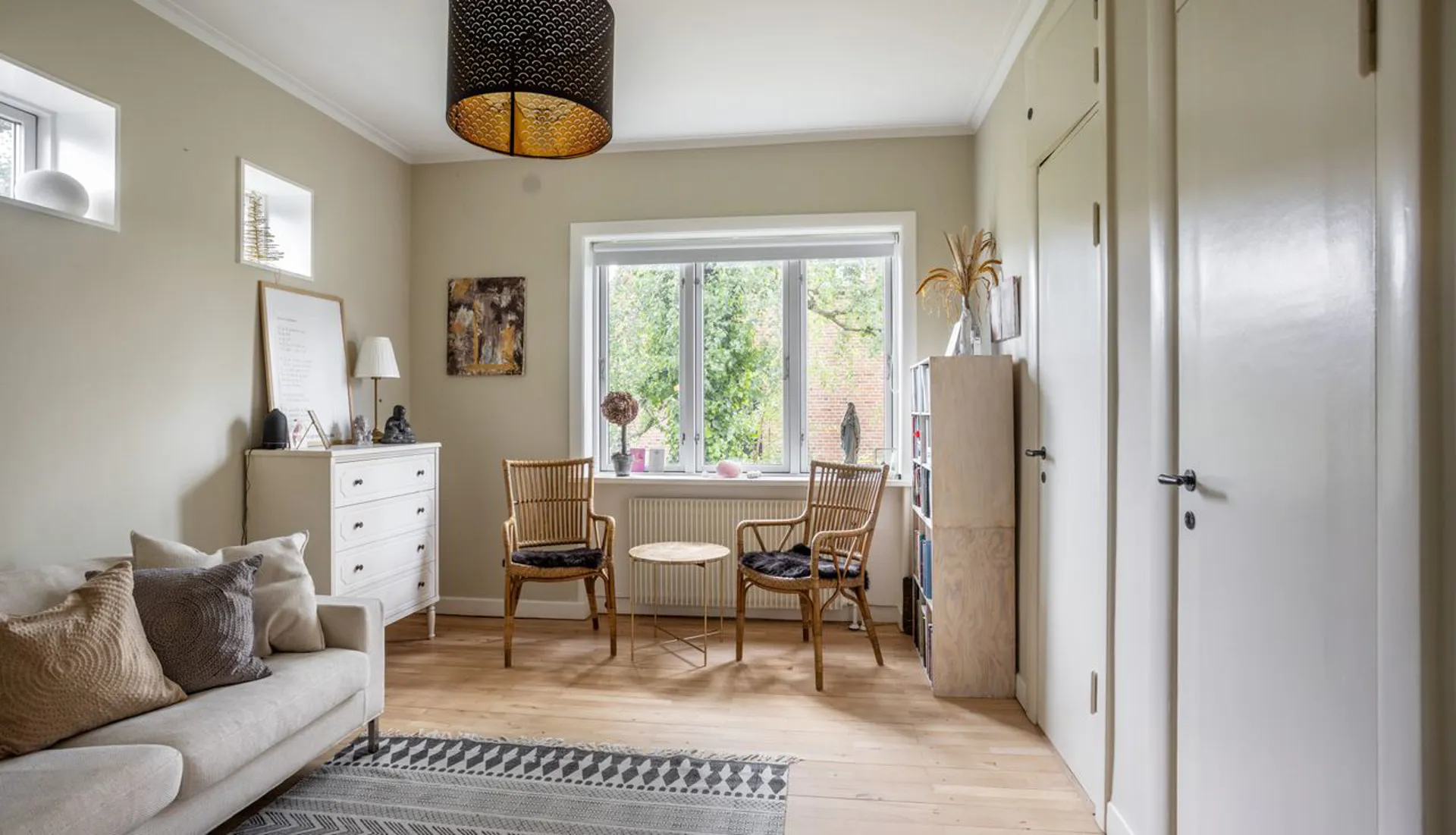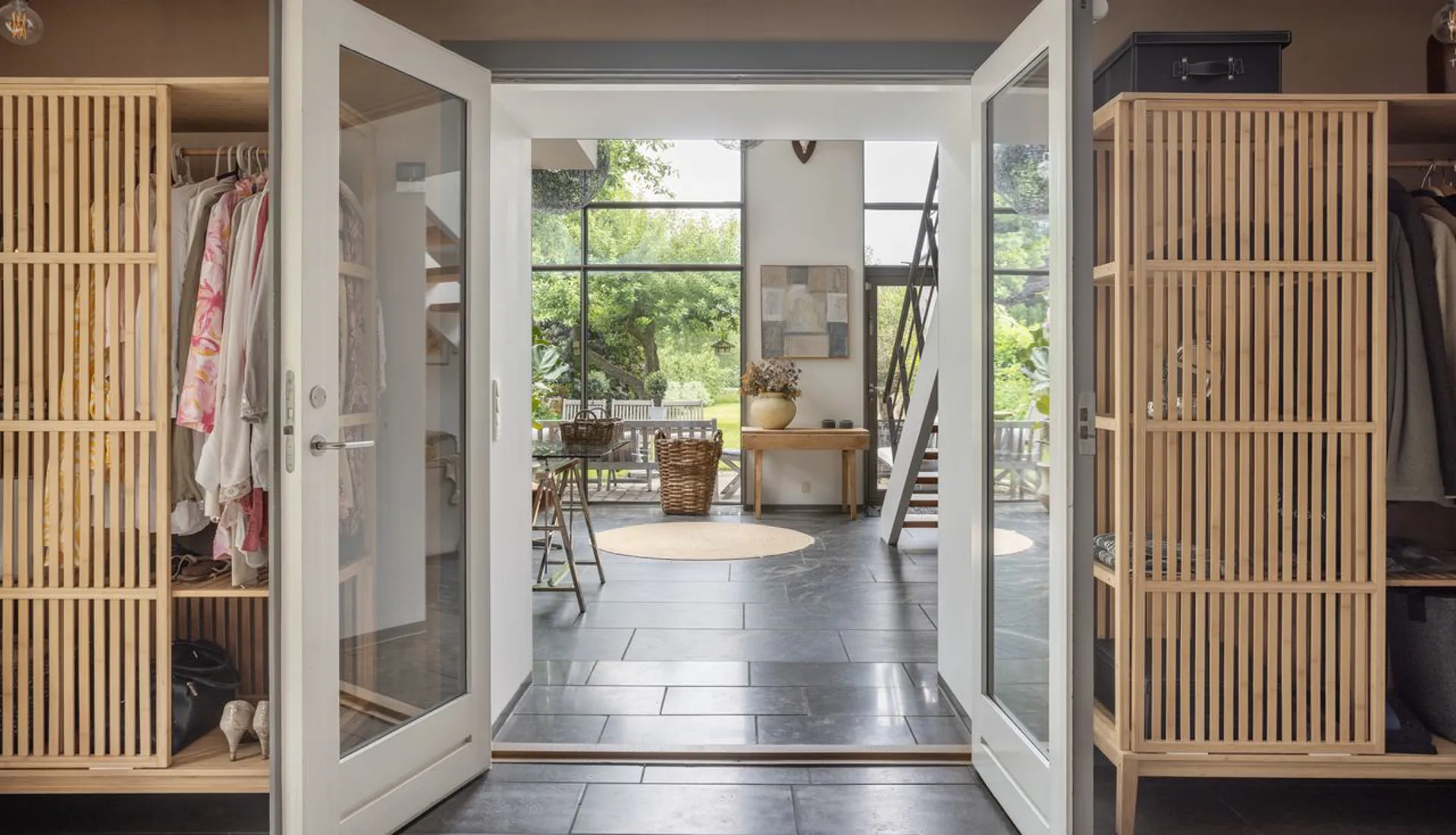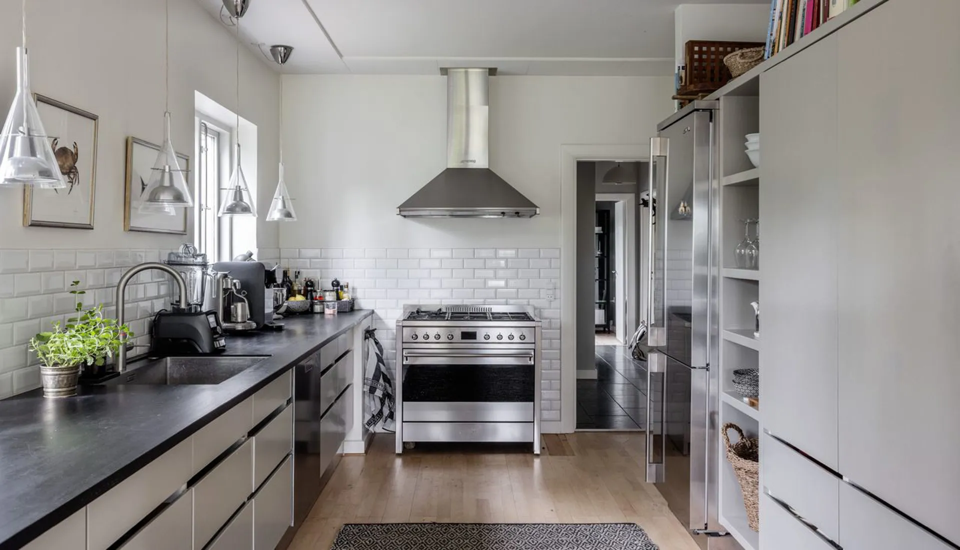 Køkkenet er gedigent og moderne, og den rummelige opholdsstue har en muret pejs. Gulvet i stueetagen er massive plankegulve, mens kælderetagen har et flot stengulv med store klinker. Og sådan er det hele vejen rundt i denne ekstraordinære bolig. Faktisk er huset gennemgående udtryk for god smag med et væld af ikke tilfældigt valgte kvalitetsløsninger. Alt virker i balance - som om, at det ikke kunne være anderledes.