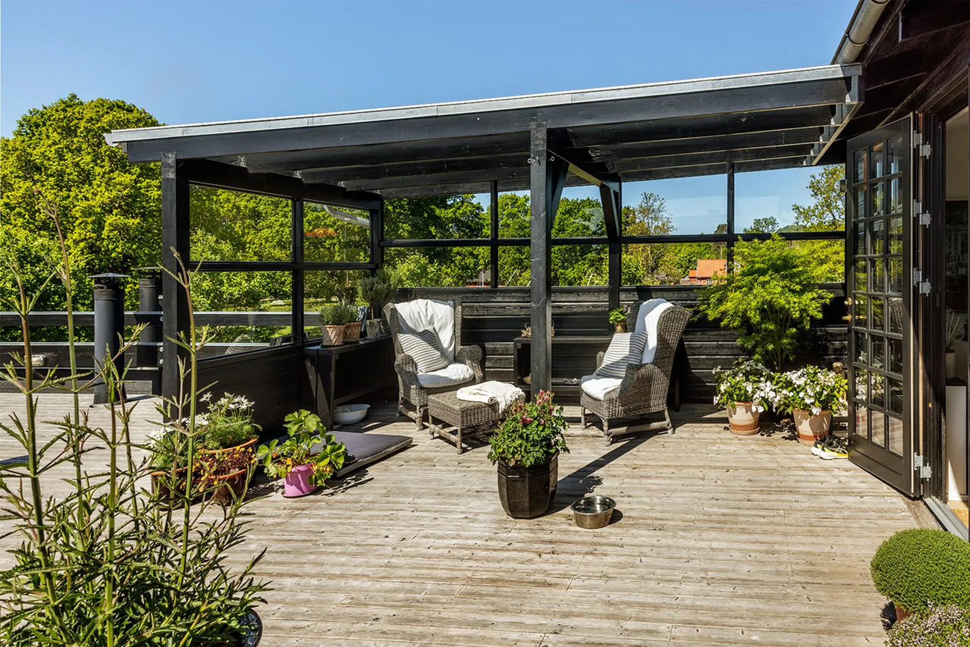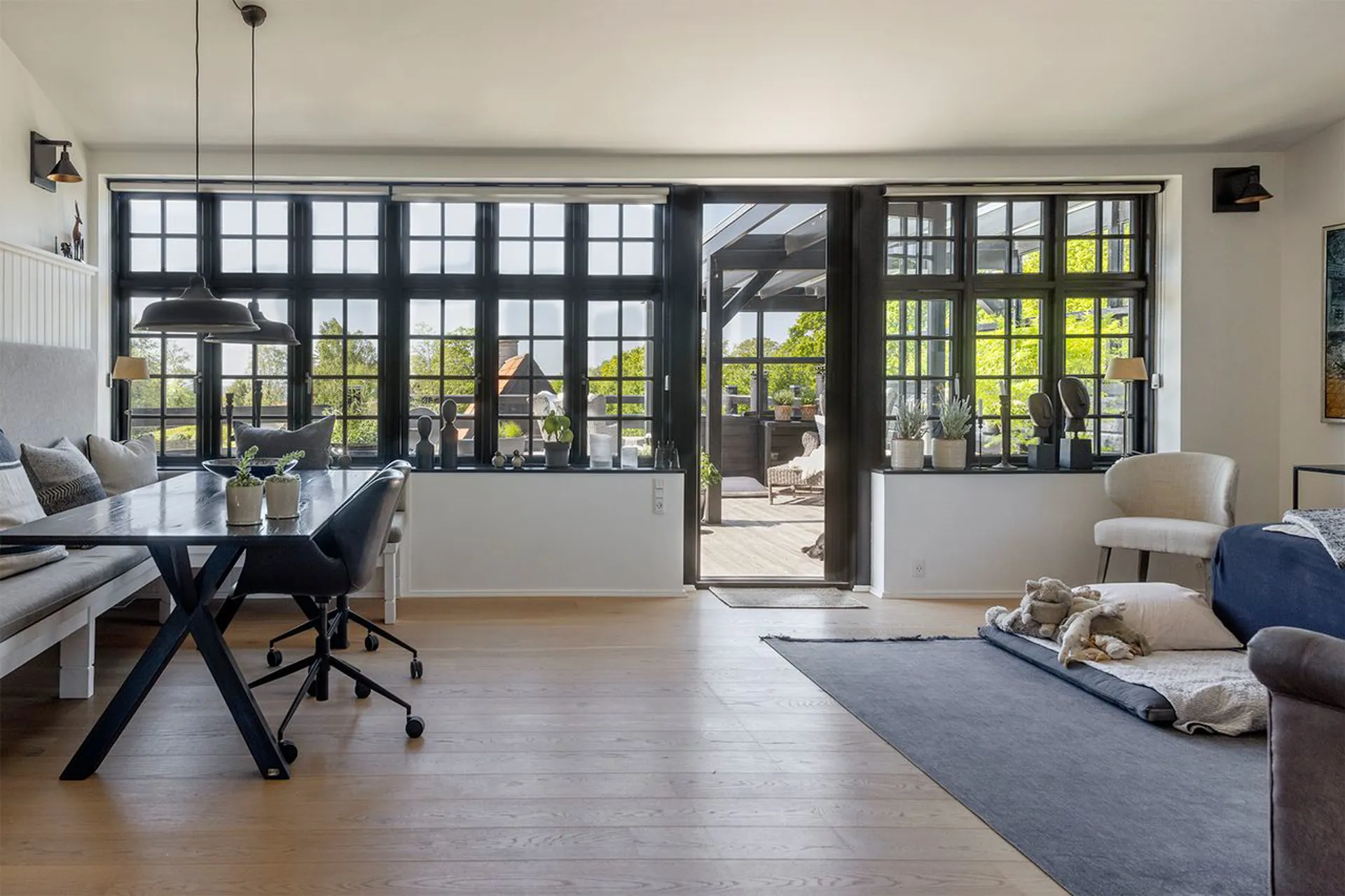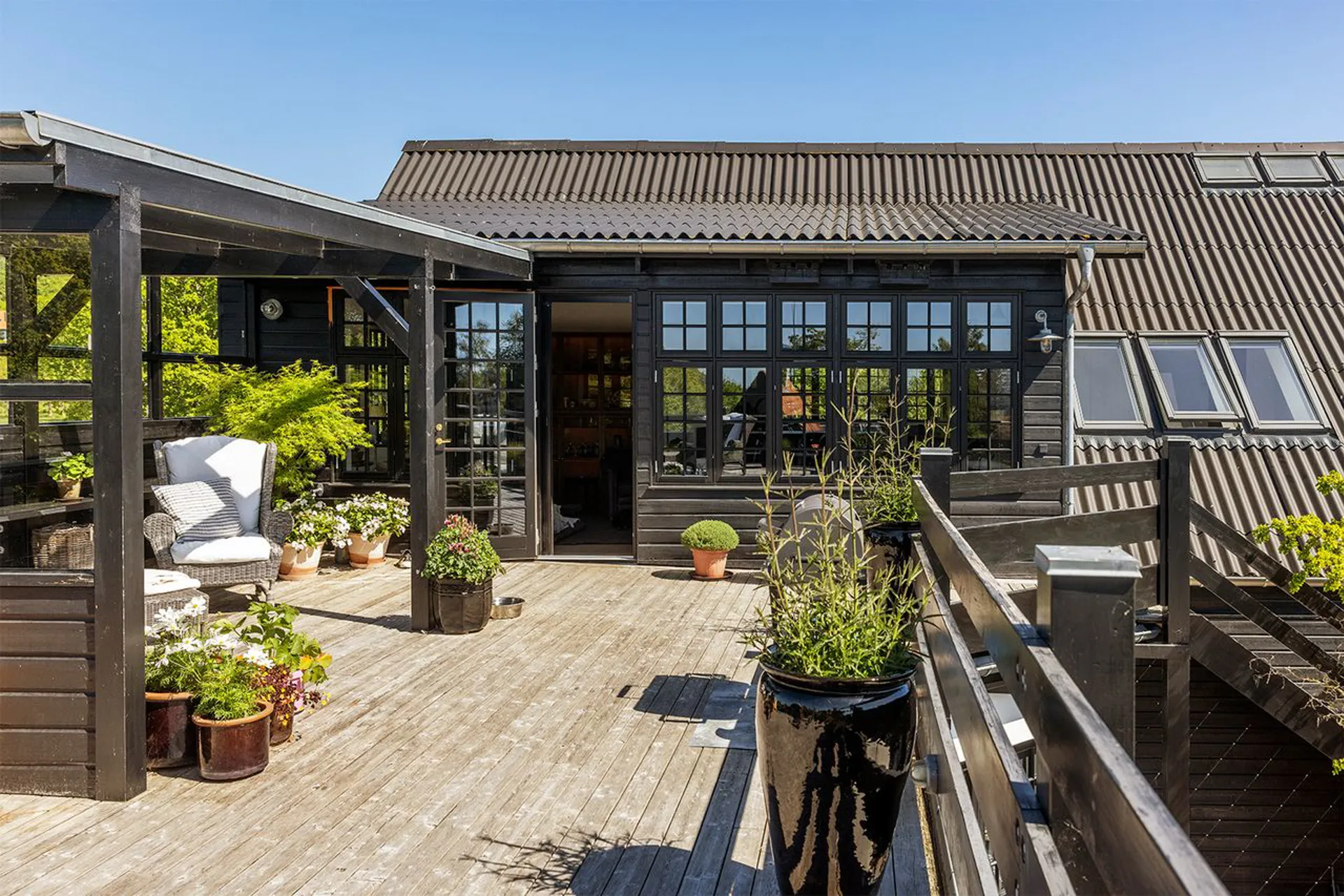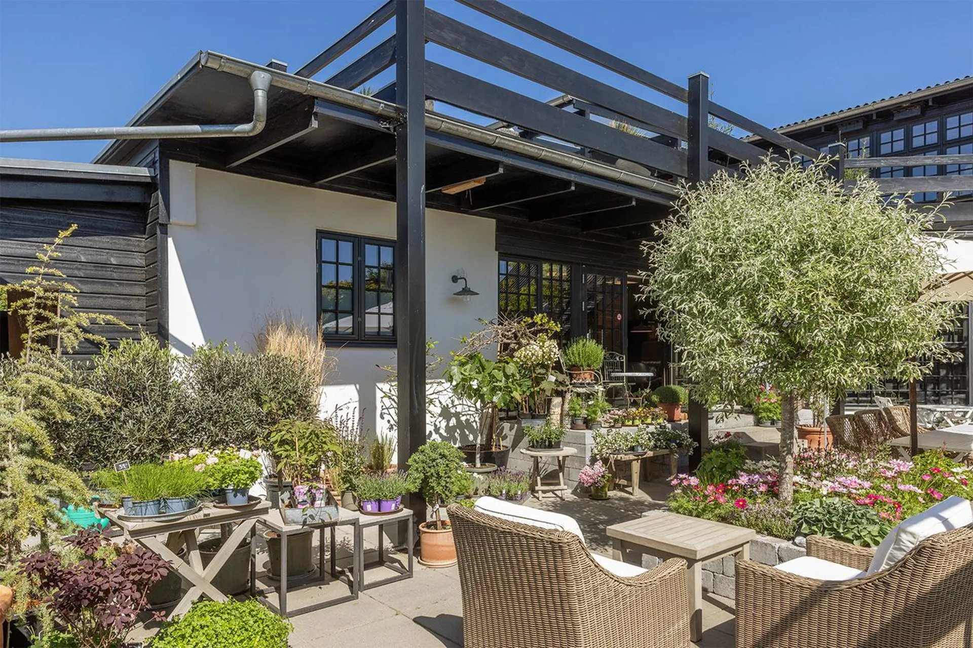 Stedets fine kombination af erhverv og bolig tillader både at leve og drømme under samme tag. Sådan som de nuværende ejere har gjort det i flere år, hvor de har drevet en skøn forretning og café med en vidunderlig gårdhave i stueplan og haft familiens hjem i bygningens 1. sal med udgang til et enormt terrasseområde. Et uderum, der inviterer til både store fester og indfrielse af familiens forskellige behov hen sæsonen.