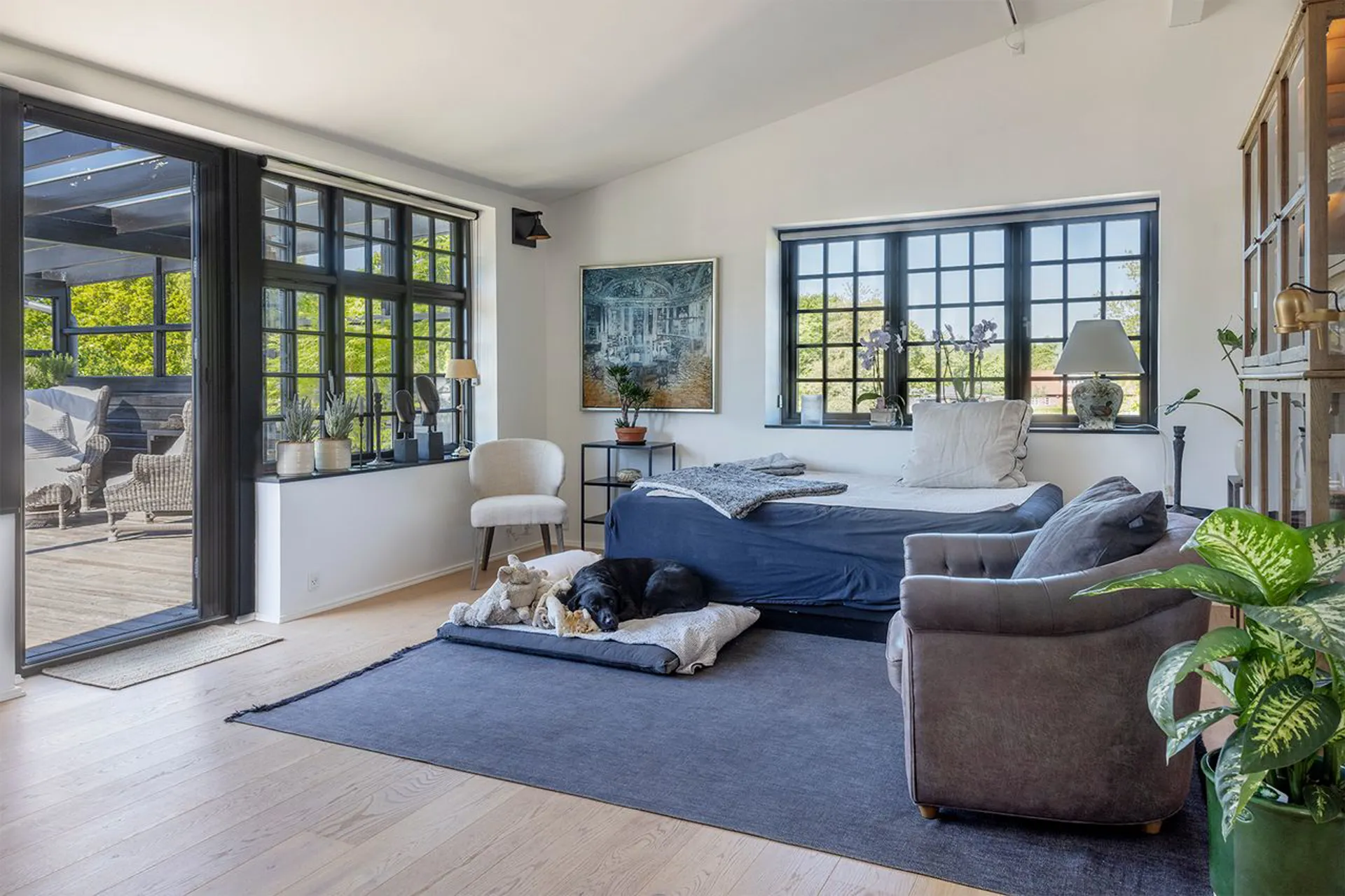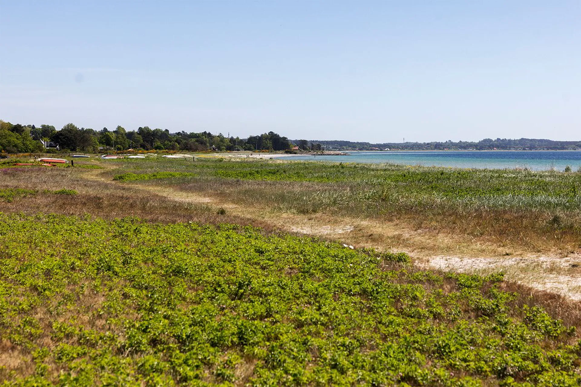 Og beliggenheden – hvor skal man begynde … Fra terrassen kan man se vandet der formgiver Ebeltoft Vig, og lige der ved siden af ligger Molskroen og stråler som et af områdets stjerneskud. Fik ikke nævnt at det er den smukke Femmøller Strand, som man har lide nede foran huset, og at hele området omkring ejendommen er spækket til med naturskønne omgivelser, der bugter sig op og ned i et landskab formgivet af istidens brydninger. Ikke mange vil benægte, at disse omgivelser er nogle af de smukkeste i Kongeriget Danmark. Derfor også så efterspurgt og så elsket. Og derfor også et ganske oplagt sted at sætte fra havn, når drømmene skal podes med eventyrenes livskraft.