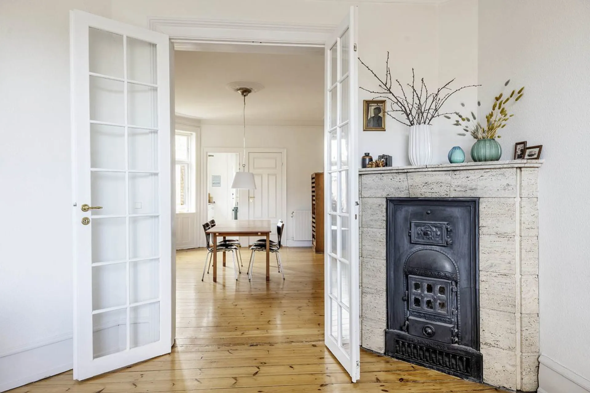 En ideel lejlighed for det pladskrævende par, der ønsker at bo på samme tid prominent, klassisk og moderne lige dér, hvor det hele emmer af god energi, historie og menneskeligt nærvær. Tæt på Frederiksberg Have og Søndermarken. Tæt på Værnedamsvejs hyggelige caféer og restauranter, tæt på Vesterbros mangfoldighed, Gammel Kongevejs butiksmiljø og alle de fine kvarterer herimellem.