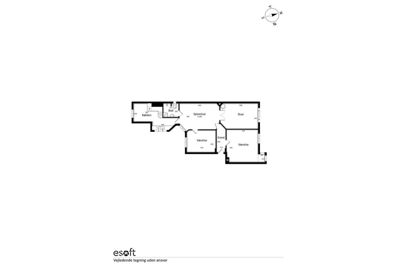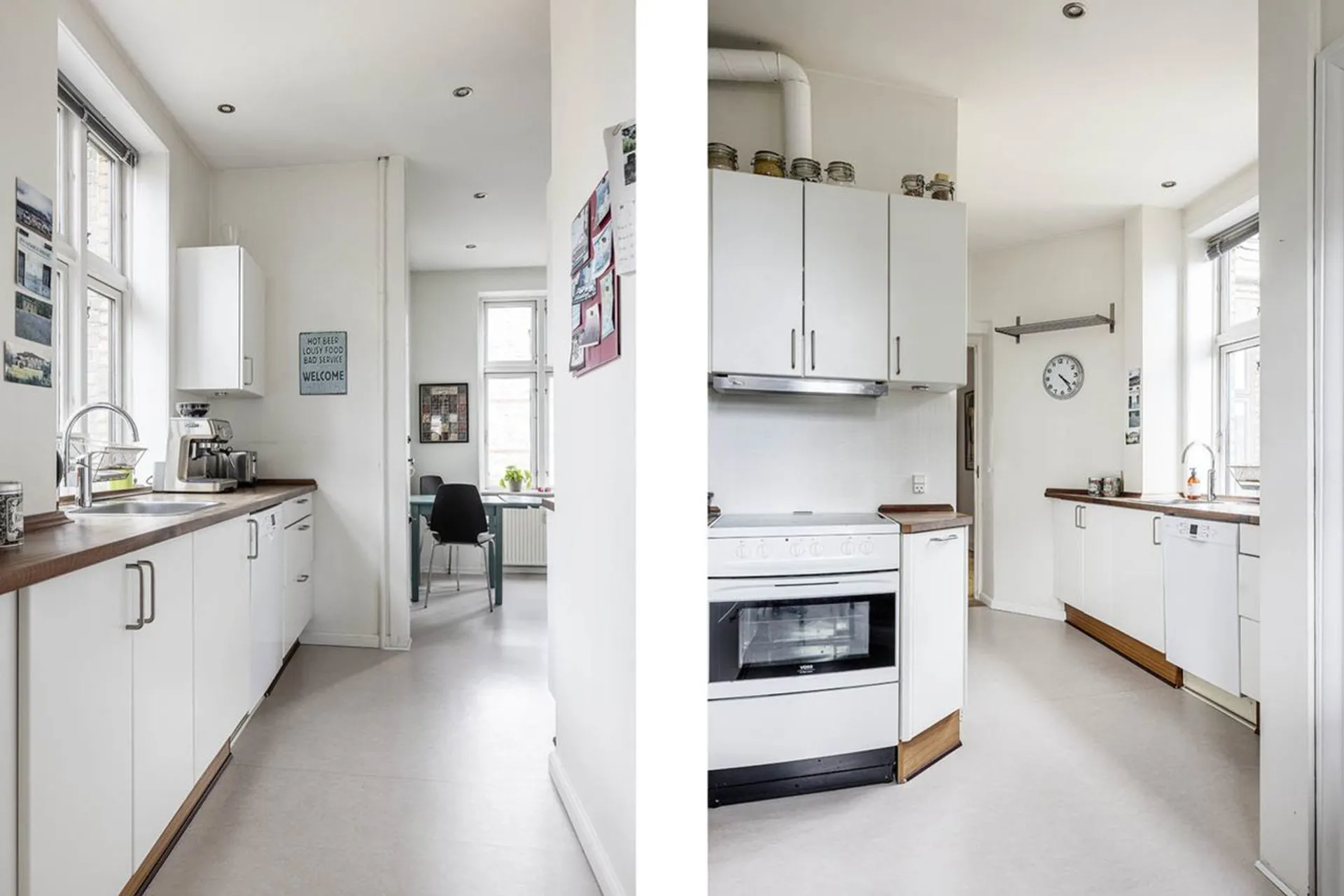 Indretning: Entré til fordelingsgang, hvorfra man kommer til to stuer, som oprindeligt har ligget en suite ud mod Frederiksberg Allé. Stor opholdsstue, sydvendt soveværelse, badeværelse med brus og vaskefaciliteter og hyggeligt indrettet køkken med spiseplads orienteret mod syd og med udsigt til det skønne gårdmiljø.