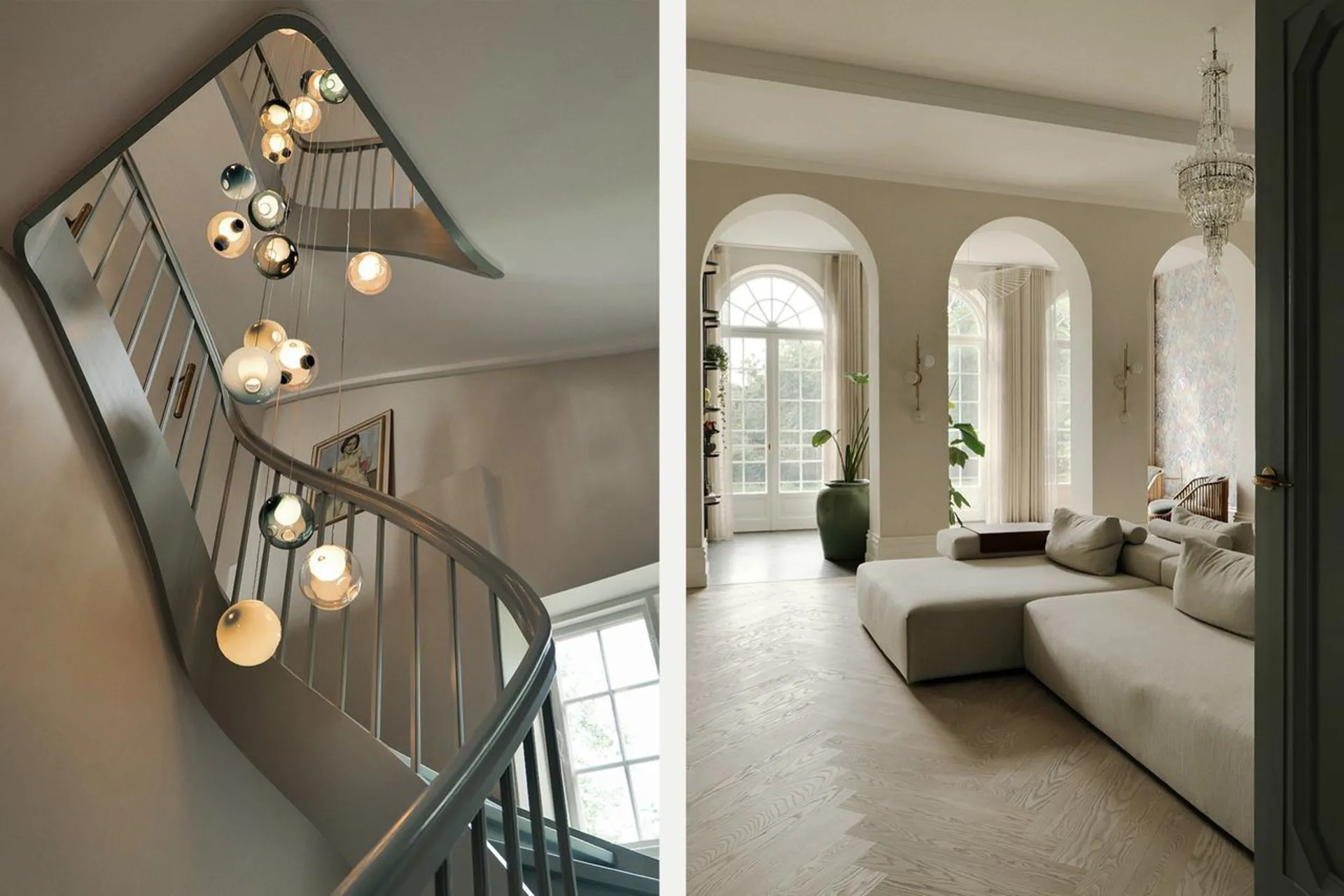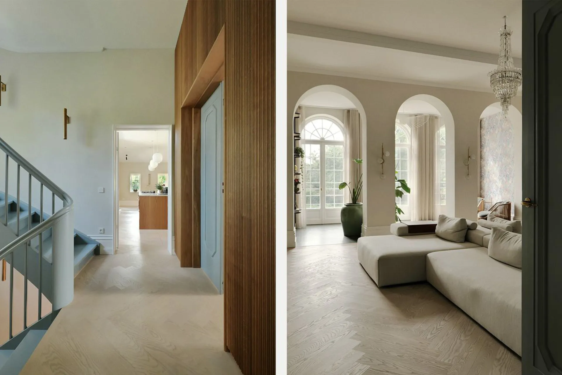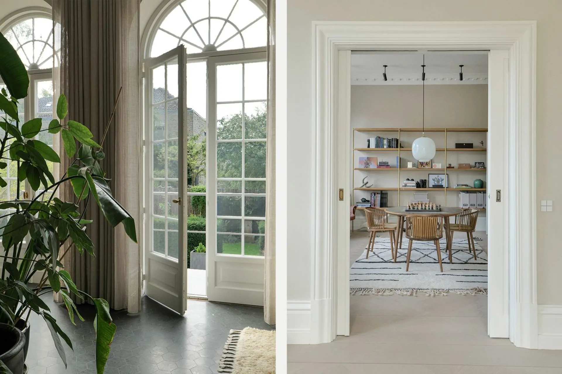 Sublimt i enhver detalje og en lektion i, hvordan man lykkes med at skabe et naturligt flow igennem en stor historisk villa uden at ofre bygningens oprindelige idé. Det ene rum inviterer til det næste, og fra hvert et hjørne og hvert et opholdssted i huset er der skønne lysindfald og kig igennem husets rumligheder.