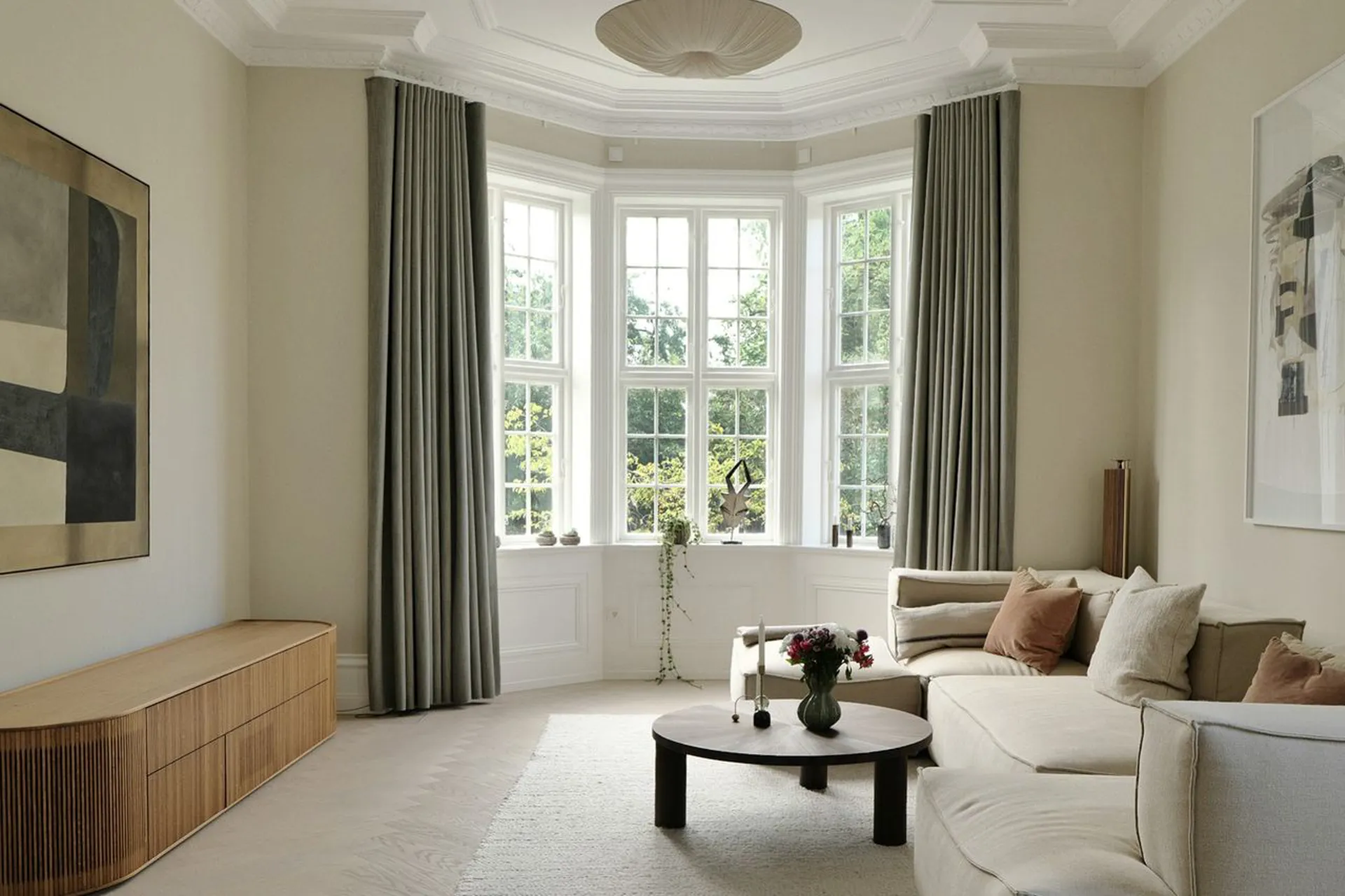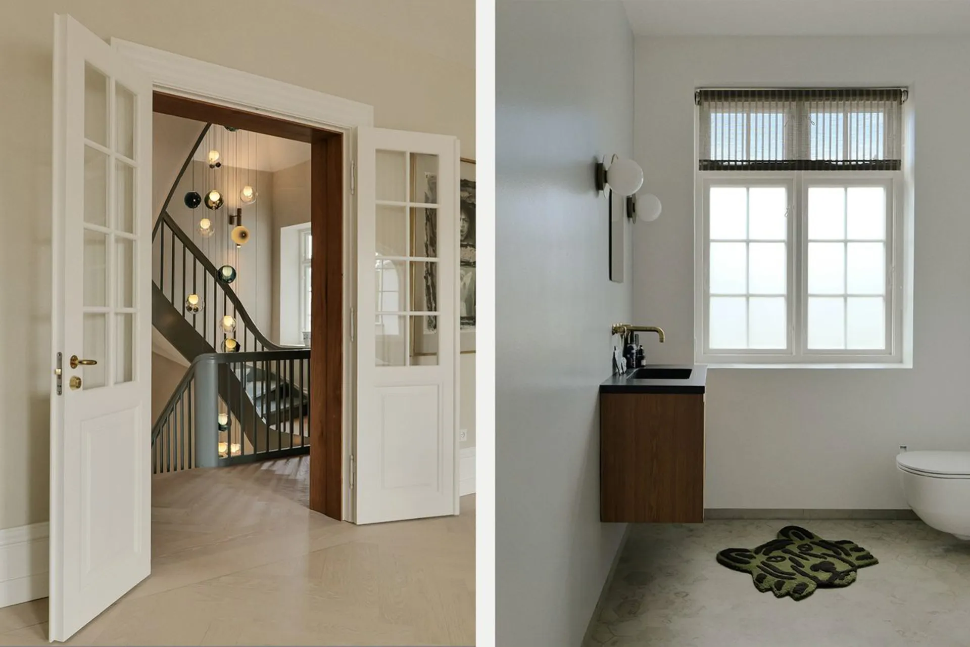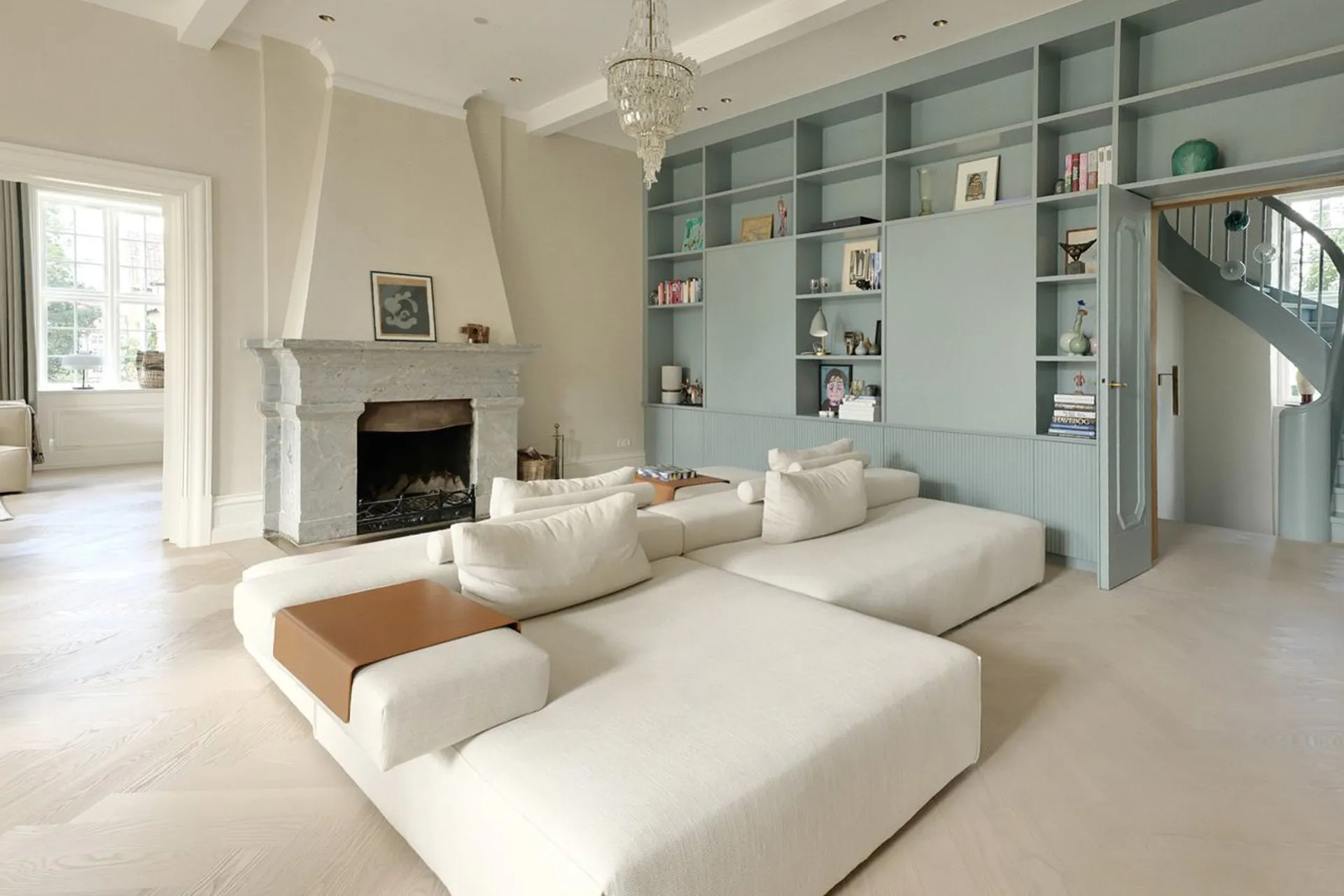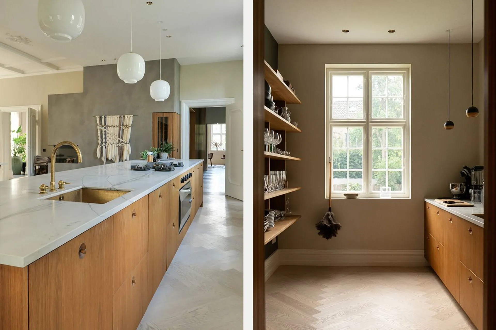 Sublimt i enhver detalje og en lektion i, hvordan man lykkes med at skabe et naturligt flow igennem en stor historisk villa uden at ofre bygningens oprindelige idé. Det ene rum inviterer til det næste, og fra hvert et hjørne og hvert et opholdssted i huset er der skønne lysindfald og kig igennem husets rumligheder.
