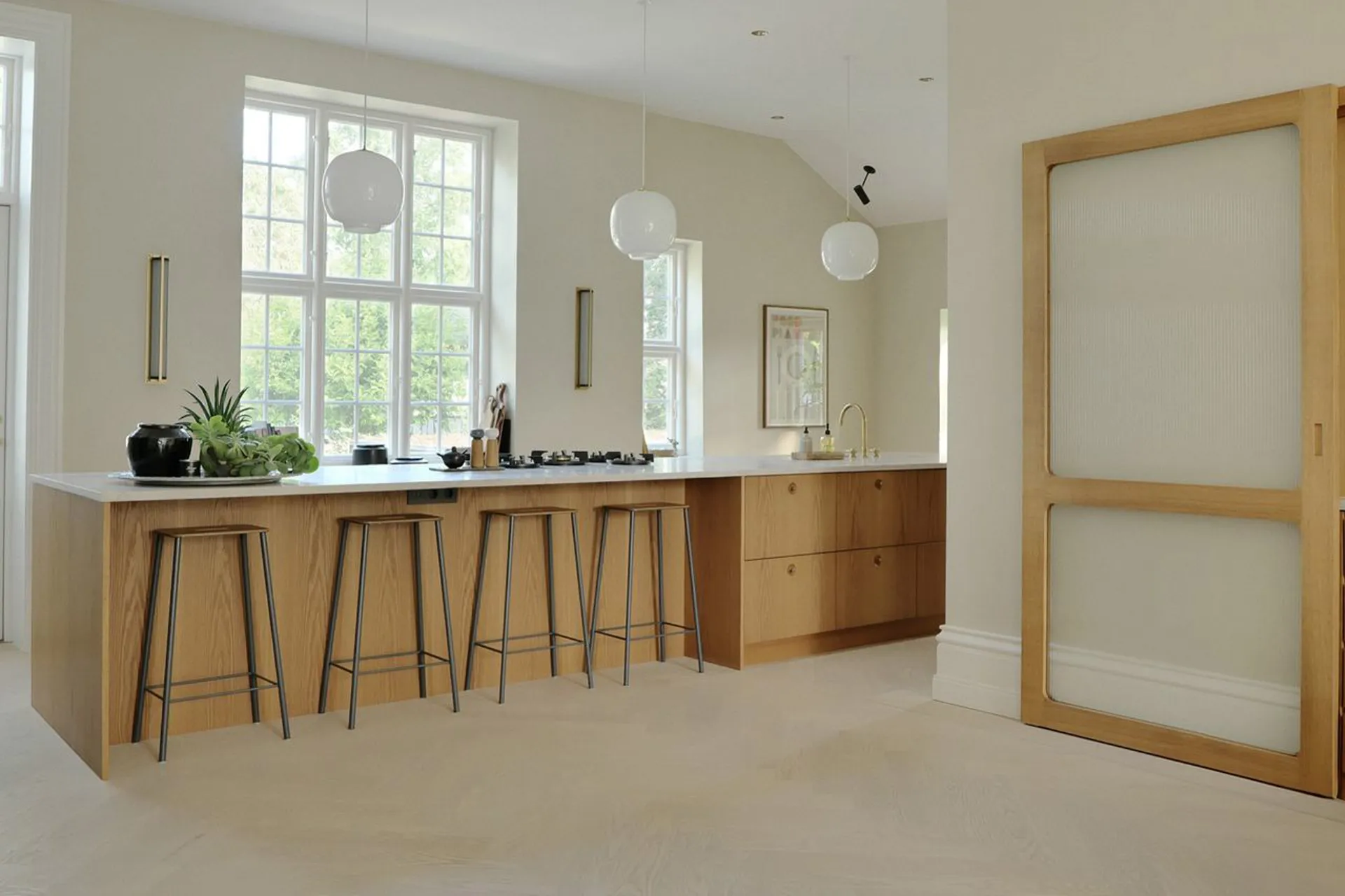 Sublimt i enhver detalje og en lektion i, hvordan man lykkes med at skabe et naturligt flow igennem en stor historisk villa uden at ofre bygningens oprindelige idé. Det ene rum inviterer til det næste, og fra hvert et hjørne og hvert et opholdssted i huset er der skønne lysindfald og kig igennem husets rumligheder.