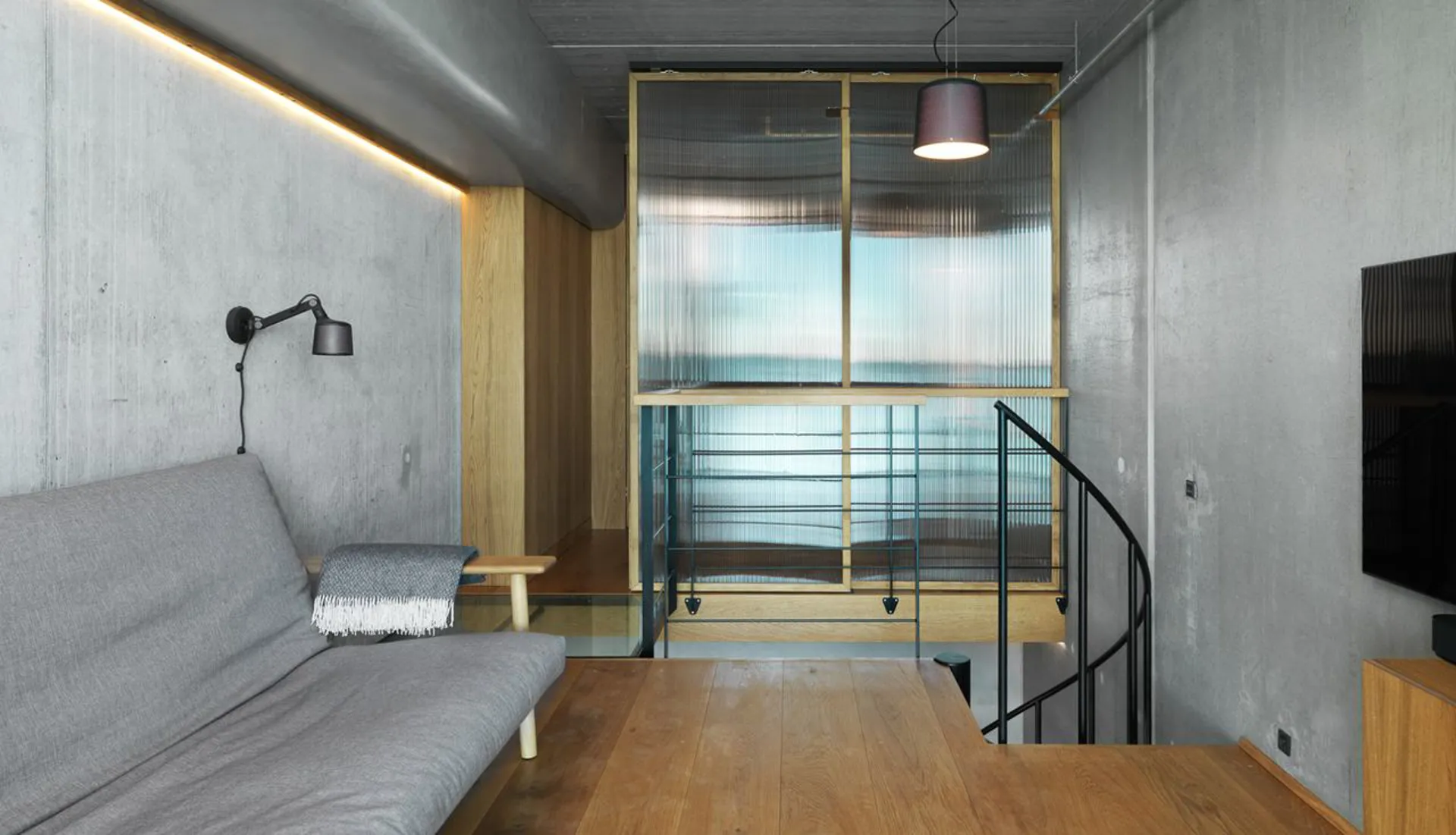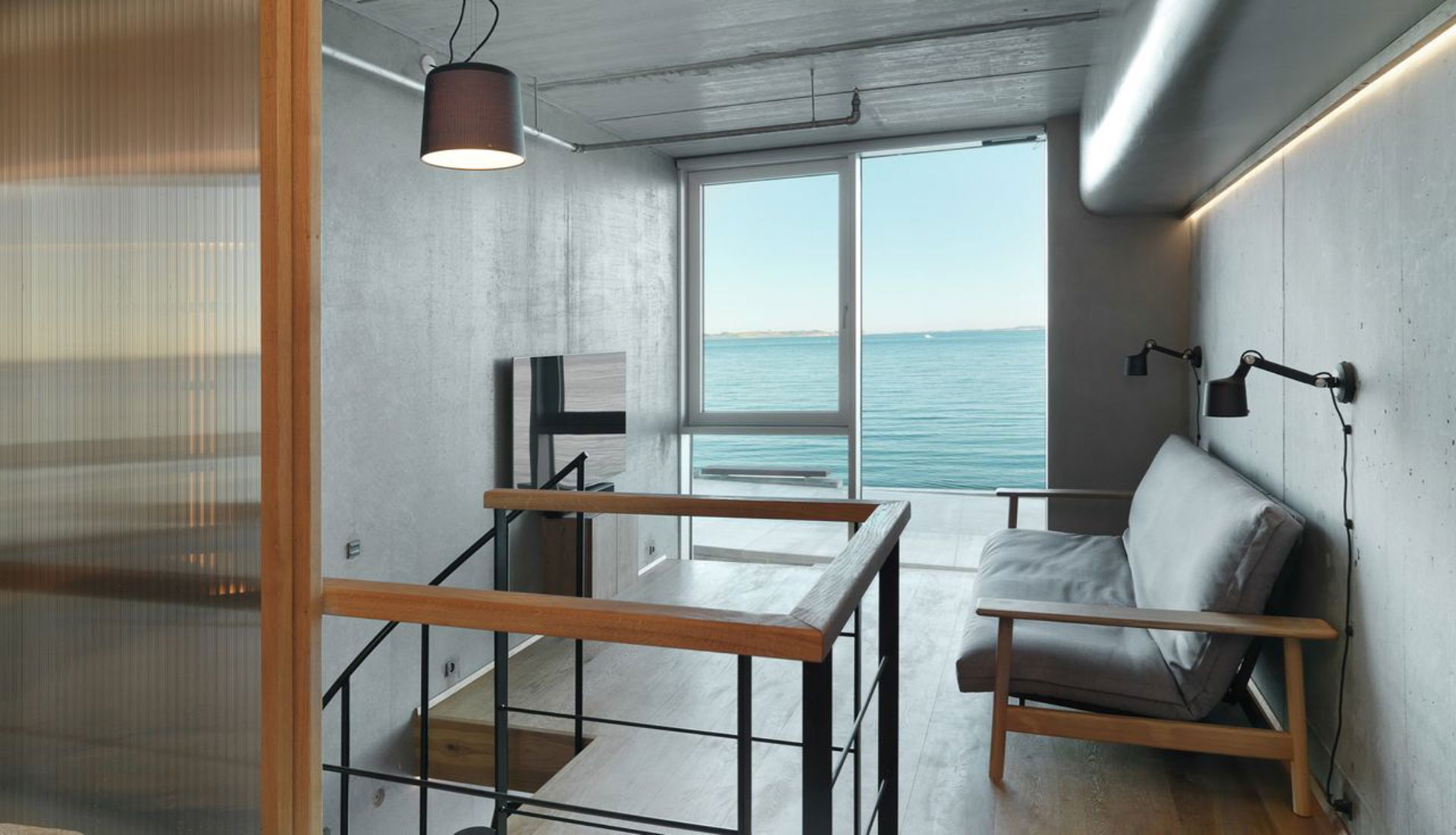 Unik bolig på ud til bugt og hav i Bjarke Engels’ prestigebyggeri ved Bassin 7 i Aarhus Ø. Her er 24m2 (BBR) og et øvre dæk.