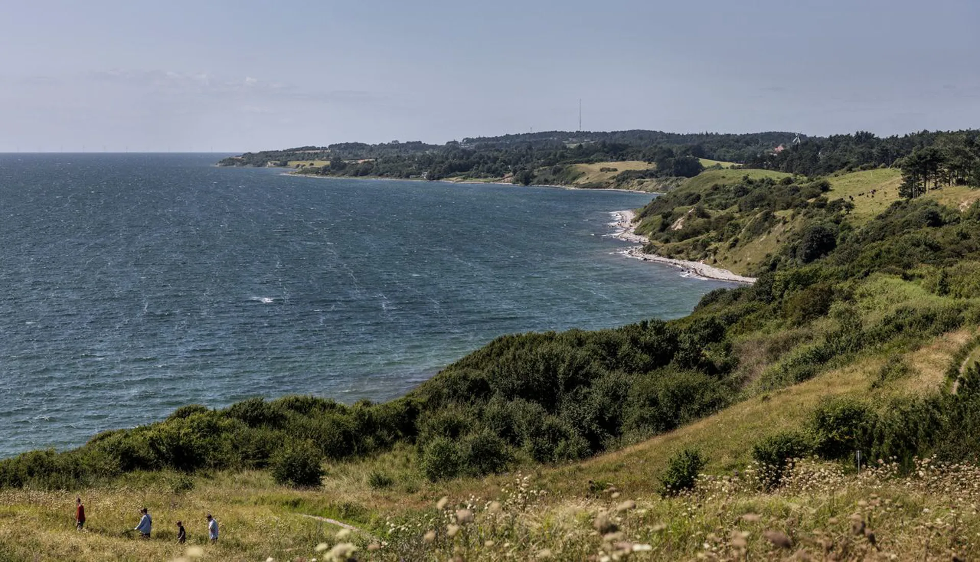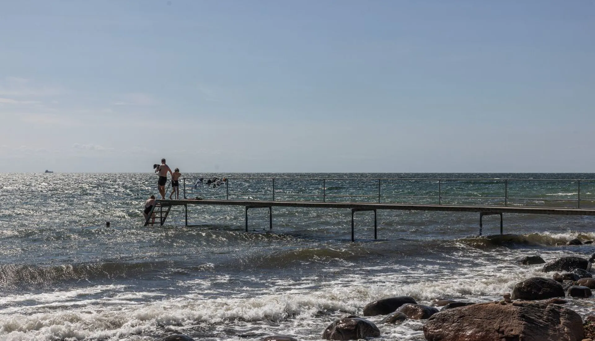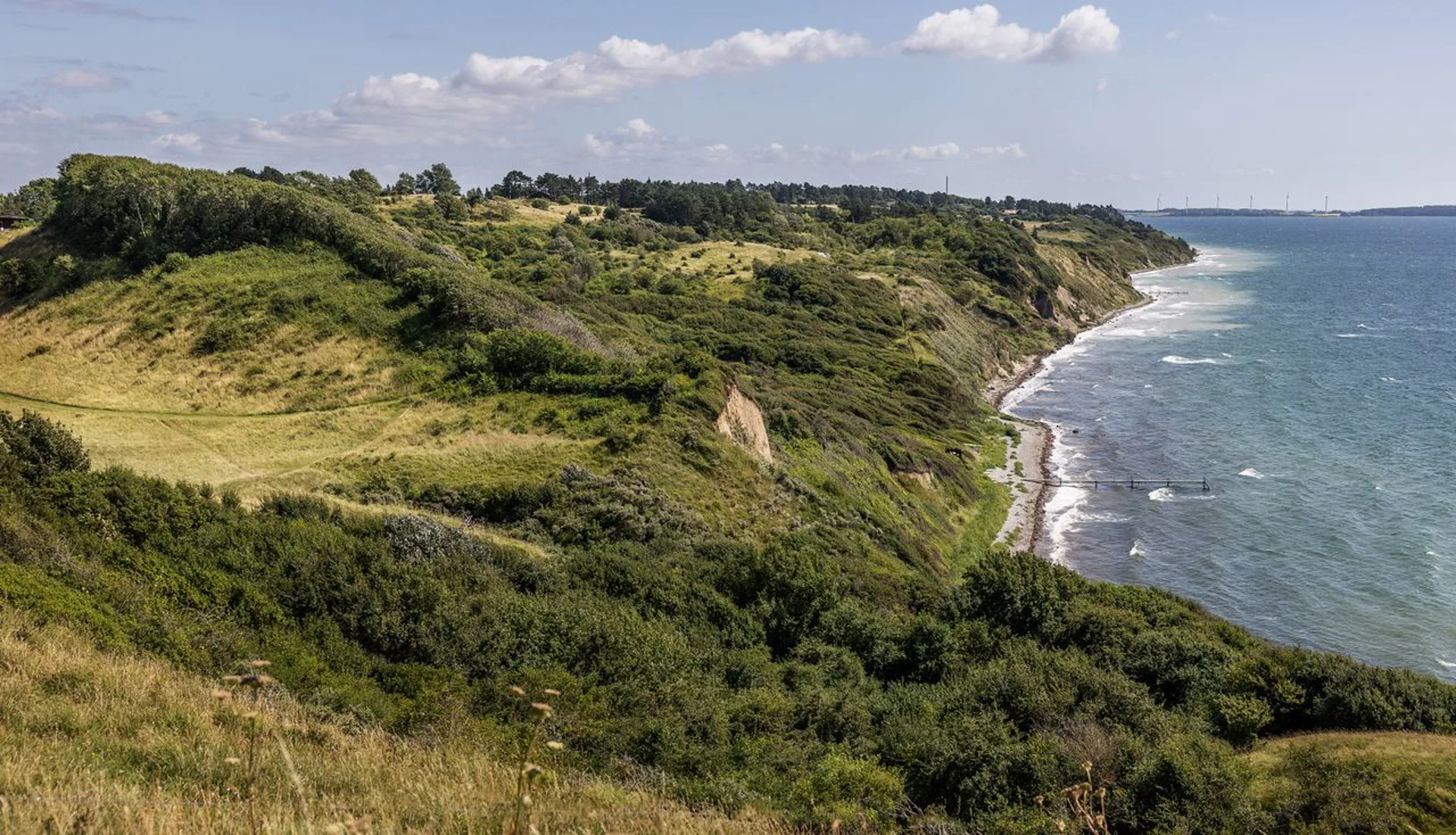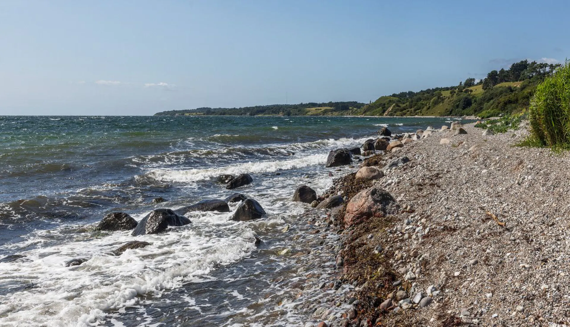 Blot 3 minutters gang gennem en uforlignelig natur kommer man ned til stranden og badebroen, som indbyder til en frisk dukkert i det dejlige og klare vand.